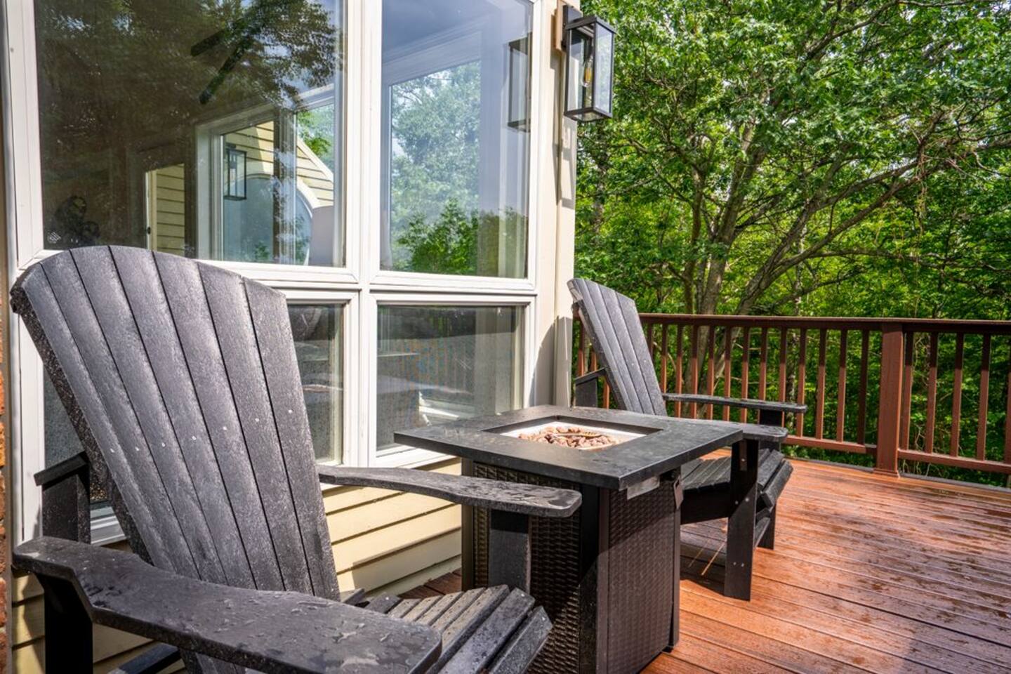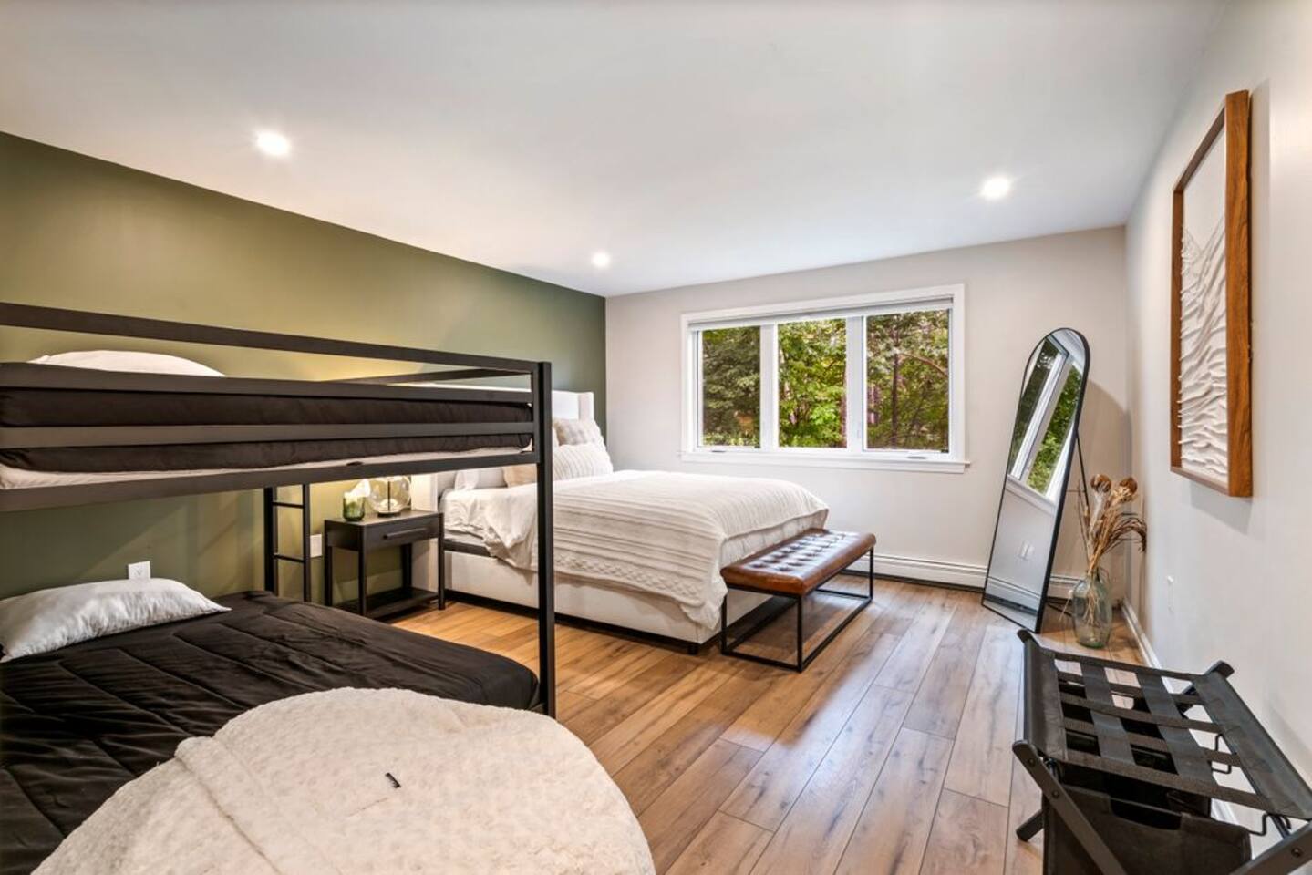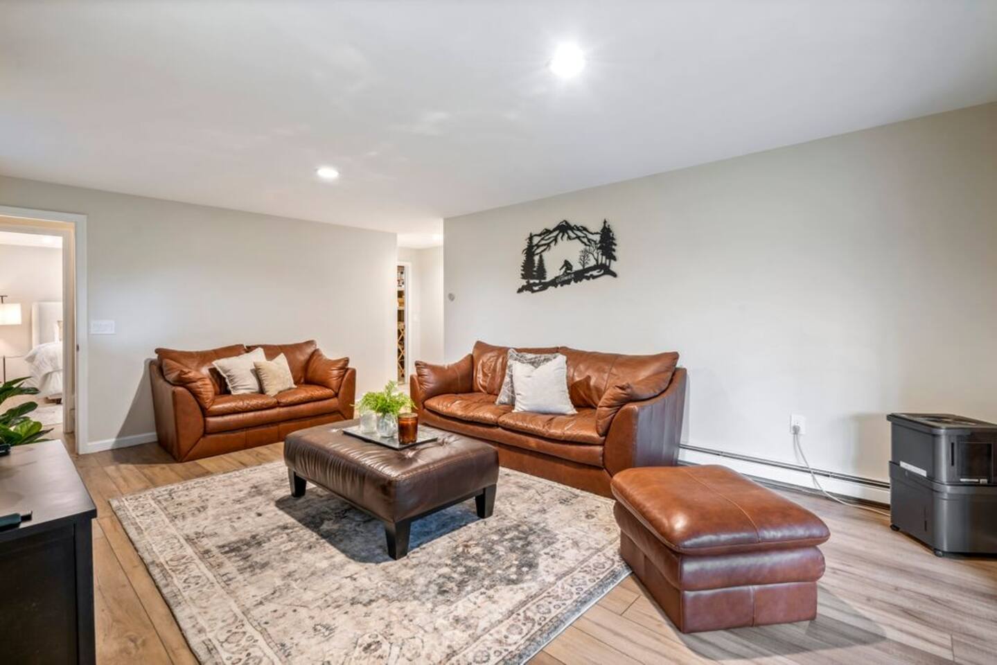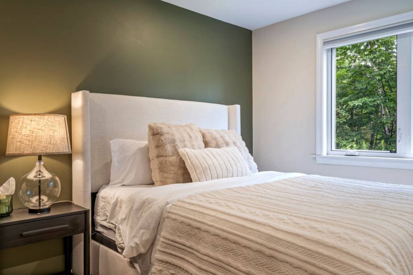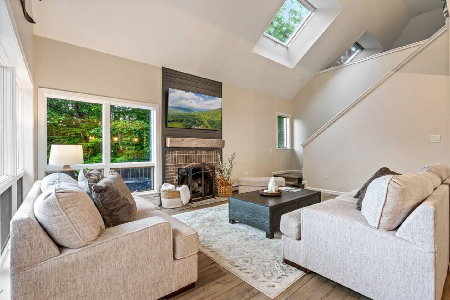 → Sleeps 8- 4 Bedrooms. 1 King, 3 Queens. Full/Full Bunk Bed. → 3 Bathrooms. Shower/tub combo on upper and lower level. → Modern and well-equipped kitchen → Wifi with 2 Smart TV’s. → Office Area → Wine Refrigerator and Coffee Station → Beautiful Views → Board Games and Books → Private viewing deck with BBQ grill → Ideal location to access many attractions ☆☆ BEDROOMS ☆☆ This gorgeous retreat accommodates 8 guests in 4 bedrooms. Experience luxury and comfort on the upper level of this beautiful home, designed with relaxation and convenience in mind. This private upstairs retreat features the primary bedroom with a luxurious king bed, en suite bathroom, spacious closet, and stunning views of Black Mountain. Whether you're traveling for work or leisure, the thoughtfully appointed work area offers a quiet space to stay productive. The cozy loft workspace features a modern desk setup with natural light streaming through a large skylight, perfect for remote work or quiet reading. The room includes a comfortable office chair, essential office supplies, and a plush bean bag chair for relaxation. Warm wood flooring and sloped ceilings add charm to this peaceful and private retreat. The 2nd bedroom, located on the main level, is conveniently located just steps from the kitchen and living area. Unwind in the stylish and serene bedroom featuring a plush queen-size bed, cozy bedding, and calming earthy tones. Large windows provide plenty of natural light and views of the surrounding trees, while modern touches like a ceiling fan, bedside lamps, and a full-length mirror add comfort and convenience. Perfect for a peaceful night’s rest after a day of exploring. The remaining two bedrooms can be found on the lower level. The first of these bedrooms is fitted with a cozy queen bed and tasteful mountain decor. The second bedroom is a charming bunk room-perfect for family and friends. This cozy and stylish bunk room is designed with fun and comfort in mind! Featuring a sturdy, stylish full over full bunk bed and luxurious queen bed. This space easily sleeps four guests — ideal for kids, cousins, or friends traveling together. ☆☆ BATHROOMS ☆☆ Black Diamond Chalet offers 3 full bathrooms, each of them stocked with all the essentials you need for the duration of your stay. The lower level hosts a full bathroom with a combination shower and tub. It is conveniently located just steps from the bunk room and is easily accessible for the guests staying on the lower level. The full bathroom, with a stand up shower, on the main level is well equipped and is conveniently located just steps from the kitchen. The 3rd full bathroom can be accessed on the upper level and is attached to the beautiful primary bedroom. Worry about nothing with these thoughtfully stocked bathrooms that provide everything you need and more. ☆☆ KITCHEN & LIVING AREA ☆☆ The bright and airy kitchen is fully equipped with all the appliances, utensils and cookware you need to feel at home. This thoughtfully-designed home provides eat-in dining for 8 guests at the island and a gorgeous wooden table. Gather in style in the beautifully designed open-concept living area, perfect for relaxing after a day of adventure. The space features soaring vaulted ceilings, mounted Smart TV, and large windows that flood the room with natural light while offering peaceful views of the surrounding Black Mountain. Two plush sofas and a cushioned armchair provide ample seating for group conversations or movie nights. The adjacent kitchen is a chef’s dream, fully equipped with stainless steel appliances, a farmhouse sink, and a spacious island with bar seating—ideal for casual breakfasts or evening cocktails. Rustic wood finishes and mountain-themed décor, including vintage skis and a detailed Black Mountain trail map, add charm and character to the space. Whether you're enjoying a home-cooked meal, playing board games, or simply unwinding with a cup of coffee, this warm and inviting living area is the heart of the home. The lower level living area boats additional living space-Perfect for Movie Nights & Family Games!Welcome to your perfect retreat for relaxation and connection. This warm and inviting living room is designed with comfort in mind—featuring rich leather sofas, a soft, oversized rug, and a charming rustic décor that brings the outdoors in. Large sliding glass doors flood the space with natural light and open to serene forest views, making it the ideal spot to enjoy your morning coffee or unwind with a glass of wine. Whether you're gathering for family movie night, playing games, or simply kicking back after a day of adventure, this cozy space will quickly feel like home. ☆☆ OUTSIDE SPACE ☆☆ The exterior area of this home offers gorgeous views and ample privacy. Off of the main level, guests will find the back deck. The deck is the perfect gathering area to relax with a drink of your choice after a day of enjoying the area. Sit back and relax while a meal is prepared on the BBQ. Step outside on the lower level and unwind beneath the charming string lights on your private covered patio—perfect for evening chats, outdoor dining, or simply soaking in the peaceful surroundings. Tucked under the deck and surrounded by lush greenery, this inviting space offers both shade and seclusion.This cozy nook brings nature and comfort together beautifully.The choice is yours and either option is the perfect spot to make memories that will last forever. ★☆ Book Today & Let Us Take Care Of You in Jackson☆★