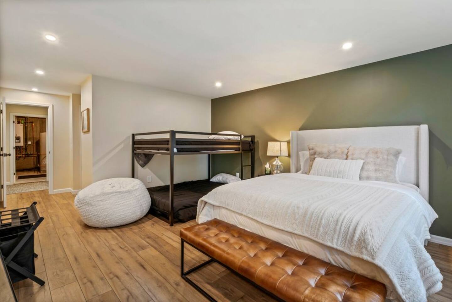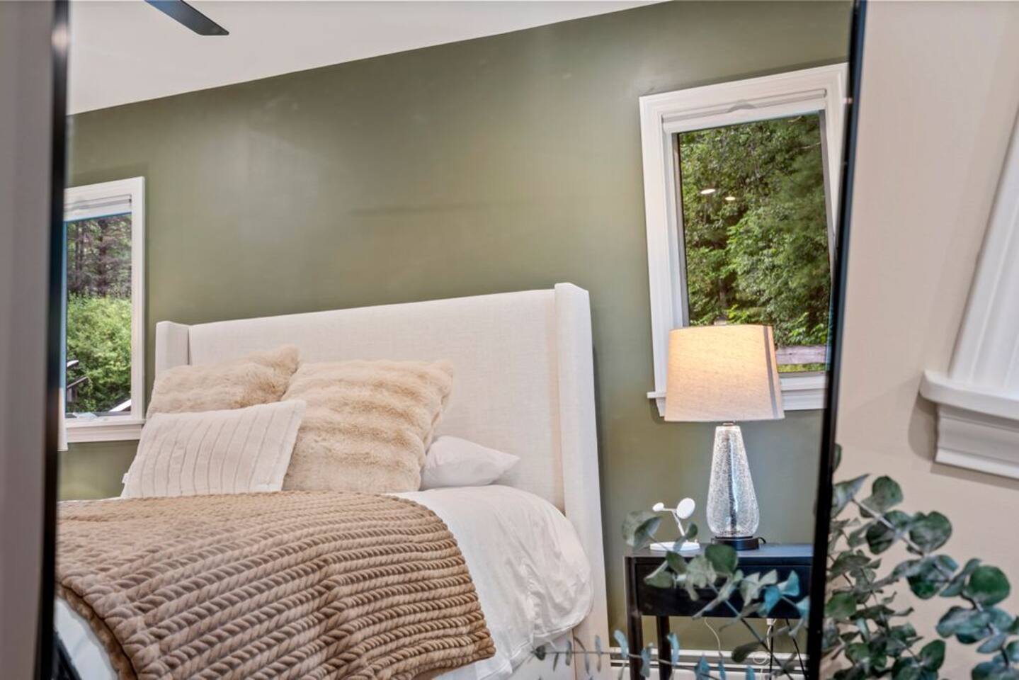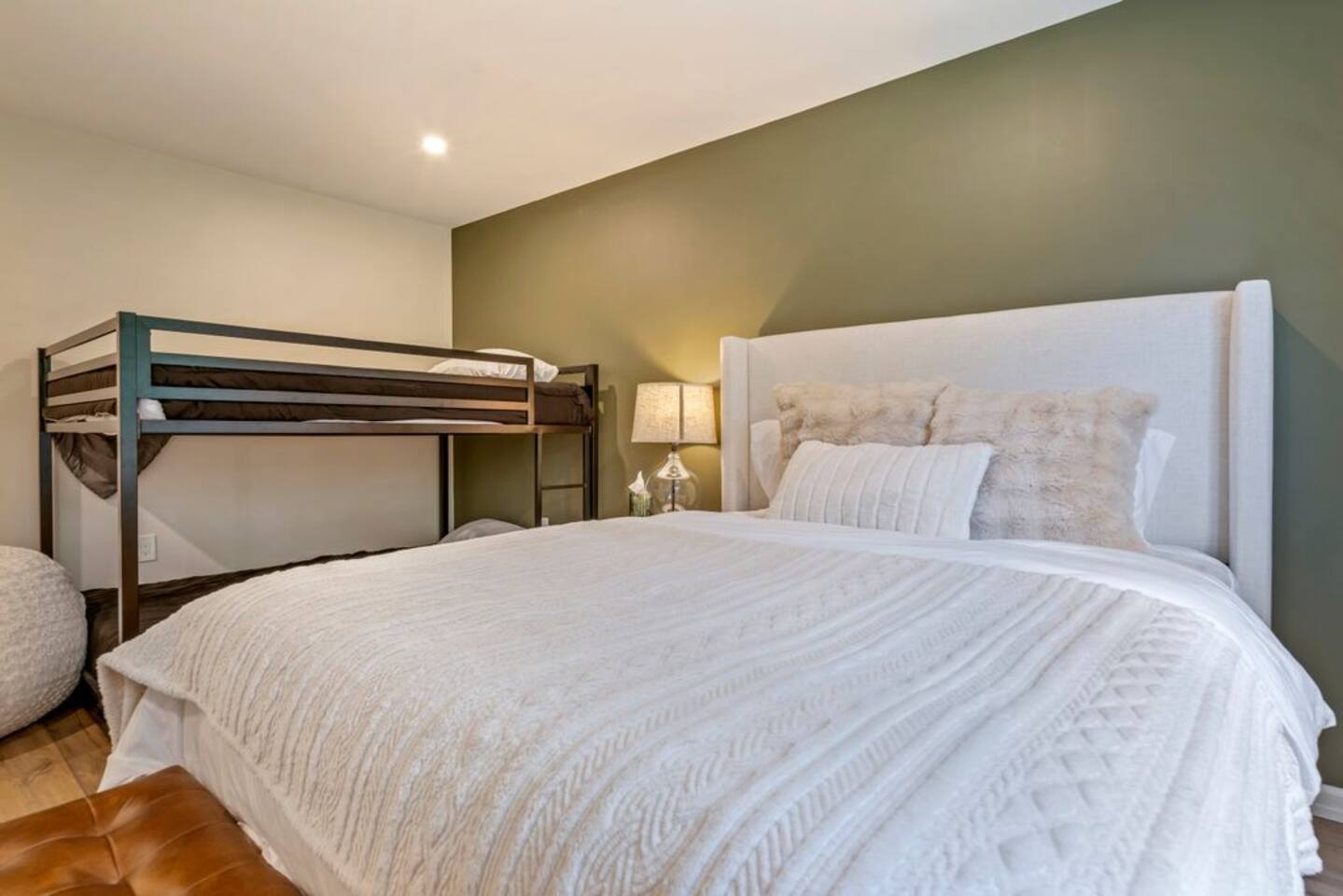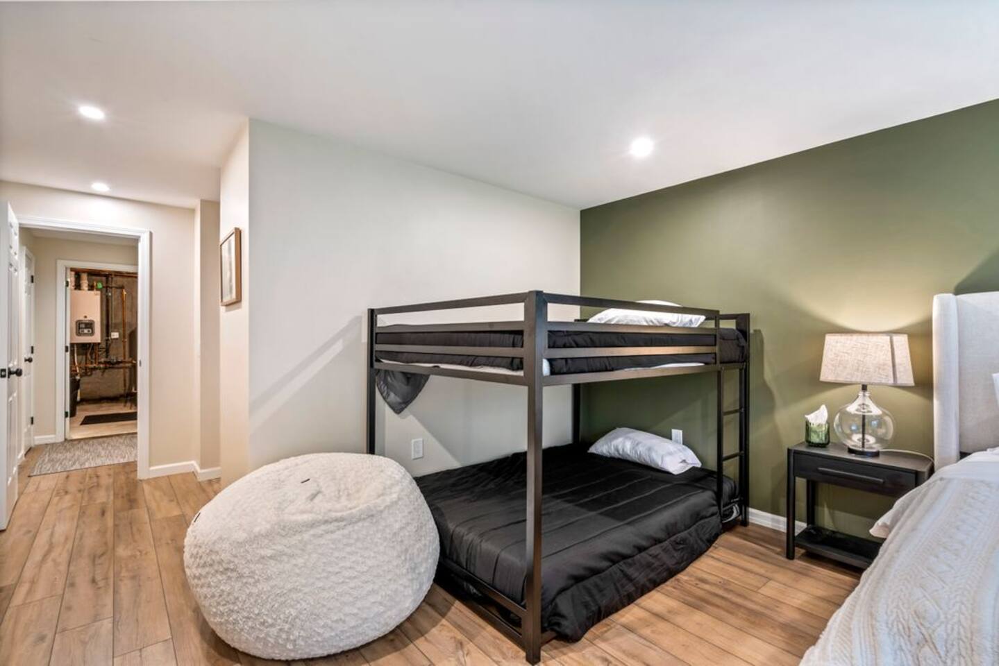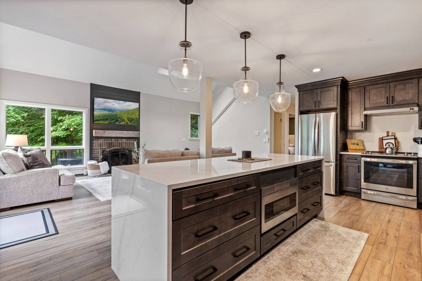 → Sleeps 8- 4 Bedrooms. 1 King, 3 Queens. Full/Full Bunk Bed. → 3 Bathrooms. Shower/tub combo on upper and lower level. → Modern and well-equipped kitchen → Wifi with 2 Smart TV’s. → Office Area → Wine Refrigerator and Coffee Station → Beautiful Views → Board Games and Books → Private viewing deck with BBQ grill → Ideal location to access many attractions ☆☆ BEDROOMS ☆☆ This gorgeous retreat accommodates 8 guests in 4 bedrooms. Experience luxury and comfort on the upper level of this beautiful home, designed with relaxation and convenience in mind. This private upstairs retreat features the primary bedroom with a luxurious king bed, en suite bathroom, spacious closet, and stunning views of Black Mountain. Whether you're traveling for work or leisure, the thoughtfully appointed work area offers a quiet space to stay productive. The cozy loft workspace features a modern desk setup with natural light streaming through a large skylight, perfect for remote work or quiet reading. The room includes a comfortable office chair, essential office supplies, and a plush bean bag chair for relaxation. Warm wood flooring and sloped ceilings add charm to this peaceful and private retreat. The 2nd bedroom, located on the main level, is conveniently located just steps from the kitchen and living area. Unwind in the stylish and serene bedroom featuring a plush queen-size bed, cozy bedding, and calming earthy tones. Large windows provide plenty of natural light and views of the surrounding trees, while modern touches like a ceiling fan, bedside lamps, and a full-length mirror add comfort and convenience. Perfect for a peaceful night’s rest after a day of exploring. The remaining two bedrooms can be found on the lower level. The first of these bedrooms is fitted with a cozy queen bed and tasteful mountain decor. The second bedroom is a charming bunk room-perfect for family and friends. This cozy and stylish bunk room is designed with fun and comfort in mind! Featuring a sturdy, stylish full over full bunk bed and luxurious queen bed. This space easily sleeps four guests — ideal for kids, cousins, or friends traveling together. ☆☆ BATHROOMS ☆☆ Black Diamond Chalet offers 3 full bathrooms, each of them stocked with all the essentials you need for the duration of your stay. The lower level hosts a full bathroom with a combination shower and tub. It is conveniently located just steps from the bunk room and is easily accessible for the guests staying on the lower level. The full bathroom, with a stand up shower, on the main level is well equipped and is conveniently located just steps from the kitchen. The 3rd full bathroom can be accessed on the upper level and is attached to the beautiful primary bedroom. Worry about nothing with these thoughtfully stocked bathrooms that provide everything you need and more. ☆☆ KITCHEN & LIVING AREA ☆☆ The bright and airy kitchen is fully equipped with all the appliances, utensils and cookware you need to feel at home. This thoughtfully-designed home provides eat-in dining for 8 guests at the island and a gorgeous wooden table. Gather in style in the beautifully designed open-concept living area, perfect for relaxing after a day of adventure. The space features soaring vaulted ceilings, mounted Smart TV, and large windows that flood the room with natural light while offering peaceful views of the surrounding Black Mountain. Two plush sofas and a cushioned armchair provide ample seating for group conversations or movie nights. The adjacent kitchen is a chef’s dream, fully equipped with stainless steel appliances, a farmhouse sink, and a spacious island with bar seating—ideal for casual breakfasts or evening cocktails. Rustic wood finishes and mountain-themed décor, including vintage skis and a detailed Black Mountain trail map, add charm and character to the space. Whether you're enjoying a home-cooked meal, playing board games, or simply unwinding with a cup of coffee, this warm and inviting living area is the heart of the home. The lower level living area boats additional living space-Perfect for Movie Nights & Family Games!Welcome to your perfect retreat for relaxation and connection. This warm and inviting living room is designed with comfort in mind—featuring rich leather sofas, a soft, oversized rug, and a charming rustic décor that brings the outdoors in. Large sliding glass doors flood the space with natural light and open to serene forest views, making it the ideal spot to enjoy your morning coffee or unwind with a glass of wine. Whether you're gathering for family movie night, playing games, or simply kicking back after a day of adventure, this cozy space will quickly feel like home. ☆☆ OUTSIDE SPACE ☆☆ The exterior area of this home offers gorgeous views and ample privacy. Off of the main level, guests will find the back deck. The deck is the perfect gathering area to relax with a drink of your choice after a day of enjoying the area. Sit back and relax while a meal is prepared on the BBQ. Step outside on the lower level and unwind beneath the charming string lights on your private covered patio—perfect for evening chats, outdoor dining, or simply soaking in the peaceful surroundings. Tucked under the deck and surrounded by lush greenery, this inviting space offers both shade and seclusion.This cozy nook brings nature and comfort together beautifully.The choice is yours and either option is the perfect spot to make memories that will last forever. ★☆ Book Today & Let Us Take Care Of You in Jackson☆★