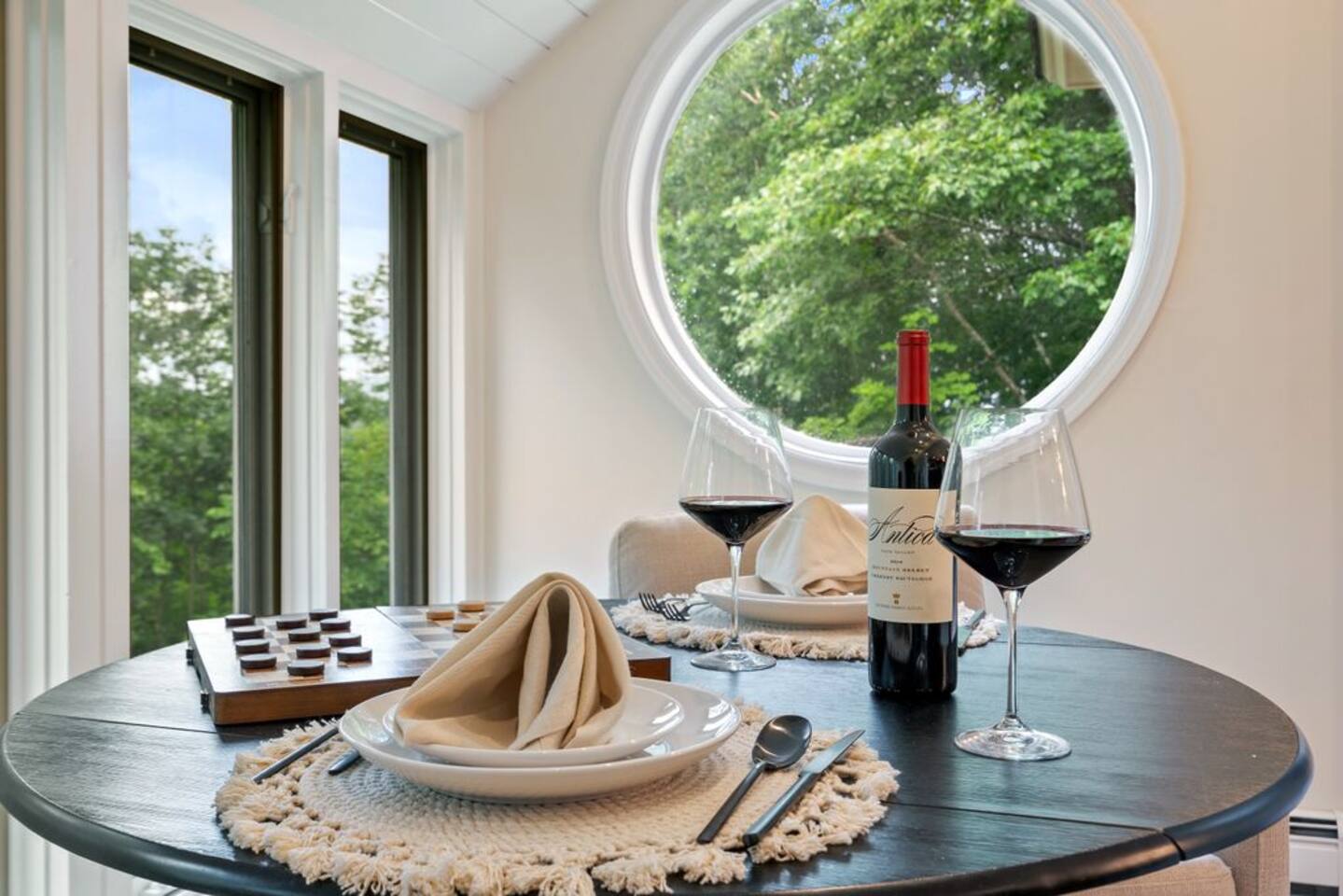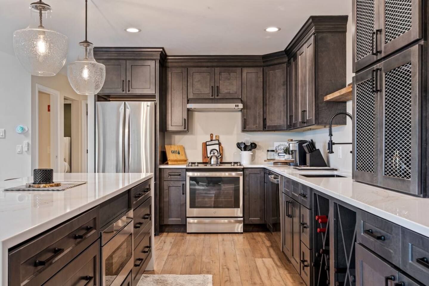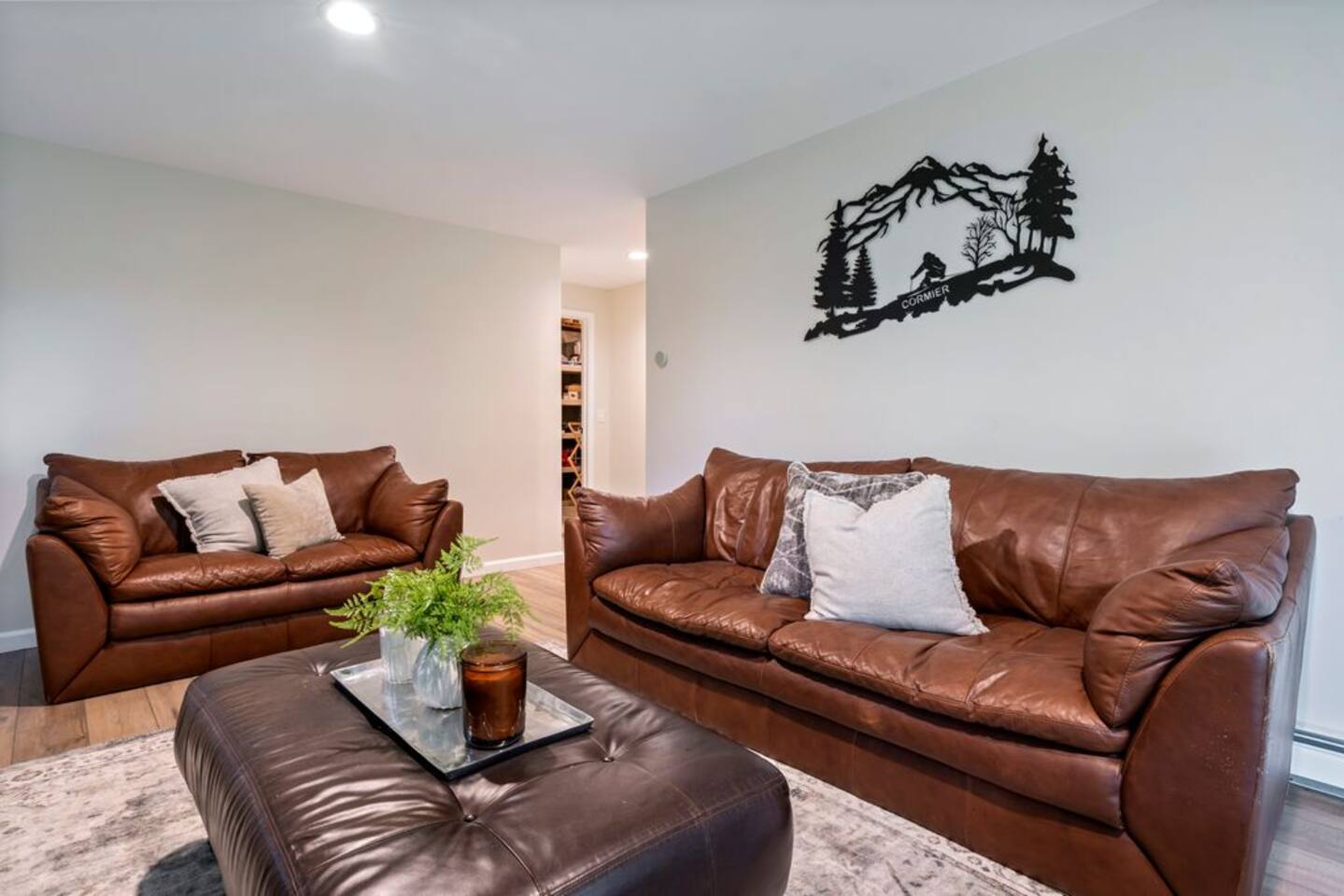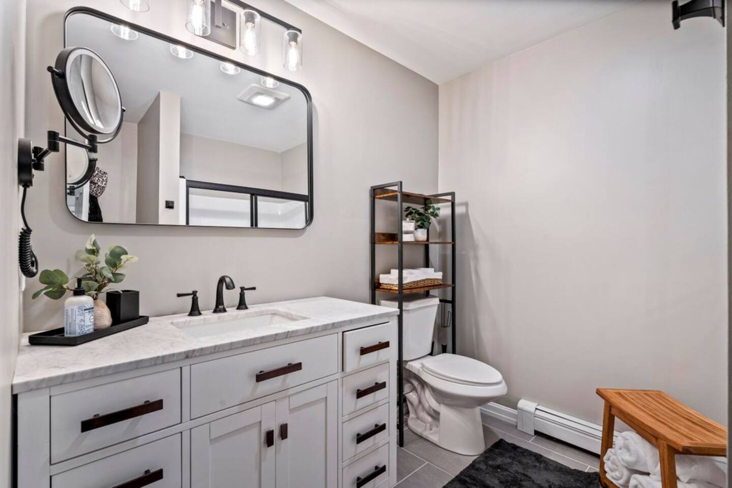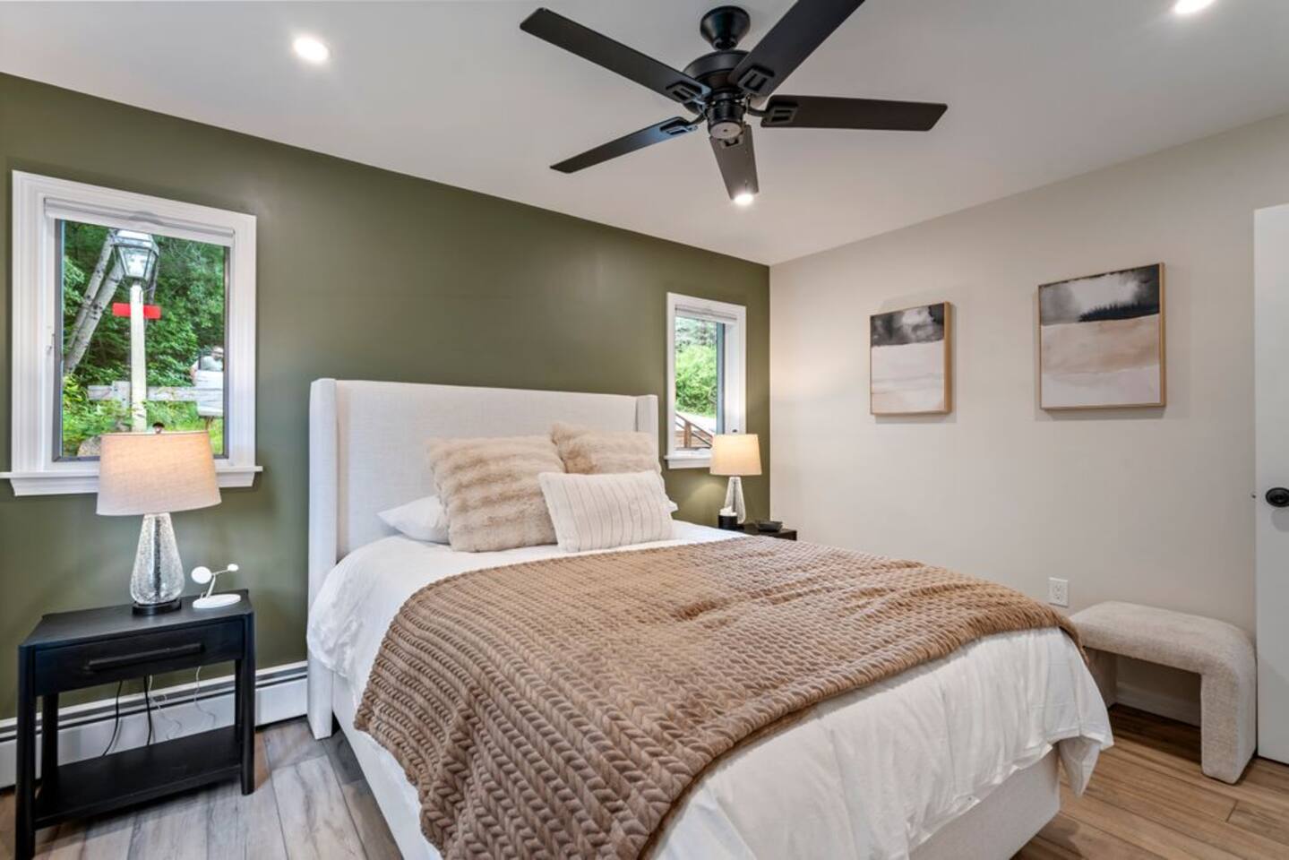 → Sleeps 8- 4 Bedrooms. 1 King, 3 Queens. Full/Full Bunk Bed. → 3 Bathrooms. Shower/tub combo on upper and lower level. → Modern and well-equipped kitchen → Wifi with 2 Smart TV’s. → Office Area → Wine Refrigerator and Coffee Station → Beautiful Views → Board Games and Books → Private viewing deck with BBQ grill → Ideal location to access many attractions ☆☆ BEDROOMS ☆☆ This gorgeous retreat accommodates 8 guests in 4 bedrooms. Experience luxury and comfort on the upper level of this beautiful home, designed with relaxation and convenience in mind. This private upstairs retreat features the primary bedroom with a luxurious king bed, en suite bathroom, spacious closet, and stunning views of Black Mountain. Whether you're traveling for work or leisure, the thoughtfully appointed work area offers a quiet space to stay productive. The cozy loft workspace features a modern desk setup with natural light streaming through a large skylight, perfect for remote work or quiet reading. The room includes a comfortable office chair, essential office supplies, and a plush bean bag chair for relaxation. Warm wood flooring and sloped ceilings add charm to this peaceful and private retreat. The 2nd bedroom, located on the main level, is conveniently located just steps from the kitchen and living area. Unwind in the stylish and serene bedroom featuring a plush queen-size bed, cozy bedding, and calming earthy tones. Large windows provide plenty of natural light and views of the surrounding trees, while modern touches like a ceiling fan, bedside lamps, and a full-length mirror add comfort and convenience. Perfect for a peaceful night’s rest after a day of exploring. The remaining two bedrooms can be found on the lower level. The first of these bedrooms is fitted with a cozy queen bed and tasteful mountain decor. The second bedroom is a charming bunk room-perfect for family and friends. This cozy and stylish bunk room is designed with fun and comfort in mind! Featuring a sturdy, stylish full over full bunk bed and luxurious queen bed. This space easily sleeps four guests — ideal for kids, cousins, or friends traveling together. ☆☆ BATHROOMS ☆☆ Black Diamond Chalet offers 3 full bathrooms, each of them stocked with all the essentials you need for the duration of your stay. The lower level hosts a full bathroom with a combination shower and tub. It is conveniently located just steps from the bunk room and is easily accessible for the guests staying on the lower level. The full bathroom, with a stand up shower, on the main level is well equipped and is conveniently located just steps from the kitchen. The 3rd full bathroom can be accessed on the upper level and is attached to the beautiful primary bedroom. Worry about nothing with these thoughtfully stocked bathrooms that provide everything you need and more. ☆☆ KITCHEN & LIVING AREA ☆☆ The bright and airy kitchen is fully equipped with all the appliances, utensils and cookware you need to feel at home. This thoughtfully-designed home provides eat-in dining for 8 guests at the island and a gorgeous wooden table. Gather in style in the beautifully designed open-concept living area, perfect for relaxing after a day of adventure. The space features soaring vaulted ceilings, mounted Smart TV, and large windows that flood the room with natural light while offering peaceful views of the surrounding Black Mountain. Two plush sofas and a cushioned armchair provide ample seating for group conversations or movie nights. The adjacent kitchen is a chef’s dream, fully equipped with stainless steel appliances, a farmhouse sink, and a spacious island with bar seating—ideal for casual breakfasts or evening cocktails. Rustic wood finishes and mountain-themed décor, including vintage skis and a detailed Black Mountain trail map, add charm and character to the space. Whether you're enjoying a home-cooked meal, playing board games, or simply unwinding with a cup of coffee, this warm and inviting living area is the heart of the home. The lower level living area boats additional living space-Perfect for Movie Nights & Family Games!Welcome to your perfect retreat for relaxation and connection. This warm and inviting living room is designed with comfort in mind—featuring rich leather sofas, a soft, oversized rug, and a charming rustic décor that brings the outdoors in. Large sliding glass doors flood the space with natural light and open to serene forest views, making it the ideal spot to enjoy your morning coffee or unwind with a glass of wine. Whether you're gathering for family movie night, playing games, or simply kicking back after a day of adventure, this cozy space will quickly feel like home. ☆☆ OUTSIDE SPACE ☆☆ The exterior area of this home offers gorgeous views and ample privacy. Off of the main level, guests will find the back deck. The deck is the perfect gathering area to relax with a drink of your choice after a day of enjoying the area. Sit back and relax while a meal is prepared on the BBQ. Step outside on the lower level and unwind beneath the charming string lights on your private covered patio—perfect for evening chats, outdoor dining, or simply soaking in the peaceful surroundings. Tucked under the deck and surrounded by lush greenery, this inviting space offers both shade and seclusion.This cozy nook brings nature and comfort together beautifully.The choice is yours and either option is the perfect spot to make memories that will last forever. ★☆ Book Today & Let Us Take Care Of You in Jackson☆★