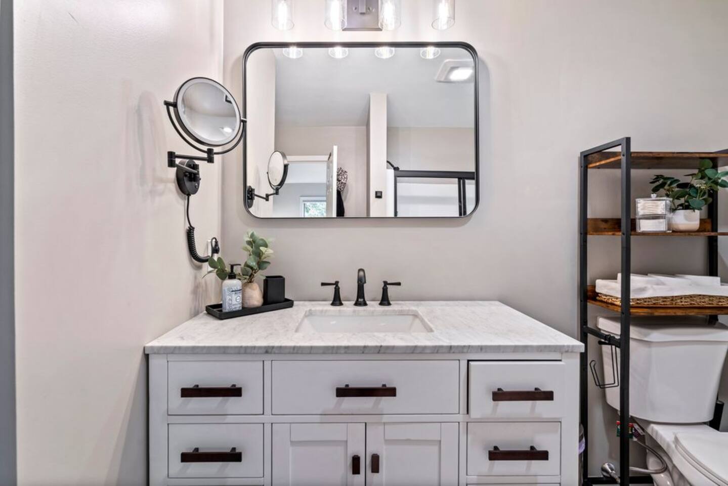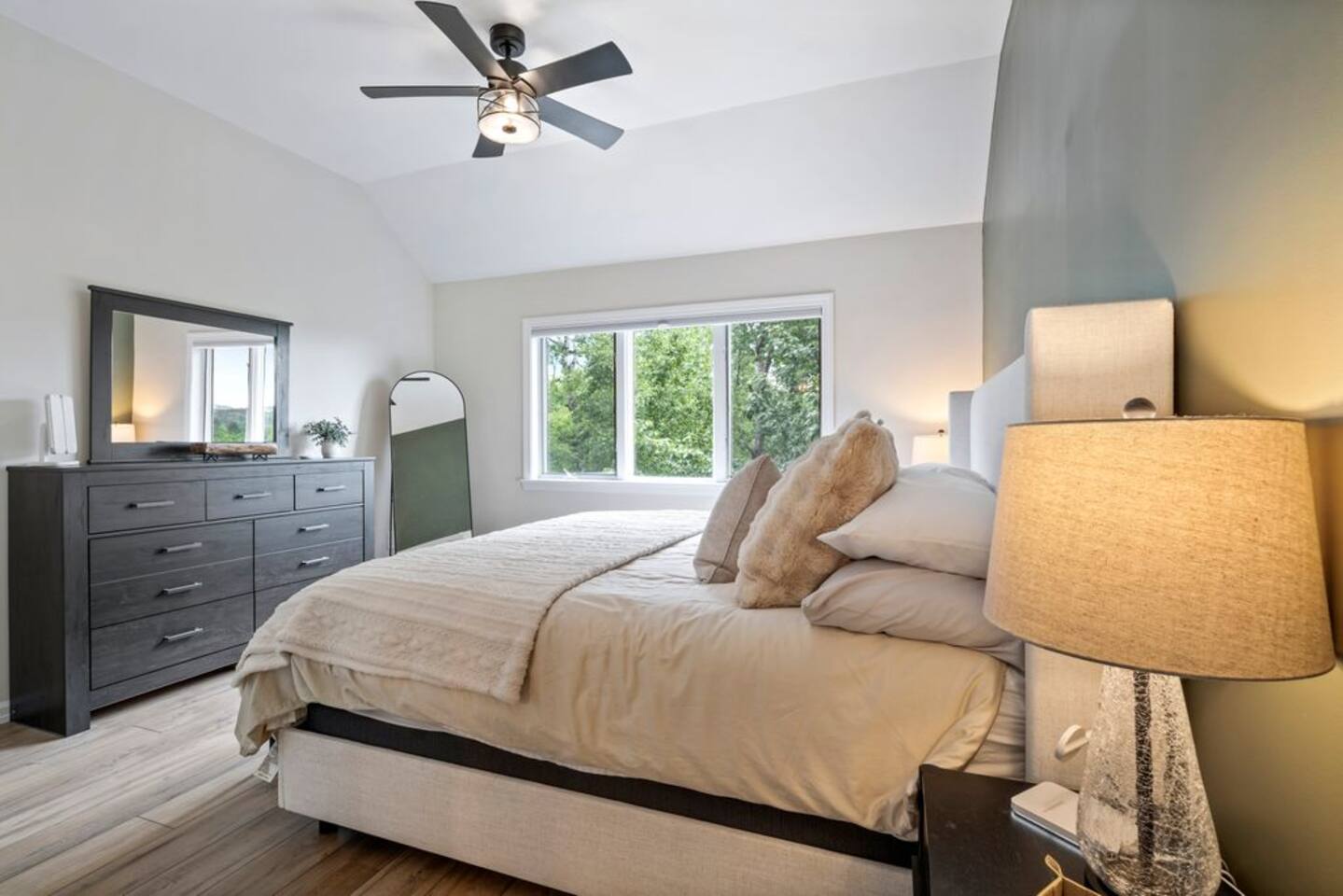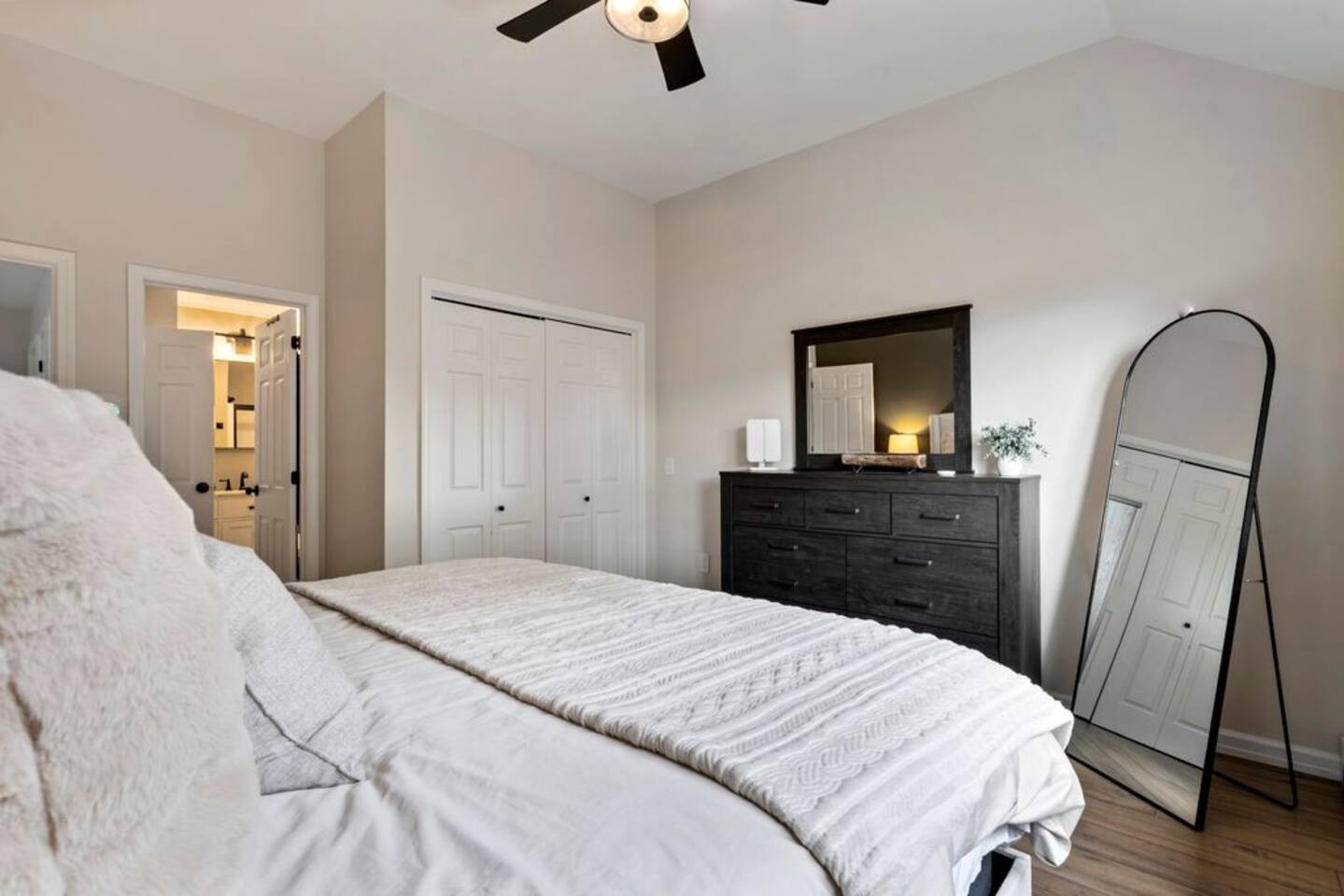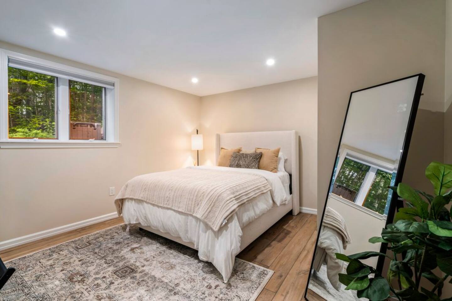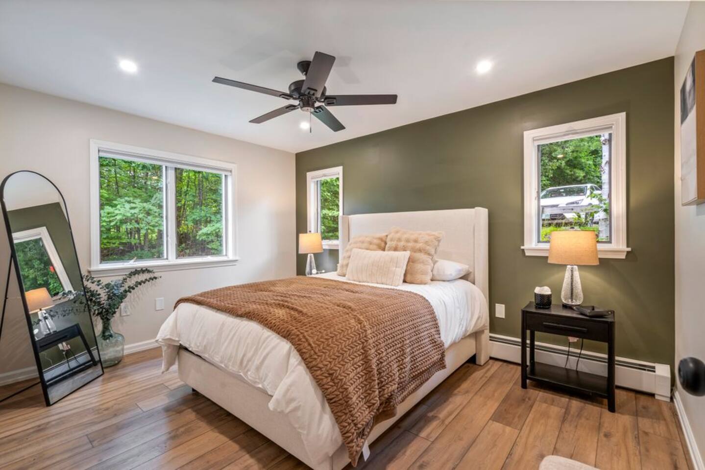 → Sleeps 8- 4 Bedrooms. 1 King, 3 Queens. Full/Full Bunk Bed. → 3 Bathrooms. Shower/tub combo on upper and lower level. → Modern and well-equipped kitchen → Wifi with 2 Smart TV’s. → Office Area → Wine Refrigerator and Coffee Station → Beautiful Views → Board Games and Books → Private viewing deck with BBQ grill → Ideal location to access many attractions ☆☆ BEDROOMS ☆☆ This gorgeous retreat accommodates 8 guests in 4 bedrooms. Experience luxury and comfort on the upper level of this beautiful home, designed with relaxation and convenience in mind. This private upstairs retreat features the primary bedroom with a luxurious king bed, en suite bathroom, spacious closet, and stunning views of Black Mountain. Whether you're traveling for work or leisure, the thoughtfully appointed work area offers a quiet space to stay productive. The cozy loft workspace features a modern desk setup with natural light streaming through a large skylight, perfect for remote work or quiet reading. The room includes a comfortable office chair, essential office supplies, and a plush bean bag chair for relaxation. Warm wood flooring and sloped ceilings add charm to this peaceful and private retreat. The 2nd bedroom, located on the main level, is conveniently located just steps from the kitchen and living area. Unwind in the stylish and serene bedroom featuring a plush queen-size bed, cozy bedding, and calming earthy tones. Large windows provide plenty of natural light and views of the surrounding trees, while modern touches like a ceiling fan, bedside lamps, and a full-length mirror add comfort and convenience. Perfect for a peaceful night’s rest after a day of exploring. The remaining two bedrooms can be found on the lower level. The first of these bedrooms is fitted with a cozy queen bed and tasteful mountain decor. The second bedroom is a charming bunk room-perfect for family and friends. This cozy and stylish bunk room is designed with fun and comfort in mind! Featuring a sturdy, stylish full over full bunk bed and luxurious queen bed. This space easily sleeps four guests — ideal for kids, cousins, or friends traveling together. ☆☆ BATHROOMS ☆☆ Black Diamond Chalet offers 3 full bathrooms, each of them stocked with all the essentials you need for the duration of your stay. The lower level hosts a full bathroom with a combination shower and tub. It is conveniently located just steps from the bunk room and is easily accessible for the guests staying on the lower level. The full bathroom, with a stand up shower, on the main level is well equipped and is conveniently located just steps from the kitchen. The 3rd full bathroom can be accessed on the upper level and is attached to the beautiful primary bedroom. Worry about nothing with these thoughtfully stocked bathrooms that provide everything you need and more. ☆☆ KITCHEN & LIVING AREA ☆☆ The bright and airy kitchen is fully equipped with all the appliances, utensils and cookware you need to feel at home. This thoughtfully-designed home provides eat-in dining for 8 guests at the island and a gorgeous wooden table. Gather in style in the beautifully designed open-concept living area, perfect for relaxing after a day of adventure. The space features soaring vaulted ceilings, mounted Smart TV, and large windows that flood the room with natural light while offering peaceful views of the surrounding Black Mountain. Two plush sofas and a cushioned armchair provide ample seating for group conversations or movie nights. The adjacent kitchen is a chef’s dream, fully equipped with stainless steel appliances, a farmhouse sink, and a spacious island with bar seating—ideal for casual breakfasts or evening cocktails. Rustic wood finishes and mountain-themed décor, including vintage skis and a detailed Black Mountain trail map, add charm and character to the space. Whether you're enjoying a home-cooked meal, playing board games, or simply unwinding with a cup of coffee, this warm and inviting living area is the heart of the home. The lower level living area boats additional living space-Perfect for Movie Nights & Family Games!Welcome to your perfect retreat for relaxation and connection. This warm and inviting living room is designed with comfort in mind—featuring rich leather sofas, a soft, oversized rug, and a charming rustic décor that brings the outdoors in. Large sliding glass doors flood the space with natural light and open to serene forest views, making it the ideal spot to enjoy your morning coffee or unwind with a glass of wine. Whether you're gathering for family movie night, playing games, or simply kicking back after a day of adventure, this cozy space will quickly feel like home. ☆☆ OUTSIDE SPACE ☆☆ The exterior area of this home offers gorgeous views and ample privacy. Off of the main level, guests will find the back deck. The deck is the perfect gathering area to relax with a drink of your choice after a day of enjoying the area. Sit back and relax while a meal is prepared on the BBQ. Step outside on the lower level and unwind beneath the charming string lights on your private covered patio—perfect for evening chats, outdoor dining, or simply soaking in the peaceful surroundings. Tucked under the deck and surrounded by lush greenery, this inviting space offers both shade and seclusion.This cozy nook brings nature and comfort together beautifully.The choice is yours and either option is the perfect spot to make memories that will last forever. ★☆ Book Today & Let Us Take Care Of You in Jackson☆★
