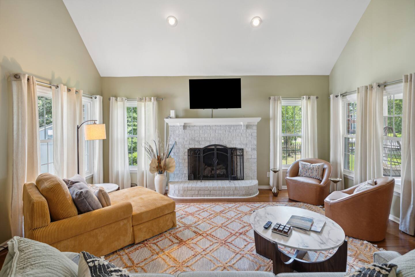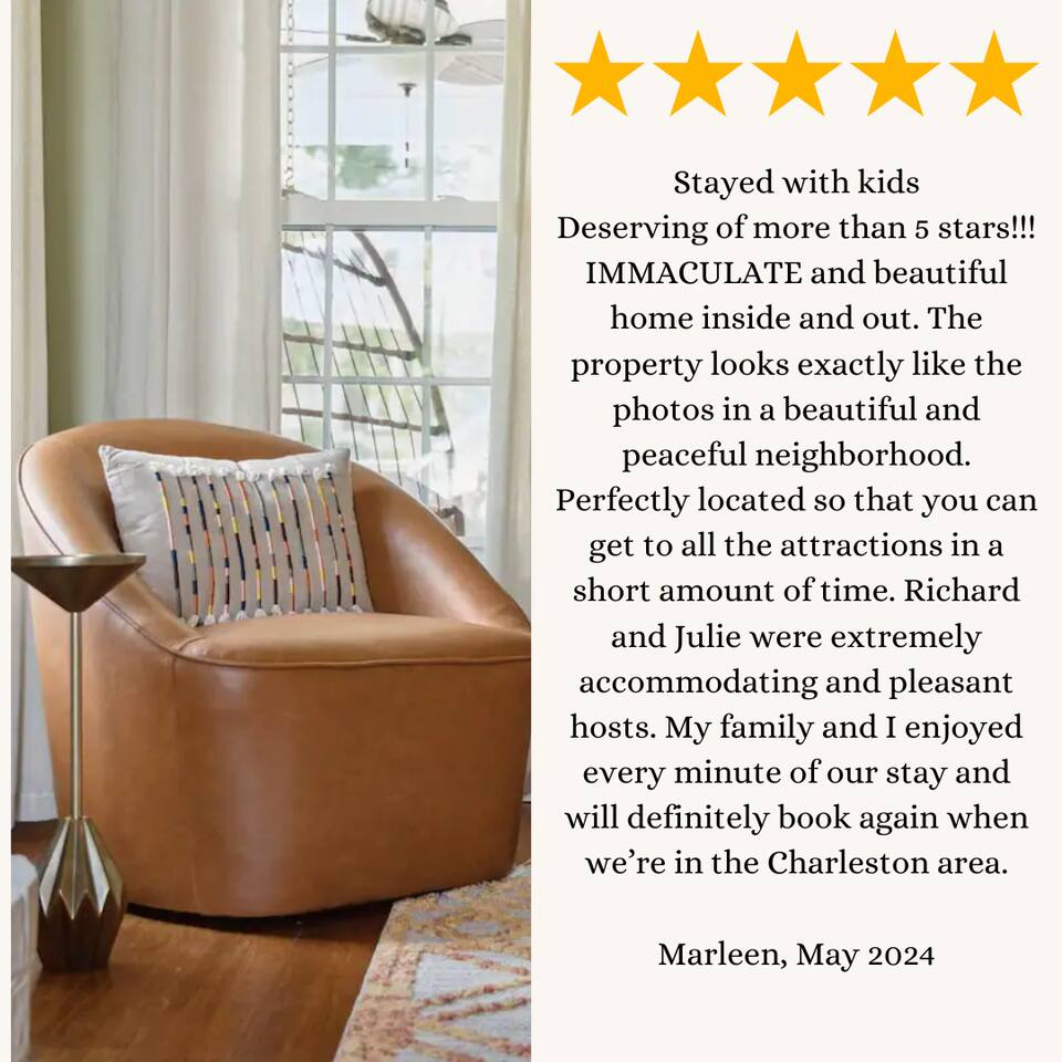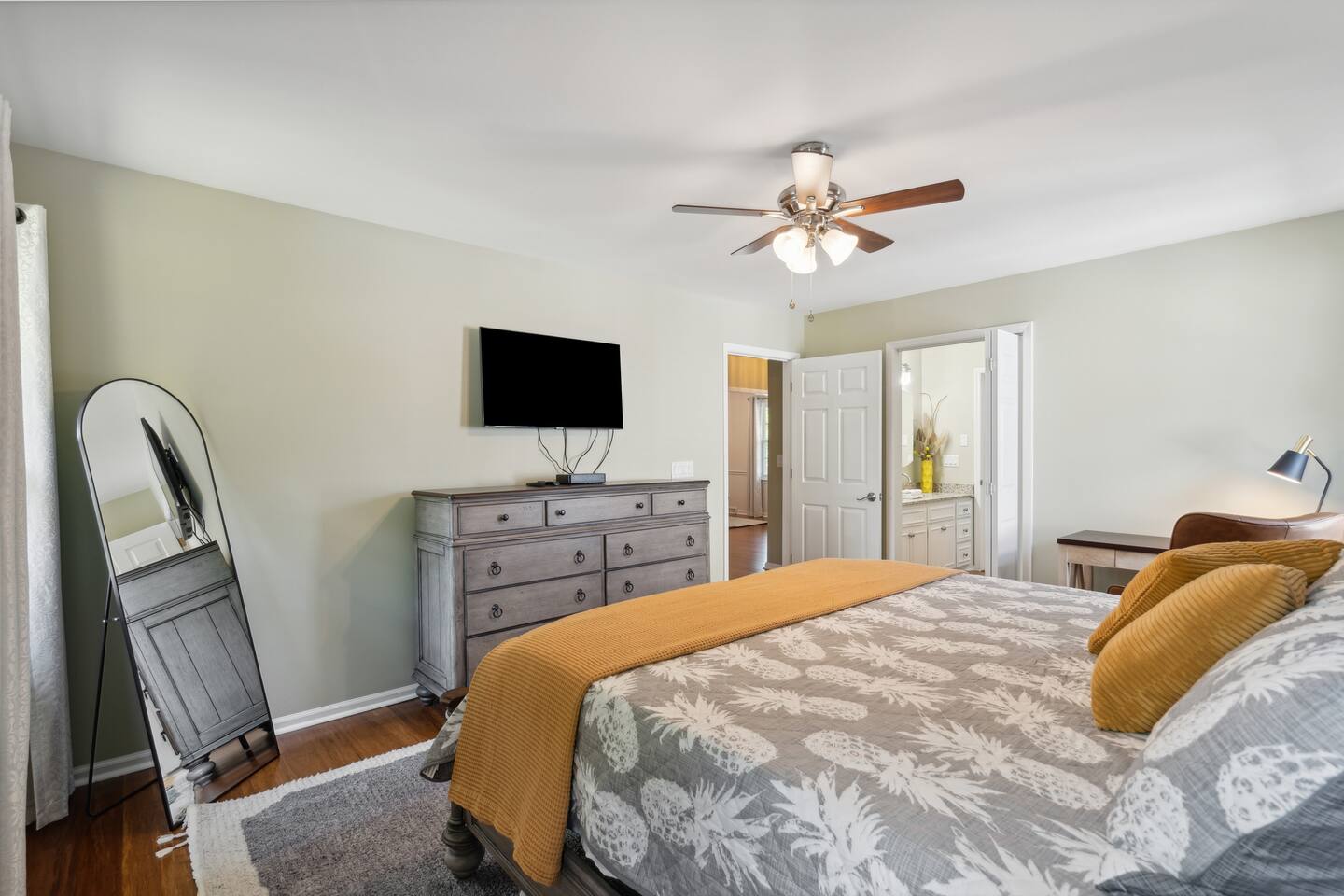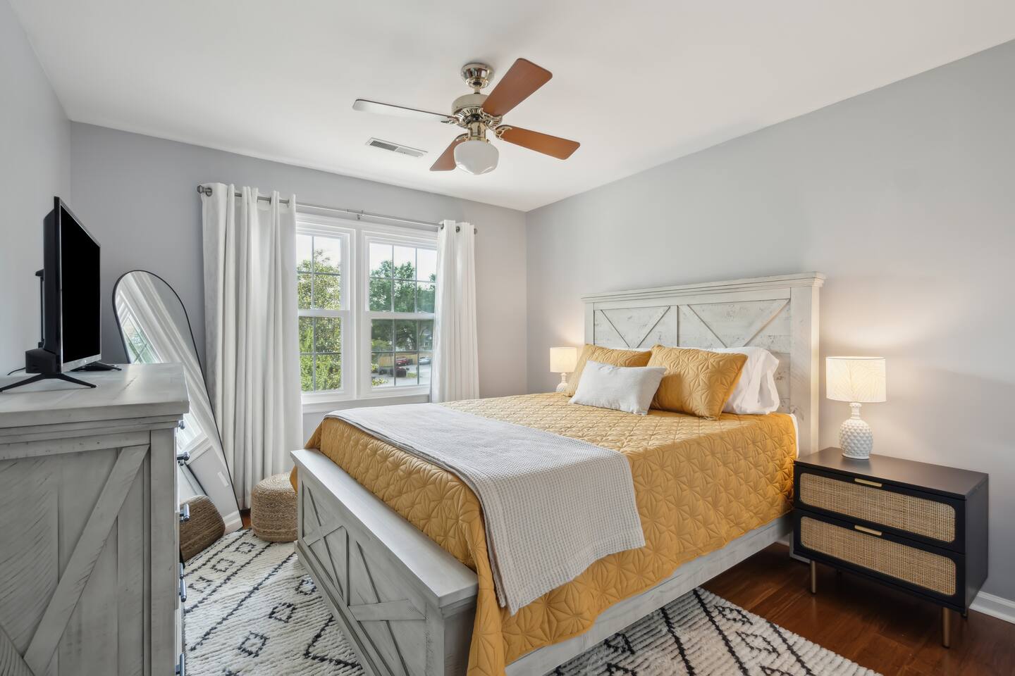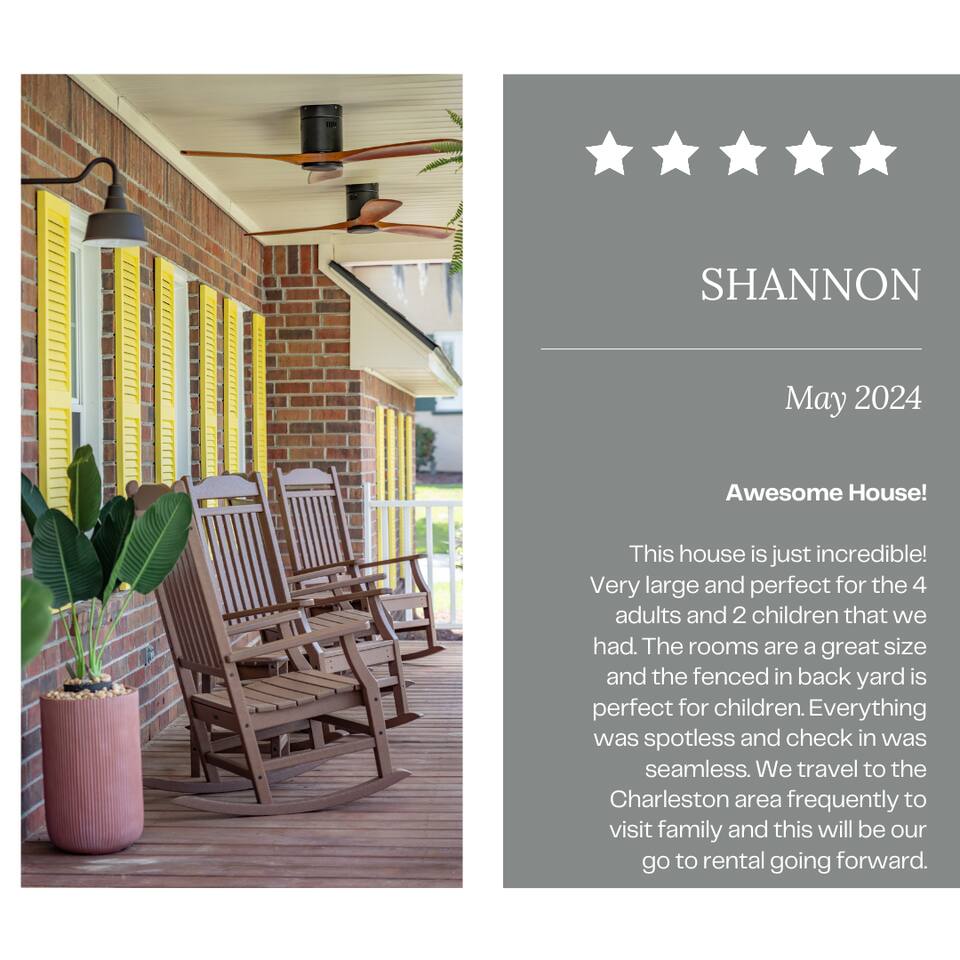 → Sleeps 10. 3 Bedrooms. 1 King. 2 Queens. 2 Singles and trundle in family room → 2 ½ Bathrooms. 1 with shower/tub combo and 1 with stand-up shower. → Modern and well-equipped kitchen → Wifi with 5 ROKU TV's. → Game room with Ping Pong Table → Adult Tricycles for guest use (Waiver Required) → Board Games and Books → Fire Pit → Dog-Friendly with fenced in yard → Kayak/Paddle Board launch at Venice Park → Ideal location to access many attractions ☆☆ BEDROOMS ☆☆ This gorgeous retreat accommodates 10 guests in 3 bedrooms plus additional sleeping in the family room. All bedrooms for fitted with Roku TV's. The master bedroom, located on the 1st floor, is fitted with a king-size bed, office area, walk-in closet, and a beautiful design that encourages complete relaxation. The second level boasts 2 Queen bedrooms that can host 4 guests. The family room accommodates another 4 guests in 2 twin beds along with a trundle bed Directly across from the sleeping area, guests will find a well-stocked, updated full bathroom. ☆☆ BATHROOMS ☆☆ There are two full bathrooms with an additional ½ bathroom that is located on the 1st floor. Each bathroom is stocked with all the essentials you need for the duration of your stay. The 1st level hosts a full bathroom located in the master suite with a stunning tile walk-in shower. The 1st floor ½ bathroom is conveniently located off of the kitchen. The full bathroom on the 2nd level is well equipped and boasts a shower/tub combination. Worry about nothing with these thoughtfully stocked bathrooms that provide everything you need and more. ☆☆ KITCHEN, DINING & LIVING AREA ☆☆ The bright and airy kitchen is fully equipped with all the appliances, utensils, and cookware you need to feel at home. This modern kitchen, with a large farmer's sink and new appliances, has fully stocked cabinets for all entertaining needs including a variety of sweet tea flavors. The high-end, cozy dining room is just off the kitchen and is equipped with an oval dining table that seats 8. Just off the kitchen you will find the laundry room that guest can use at their convenience. The main living area is situated on the 1st level of the home and is kitted with an HDTV with a Roku entertainment system, allowing full access to your favorite streaming services. The secondary living area, located on the 2nd level, is also equipped with an HDTV with a Roku entertainment system The secondary living area boasts a fun-filled game room equipped with a ping pong table, board games, and much more. ☆☆ OUTSIDE SPACE ☆☆ The exterior area of this home has a gorgeous yard and ample privacy. Sit back and relax with a sweet tea on the large farmer’s porch equipped with 4 rockers, a doubled benched table, and 3 ceiling fans. Friends and family can enjoy a charming backyard oasis featuring a fenced-in yard with a spacious deck with a BBQ, a cozy screened-in porch perfect for relaxing, an inviting fire pit for gatherings, and a bocce area for fun outdoor entertainment. This is the perfect spot to make memories that will last forever. ★☆ Book Today & Let Us Take Care Of You in Hanahan! ☆★