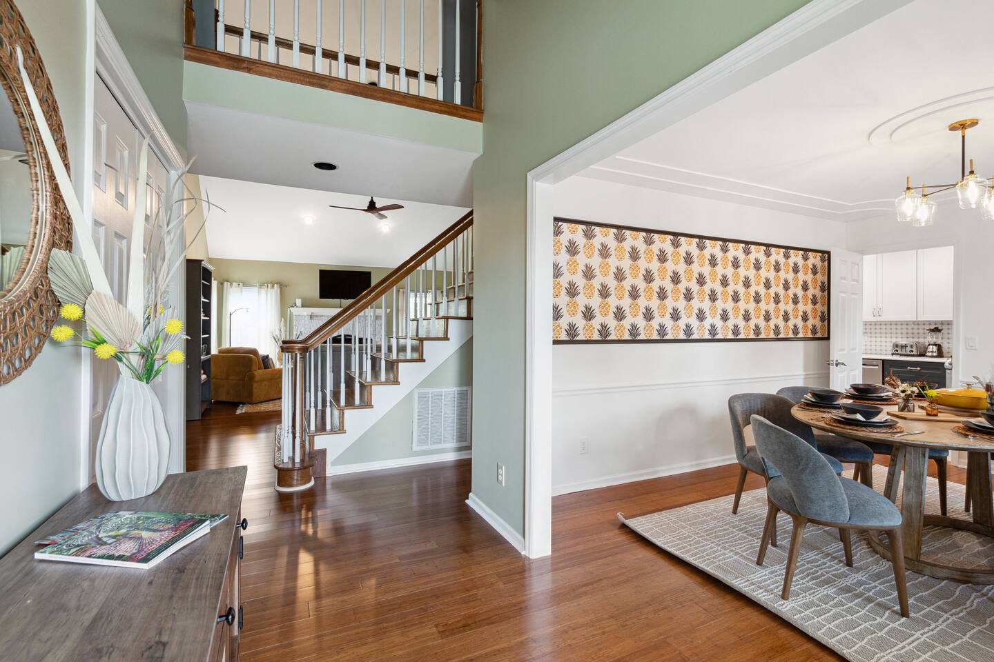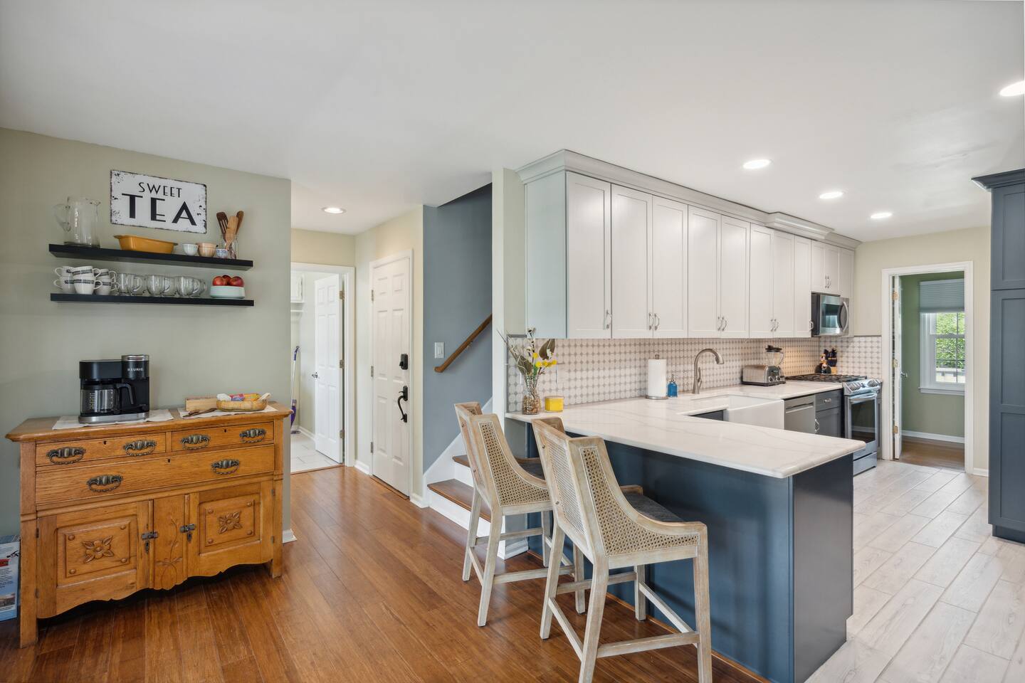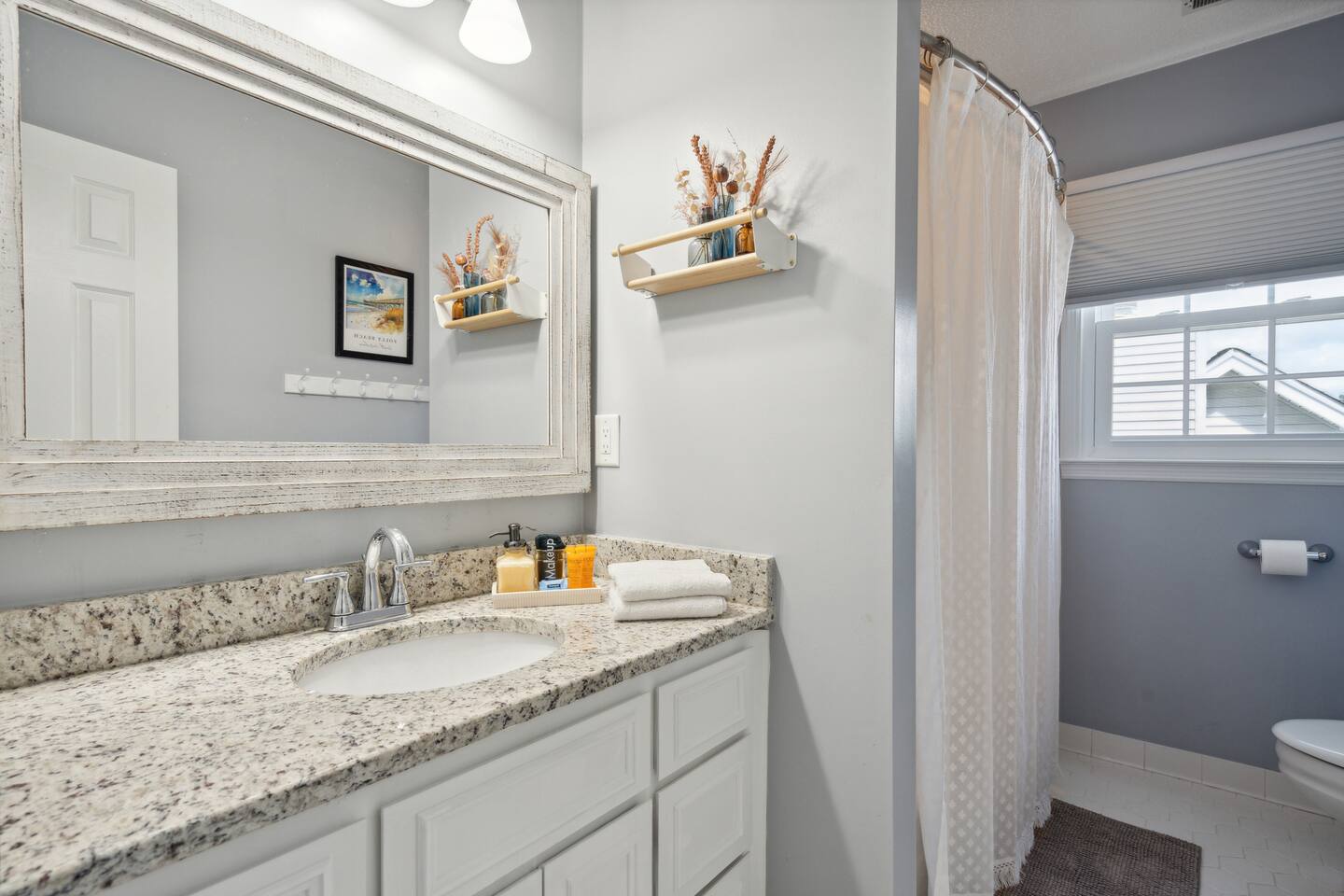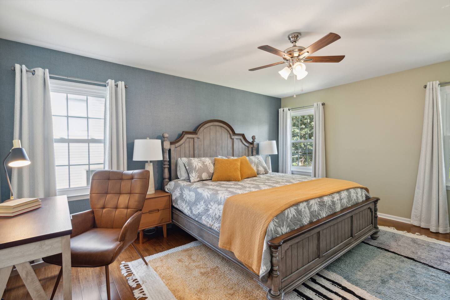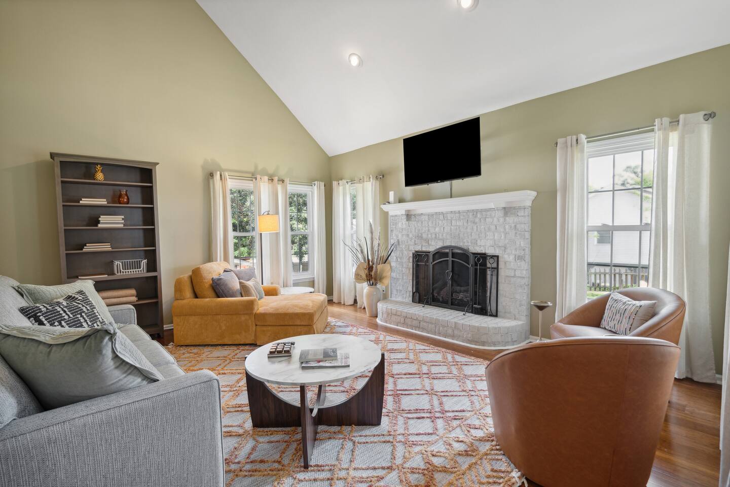 → Sleeps 10. 3 Bedrooms. 1 King. 2 Queens. 2 Singles and trundle in family room → 2 ½ Bathrooms. 1 with shower/tub combo and 1 with stand-up shower. → Modern and well-equipped kitchen → Wifi with 5 ROKU TV's. → Game room with Ping Pong Table → Adult Tricycles for guest use (Waiver Required) → Board Games and Books → Fire Pit → Dog-Friendly with fenced in yard → Kayak/Paddle Board launch at Venice Park → Ideal location to access many attractions ☆☆ BEDROOMS ☆☆ This gorgeous retreat accommodates 10 guests in 3 bedrooms plus additional sleeping in the family room. All bedrooms for fitted with Roku TV's. The master bedroom, located on the 1st floor, is fitted with a king-size bed, office area, walk-in closet, and a beautiful design that encourages complete relaxation. The second level boasts 2 Queen bedrooms that can host 4 guests. The family room accommodates another 4 guests in 2 twin beds along with a trundle bed Directly across from the sleeping area, guests will find a well-stocked, updated full bathroom. ☆☆ BATHROOMS ☆☆ There are two full bathrooms with an additional ½ bathroom that is located on the 1st floor. Each bathroom is stocked with all the essentials you need for the duration of your stay. The 1st level hosts a full bathroom located in the master suite with a stunning tile walk-in shower. The 1st floor ½ bathroom is conveniently located off of the kitchen. The full bathroom on the 2nd level is well equipped and boasts a shower/tub combination. Worry about nothing with these thoughtfully stocked bathrooms that provide everything you need and more. ☆☆ KITCHEN, DINING & LIVING AREA ☆☆ The bright and airy kitchen is fully equipped with all the appliances, utensils, and cookware you need to feel at home. This modern kitchen, with a large farmer's sink and new appliances, has fully stocked cabinets for all entertaining needs including a variety of sweet tea flavors. The high-end, cozy dining room is just off the kitchen and is equipped with an oval dining table that seats 8. Just off the kitchen you will find the laundry room that guest can use at their convenience. The main living area is situated on the 1st level of the home and is kitted with an HDTV with a Roku entertainment system, allowing full access to your favorite streaming services. The secondary living area, located on the 2nd level, is also equipped with an HDTV with a Roku entertainment system The secondary living area boasts a fun-filled game room equipped with a ping pong table, board games, and much more. ☆☆ OUTSIDE SPACE ☆☆ The exterior area of this home has a gorgeous yard and ample privacy. Sit back and relax with a sweet tea on the large farmer’s porch equipped with 4 rockers, a doubled benched table, and 3 ceiling fans. Friends and family can enjoy a charming backyard oasis featuring a fenced-in yard with a spacious deck with a BBQ, a cozy screened-in porch perfect for relaxing, an inviting fire pit for gatherings, and a bocce area for fun outdoor entertainment. This is the perfect spot to make memories that will last forever. ★☆ Book Today & Let Us Take Care Of You in Hanahan! ☆★