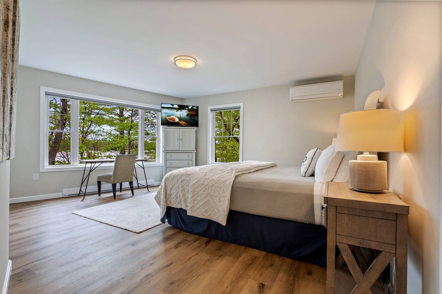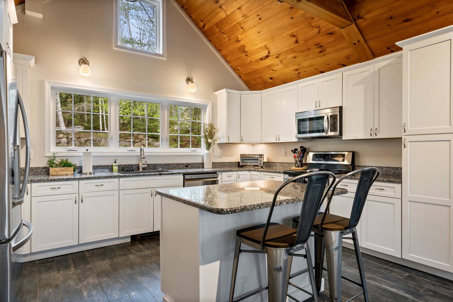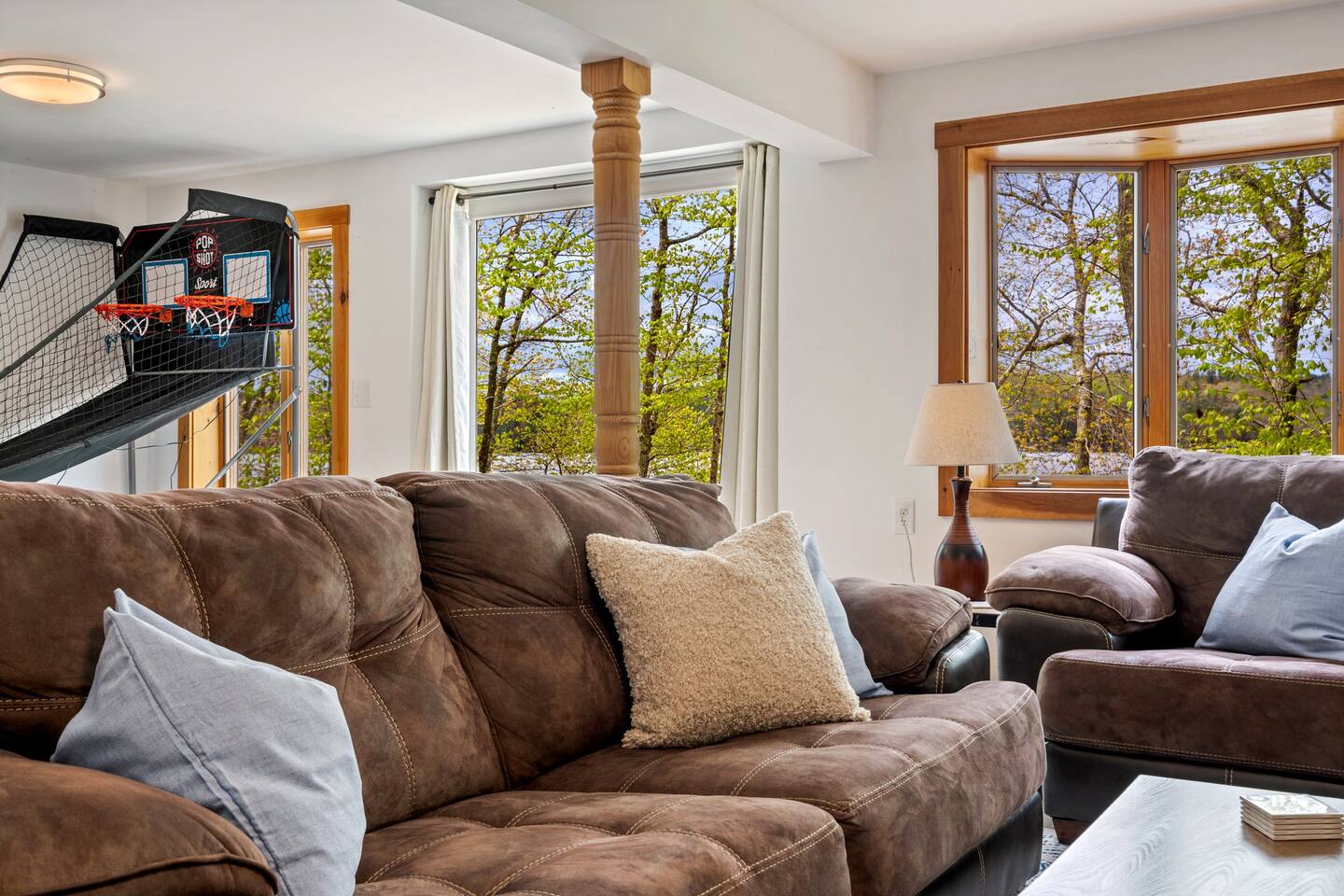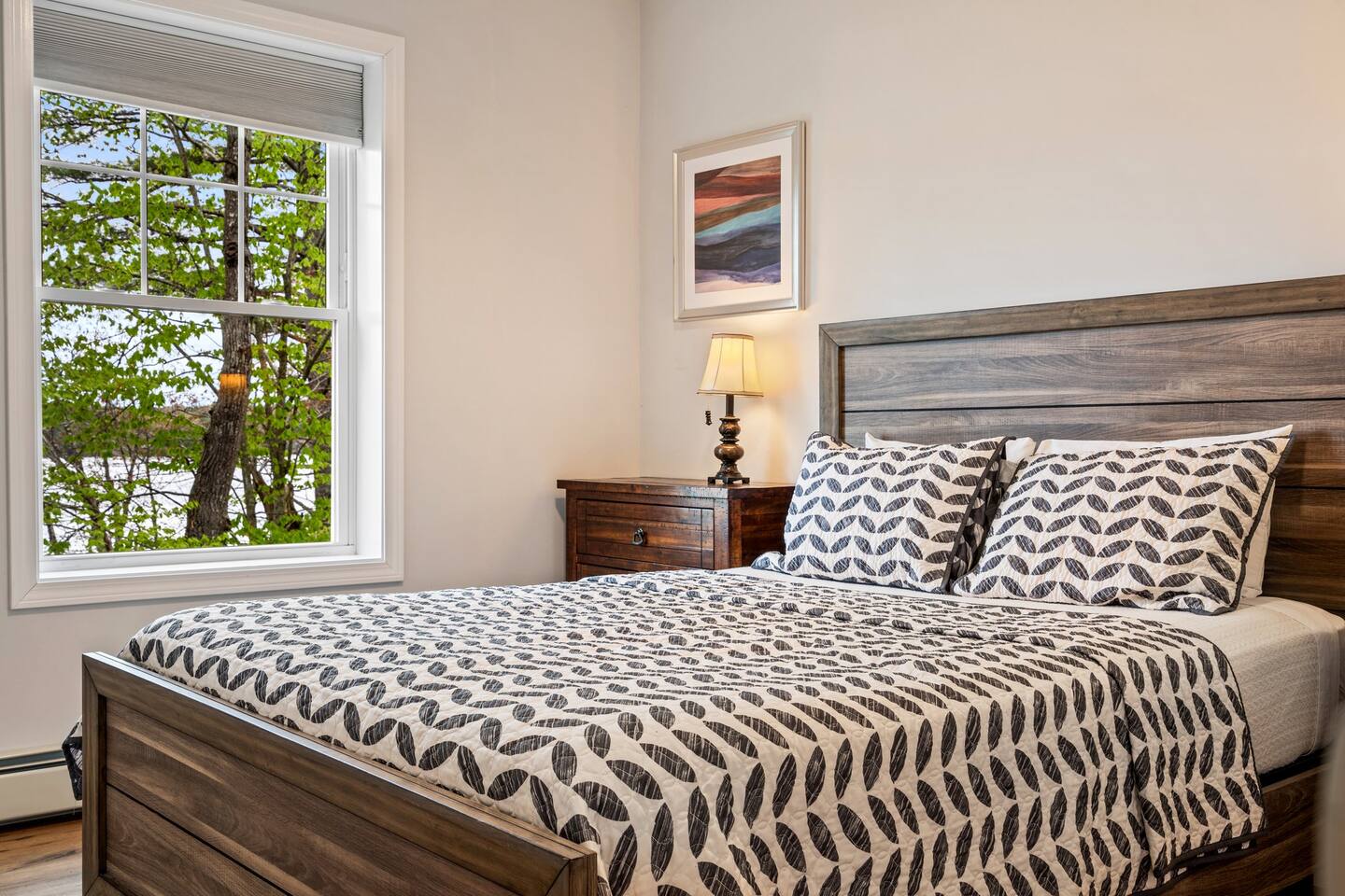 → Sleeps 12. 5 Bedrooms.2 Kings. 2 Queens. 1 Twin. 1 Bunk bed and pull-out couch. → 4 Bathrooms. 1 with shower/tub combo and 1 with stand-up shower. → Modern and well-equipped kitchen → HIgh-Speed Wifi with 3 Smart TV’s → Private Dock (June-mid October) → Firepit and BBQ Grill → Kayaks with Adult and Child Life Vests → 2 furnished and screened-in decks → Board Games and Books → Pop-A-Shot → Beautiful lake views ☆☆ BEDROOMS ☆☆ This gorgeous retreat accommodates 12 guests in 5 bedrooms. The 1st primary bedroom is fitted with a king-size bed, a stunning work space, and jaw dropping lake views. The 2nd primary bedroom is well appointed and boasts a king bed along with a comfy sofa bed for increased comfort and convenience. The 3rd bedroom on the main level hosts a luxurious queen bed and magical lake views. The lower level of the home offers the perfect oasis for children and friends alike with 2 well-appointed bedrooms. The 1st bedroom on the lower level invites guests to wake up to the gentle sounds of nature and a beautiful view of Long Lake in this serene and spacious bedroom. Featuring a comfortable queen bed and a twin bed, it’s the perfect setup for couples, small families, or friends traveling together. Thoughtful touches like cozy quilts, vintage-style decor, and warm lighting create a space that’s as charming as it is restful. Just off the bedroom, step through the sliding glass door to your very own screened-in deck—a peaceful perch nestled in the trees. Enjoy your morning coffee or unwind in the evening with a glass of wine as you gaze out at your private dock and the glistening lake below. The seating area on the deck makes it easy to relax and soak in the fresh Maine air—bug-free. Whether you're turning in after a fun day on the water or lounging with a book in the afternoon light, this room offers the perfect blend of comfort, views, and tranquility. The 2nd bedroom is designed with both play and practicality in mind. The space features a sturdy set of bunk beds, perfect for siblings, cousins, and friends. With a modern yet playful design, the bunk beds maximize floor space, leaving plenty of room for games, reading, or creative activities. ☆☆ BATHROOMS ☆☆ There are two full bathrooms, along with a half bathroom, on the main level of the house. Additionally, guests have access to a well equipped half bathroom on the lower level offering top-notch convenience for your stay. Each of the bathrooms are stocked with all the essentials you need for the duration of your stay. The primary bedroom hosts a beautifully designed full bathroom with a stand-up shower.The second full bathroom is fully equipped and includes a shower/tub combination. It shares a hallway with the 2 additional bedrooms and half bathroom on the main level and is just steps from the laundry area. Worry about nothing with these thoughtfully stocked bathrooms that provide everything you need and more. ☆☆ KITCHEN & LIVING AREA ☆☆ The bright and airy kitchen is fully equipped with all the appliances, utensils and cookware you need to feel at home. This thoughtfully-designed home provides an Eat-In kitchen option and the dining area seats up to 8 guests at the gorgeous wooden table with additional seating provided at the kitchen island. Just off the kitchen, step into the beautiful screened-in deck, where comfort meets nature in perfect harmony. Surrounded by the gentle rustle of leaves and stunning views of Long Lake, this cozy lounge space is made for unwinding. Whether you’re enjoying a morning coffee, reading a good book, or sharing a glass of wine at sunset, this peaceful retreat invites you to slow down and savor the moment. The first living area is situated just off of the kitchen in the main house and is kitted with a Smart TV, allowing full access to your favorite streaming services. Not interested in watching TV? Cozy up on the plush seating or deck hammock overlooking Long Lake with your favorite book and take in the natural beauty of Maine’s Lake Region. The secondary living area offers the ultimate hangout zone at Long Lake Happiness! This bright, spacious lower-level living area is perfect for relaxing, entertaining, and spending quality time together. With large windows letting in natural light and peekaboo lake views, you’ll feel connected to nature while enjoying all the comforts of home. Challenge your crew to a Pop-A-Shot showdown, then gather around the rustic dining table for board games, meals, or late-night snacks. The comfy seating and large smart TV make this the perfect spot for movie nights or cheering on your favorite team. Just around the corner is a fully stocked kitchenette, ideal for grabbing drinks, making popcorn, or preparing casual meals without heading upstairs. Whether you're relaxing after a day on the lake or keeping the kids entertained while dinner’s cooking, this room has something for everyone. ☆☆ OUTSIDE SPACE ☆☆ The exterior area of this home boasts gorgeous views, a private dock, 2 screened-in decks, and all the lure of a luxurious lake house. The 2 decks overlook Long Lake, allowing you to appreciate the breathtaking views from this exclusive retreat while you prepare a meal on the BBQ. Both decks lead guests directly to the dock where the fun and adventure of Long Lake can be explored by all ages. When the sun goes down, get comfortable and enjoy a night by the fire! Long Lake Happiness provides all the essentials for guests to make memories that will last forever. ★☆ Book Today & Let Us Take Care Of You at Long Lake! ☆★