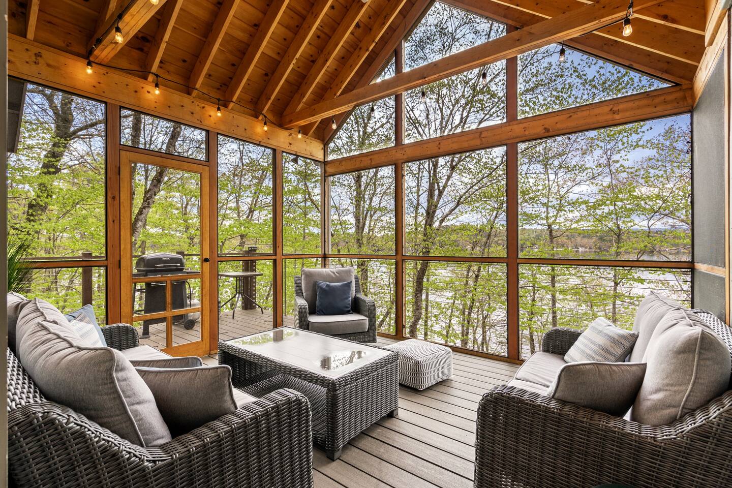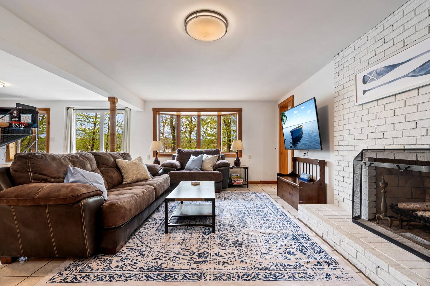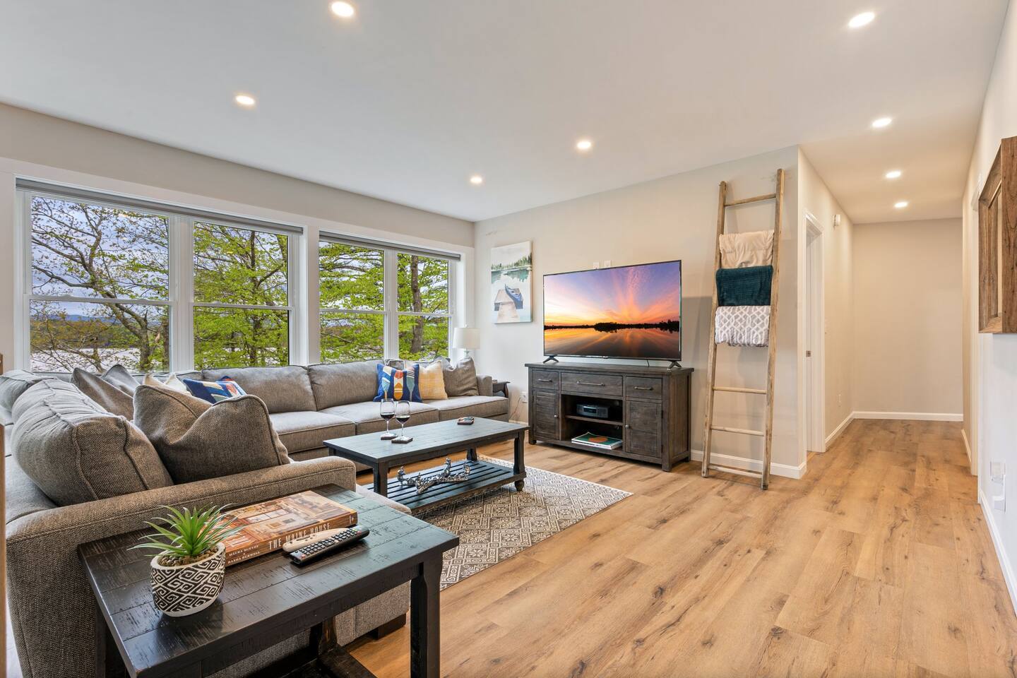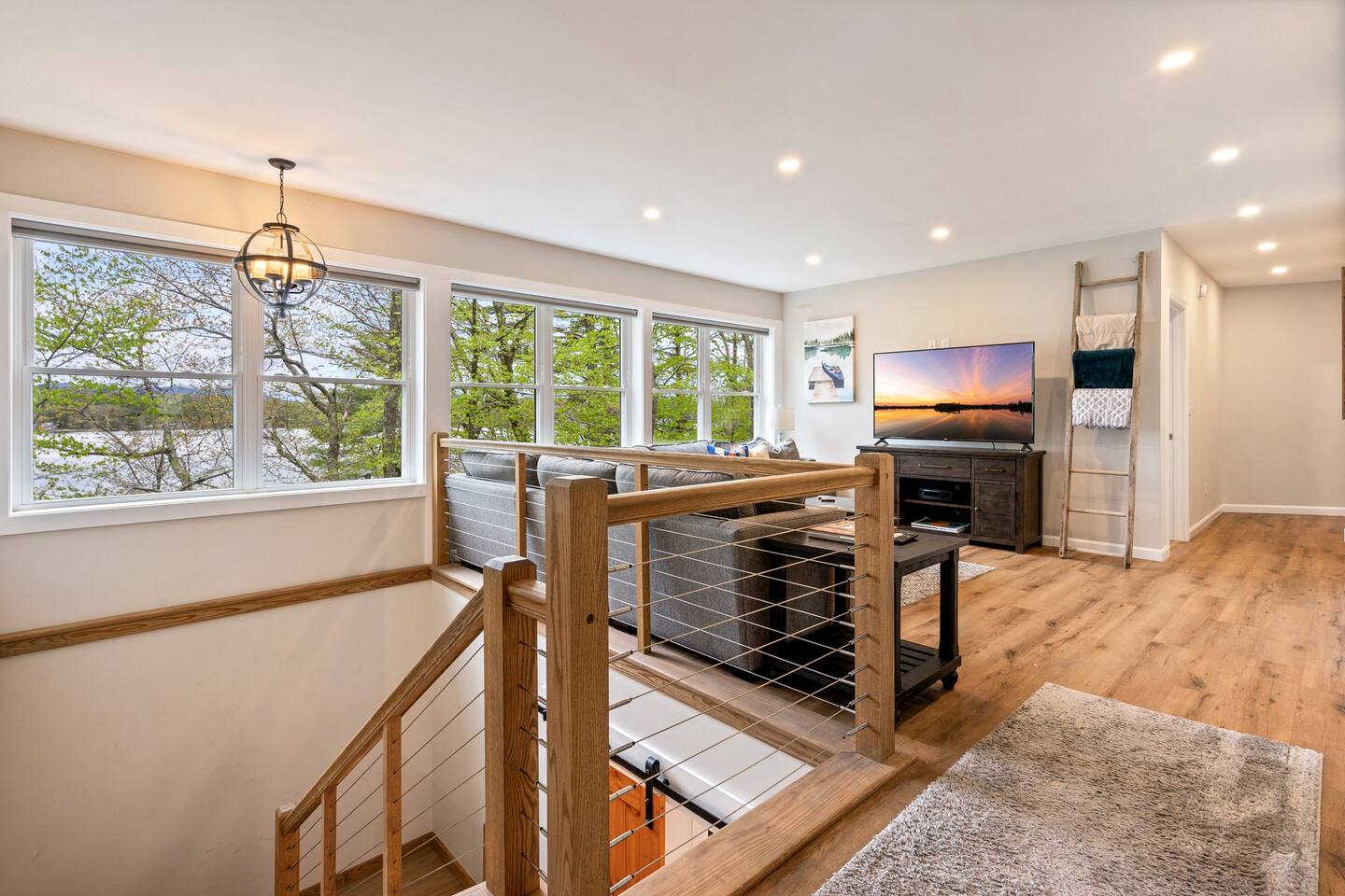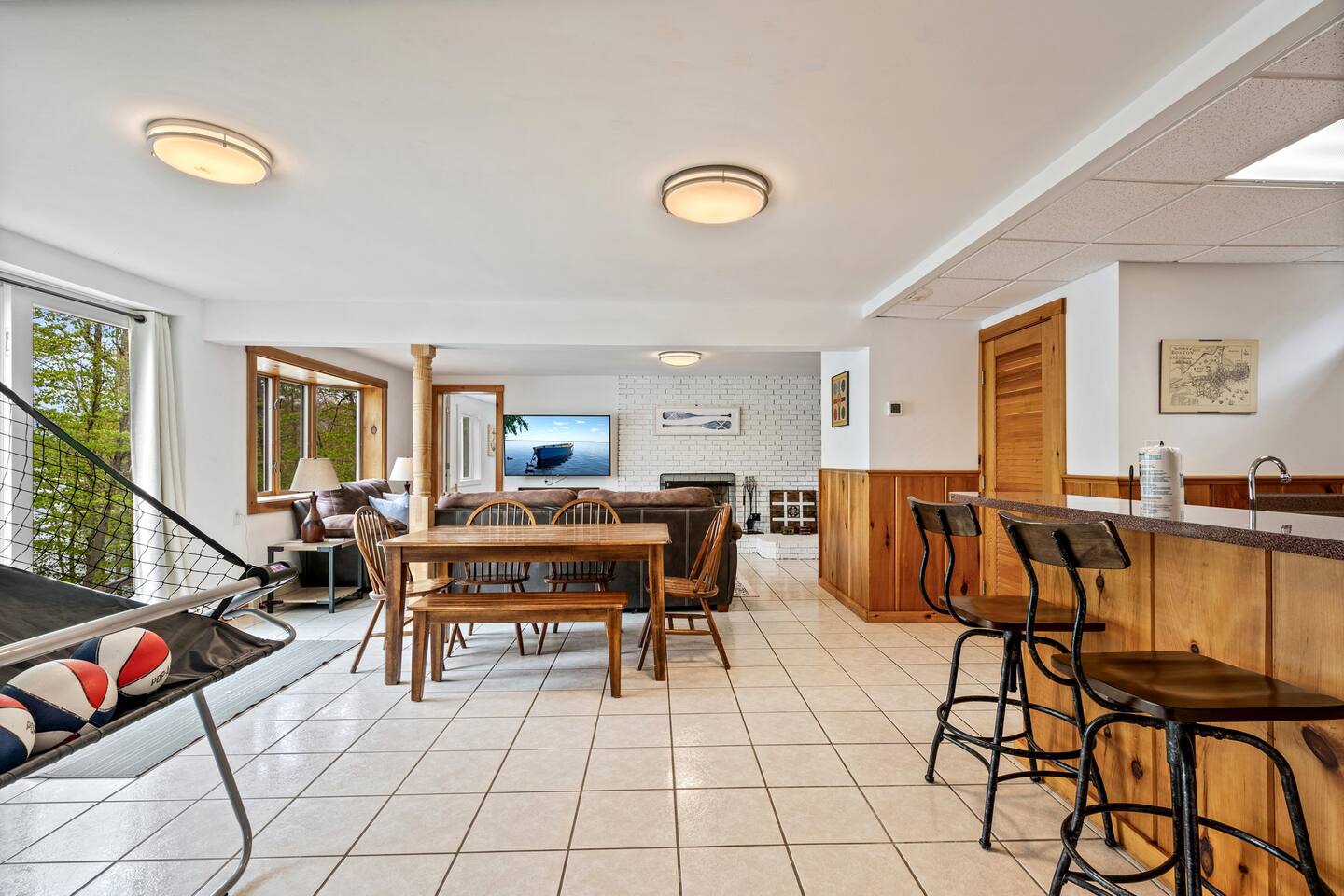 → Sleeps 12. 5 Bedrooms.2 Kings. 2 Queens. 1 Twin. 1 Bunk bed and pull-out couch. → 4 Bathrooms. 1 with shower/tub combo and 1 with stand-up shower. → Modern and well-equipped kitchen → HIgh-Speed Wifi with 3 Smart TV’s → Private Dock (June-mid October) → Firepit and BBQ Grill → Kayaks with Adult and Child Life Vests → 2 furnished and screened-in decks → Board Games and Books → Pop-A-Shot → Beautiful lake views ☆☆ BEDROOMS ☆☆ This gorgeous retreat accommodates 12 guests in 5 bedrooms. The 1st primary bedroom is fitted with a king-size bed, a stunning work space, and jaw dropping lake views. The 2nd primary bedroom is well appointed and boasts a king bed along with a comfy sofa bed for increased comfort and convenience. The 3rd bedroom on the main level hosts a luxurious queen bed and magical lake views. The lower level of the home offers the perfect oasis for children and friends alike with 2 well-appointed bedrooms. The 1st bedroom on the lower level invites guests to wake up to the gentle sounds of nature and a beautiful view of Long Lake in this serene and spacious bedroom. Featuring a comfortable queen bed and a twin bed, it’s the perfect setup for couples, small families, or friends traveling together. Thoughtful touches like cozy quilts, vintage-style decor, and warm lighting create a space that’s as charming as it is restful. Just off the bedroom, step through the sliding glass door to your very own screened-in deck—a peaceful perch nestled in the trees. Enjoy your morning coffee or unwind in the evening with a glass of wine as you gaze out at your private dock and the glistening lake below. The seating area on the deck makes it easy to relax and soak in the fresh Maine air—bug-free. Whether you're turning in after a fun day on the water or lounging with a book in the afternoon light, this room offers the perfect blend of comfort, views, and tranquility. The 2nd bedroom is designed with both play and practicality in mind. The space features a sturdy set of bunk beds, perfect for siblings, cousins, and friends. With a modern yet playful design, the bunk beds maximize floor space, leaving plenty of room for games, reading, or creative activities. ☆☆ BATHROOMS ☆☆ There are two full bathrooms, along with a half bathroom, on the main level of the house. Additionally, guests have access to a well equipped half bathroom on the lower level offering top-notch convenience for your stay. Each of the bathrooms are stocked with all the essentials you need for the duration of your stay. The primary bedroom hosts a beautifully designed full bathroom with a stand-up shower.The second full bathroom is fully equipped and includes a shower/tub combination. It shares a hallway with the 2 additional bedrooms and half bathroom on the main level and is just steps from the laundry area. Worry about nothing with these thoughtfully stocked bathrooms that provide everything you need and more. ☆☆ KITCHEN & LIVING AREA ☆☆ The bright and airy kitchen is fully equipped with all the appliances, utensils and cookware you need to feel at home. This thoughtfully-designed home provides an Eat-In kitchen option and the dining area seats up to 8 guests at the gorgeous wooden table with additional seating provided at the kitchen island. Just off the kitchen, step into the beautiful screened-in deck, where comfort meets nature in perfect harmony. Surrounded by the gentle rustle of leaves and stunning views of Long Lake, this cozy lounge space is made for unwinding. Whether you’re enjoying a morning coffee, reading a good book, or sharing a glass of wine at sunset, this peaceful retreat invites you to slow down and savor the moment. The first living area is situated just off of the kitchen in the main house and is kitted with a Smart TV, allowing full access to your favorite streaming services. Not interested in watching TV? Cozy up on the plush seating or deck hammock overlooking Long Lake with your favorite book and take in the natural beauty of Maine’s Lake Region. The secondary living area offers the ultimate hangout zone at Long Lake Happiness! This bright, spacious lower-level living area is perfect for relaxing, entertaining, and spending quality time together. With large windows letting in natural light and peekaboo lake views, you’ll feel connected to nature while enjoying all the comforts of home. Challenge your crew to a Pop-A-Shot showdown, then gather around the rustic dining table for board games, meals, or late-night snacks. The comfy seating and large smart TV make this the perfect spot for movie nights or cheering on your favorite team. Just around the corner is a fully stocked kitchenette, ideal for grabbing drinks, making popcorn, or preparing casual meals without heading upstairs. Whether you're relaxing after a day on the lake or keeping the kids entertained while dinner’s cooking, this room has something for everyone. ☆☆ OUTSIDE SPACE ☆☆ The exterior area of this home boasts gorgeous views, a private dock, 2 screened-in decks, and all the lure of a luxurious lake house. The 2 decks overlook Long Lake, allowing you to appreciate the breathtaking views from this exclusive retreat while you prepare a meal on the BBQ. Both decks lead guests directly to the dock where the fun and adventure of Long Lake can be explored by all ages. When the sun goes down, get comfortable and enjoy a night by the fire! Long Lake Happiness provides all the essentials for guests to make memories that will last forever. ★☆ Book Today & Let Us Take Care Of You at Long Lake! ☆★