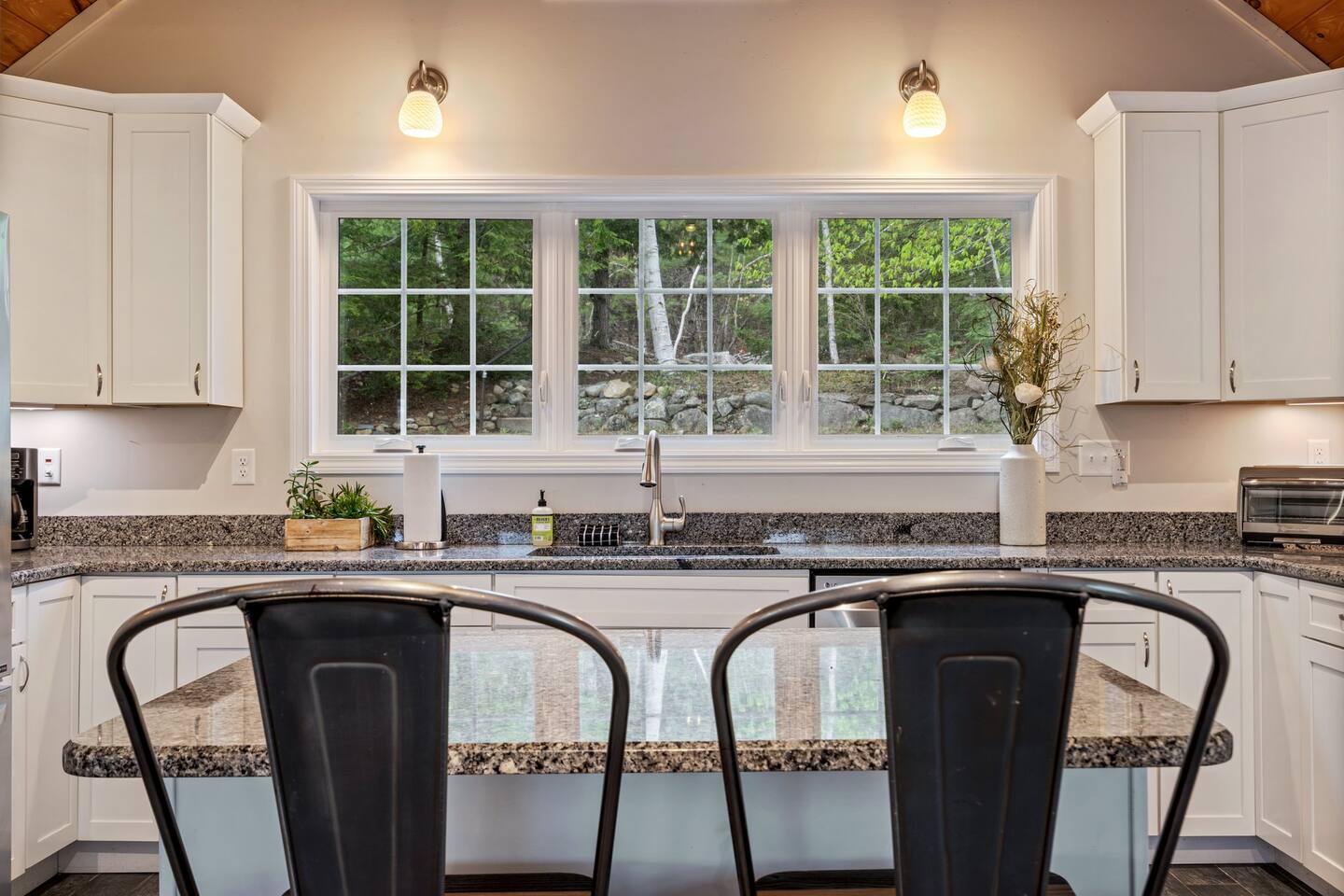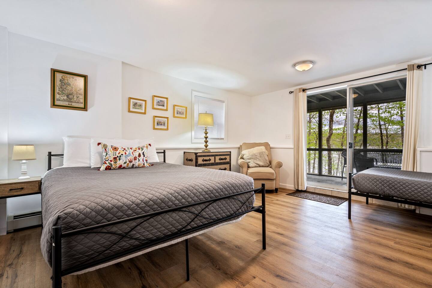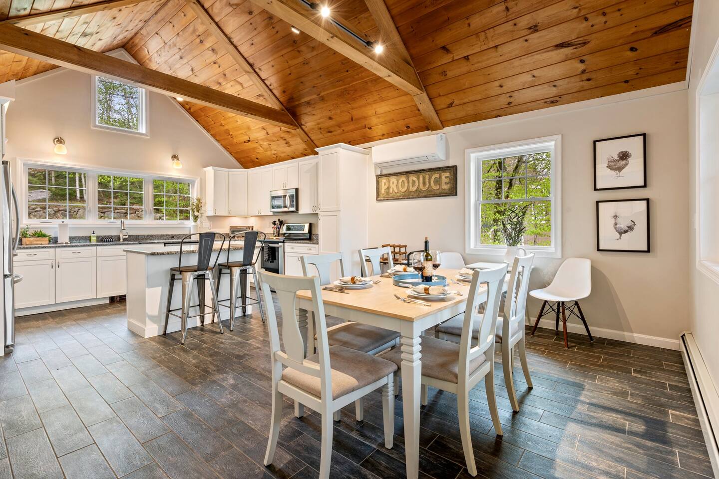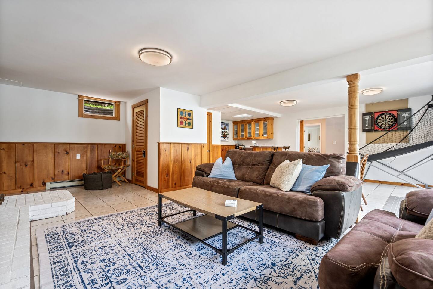 → Sleeps 12. 5 Bedrooms.2 Kings. 2 Queens. 1 Twin. 1 Bunk bed and pull-out couch. → 4 Bathrooms. 1 with shower/tub combo and 1 with stand-up shower. → Modern and well-equipped kitchen → HIgh-Speed Wifi with 3 Smart TV’s → Private Dock (June-mid October) → Firepit and BBQ Grill → Kayaks with Adult and Child Life Vests → 2 furnished and screened-in decks → Board Games and Books → Pop-A-Shot → Beautiful lake views ☆☆ BEDROOMS ☆☆ This gorgeous retreat accommodates 12 guests in 5 bedrooms. The 1st primary bedroom is fitted with a king-size bed, a stunning work space, and jaw dropping lake views. The 2nd primary bedroom is well appointed and boasts a king bed along with a comfy sofa bed for increased comfort and convenience. The 3rd bedroom on the main level hosts a luxurious queen bed and magical lake views. The lower level of the home offers the perfect oasis for children and friends alike with 2 well-appointed bedrooms. The 1st bedroom on the lower level invites guests to wake up to the gentle sounds of nature and a beautiful view of Long Lake in this serene and spacious bedroom. Featuring a comfortable queen bed and a twin bed, it’s the perfect setup for couples, small families, or friends traveling together. Thoughtful touches like cozy quilts, vintage-style decor, and warm lighting create a space that’s as charming as it is restful. Just off the bedroom, step through the sliding glass door to your very own screened-in deck—a peaceful perch nestled in the trees. Enjoy your morning coffee or unwind in the evening with a glass of wine as you gaze out at your private dock and the glistening lake below. The seating area on the deck makes it easy to relax and soak in the fresh Maine air—bug-free. Whether you're turning in after a fun day on the water or lounging with a book in the afternoon light, this room offers the perfect blend of comfort, views, and tranquility. The 2nd bedroom is designed with both play and practicality in mind. The space features a sturdy set of bunk beds, perfect for siblings, cousins, and friends. With a modern yet playful design, the bunk beds maximize floor space, leaving plenty of room for games, reading, or creative activities. ☆☆ BATHROOMS ☆☆ There are two full bathrooms, along with a half bathroom, on the main level of the house. Additionally, guests have access to a well equipped half bathroom on the lower level offering top-notch convenience for your stay. Each of the bathrooms are stocked with all the essentials you need for the duration of your stay. The primary bedroom hosts a beautifully designed full bathroom with a stand-up shower.The second full bathroom is fully equipped and includes a shower/tub combination. It shares a hallway with the 2 additional bedrooms and half bathroom on the main level and is just steps from the laundry area. Worry about nothing with these thoughtfully stocked bathrooms that provide everything you need and more. ☆☆ KITCHEN & LIVING AREA ☆☆ The bright and airy kitchen is fully equipped with all the appliances, utensils and cookware you need to feel at home. This thoughtfully-designed home provides an Eat-In kitchen option and the dining area seats up to 8 guests at the gorgeous wooden table with additional seating provided at the kitchen island. Just off the kitchen, step into the beautiful screened-in deck, where comfort meets nature in perfect harmony. Surrounded by the gentle rustle of leaves and stunning views of Long Lake, this cozy lounge space is made for unwinding. Whether you’re enjoying a morning coffee, reading a good book, or sharing a glass of wine at sunset, this peaceful retreat invites you to slow down and savor the moment. The first living area is situated just off of the kitchen in the main house and is kitted with a Smart TV, allowing full access to your favorite streaming services. Not interested in watching TV? Cozy up on the plush seating or deck hammock overlooking Long Lake with your favorite book and take in the natural beauty of Maine’s Lake Region. The secondary living area offers the ultimate hangout zone at Long Lake Happiness! This bright, spacious lower-level living area is perfect for relaxing, entertaining, and spending quality time together. With large windows letting in natural light and peekaboo lake views, you’ll feel connected to nature while enjoying all the comforts of home. Challenge your crew to a Pop-A-Shot showdown, then gather around the rustic dining table for board games, meals, or late-night snacks. The comfy seating and large smart TV make this the perfect spot for movie nights or cheering on your favorite team. Just around the corner is a fully stocked kitchenette, ideal for grabbing drinks, making popcorn, or preparing casual meals without heading upstairs. Whether you're relaxing after a day on the lake or keeping the kids entertained while dinner’s cooking, this room has something for everyone. ☆☆ OUTSIDE SPACE ☆☆ The exterior area of this home boasts gorgeous views, a private dock, 2 screened-in decks, and all the lure of a luxurious lake house. The 2 decks overlook Long Lake, allowing you to appreciate the breathtaking views from this exclusive retreat while you prepare a meal on the BBQ. Both decks lead guests directly to the dock where the fun and adventure of Long Lake can be explored by all ages. When the sun goes down, get comfortable and enjoy a night by the fire! Long Lake Happiness provides all the essentials for guests to make memories that will last forever. ★☆ Book Today & Let Us Take Care Of You at Long Lake! ☆★