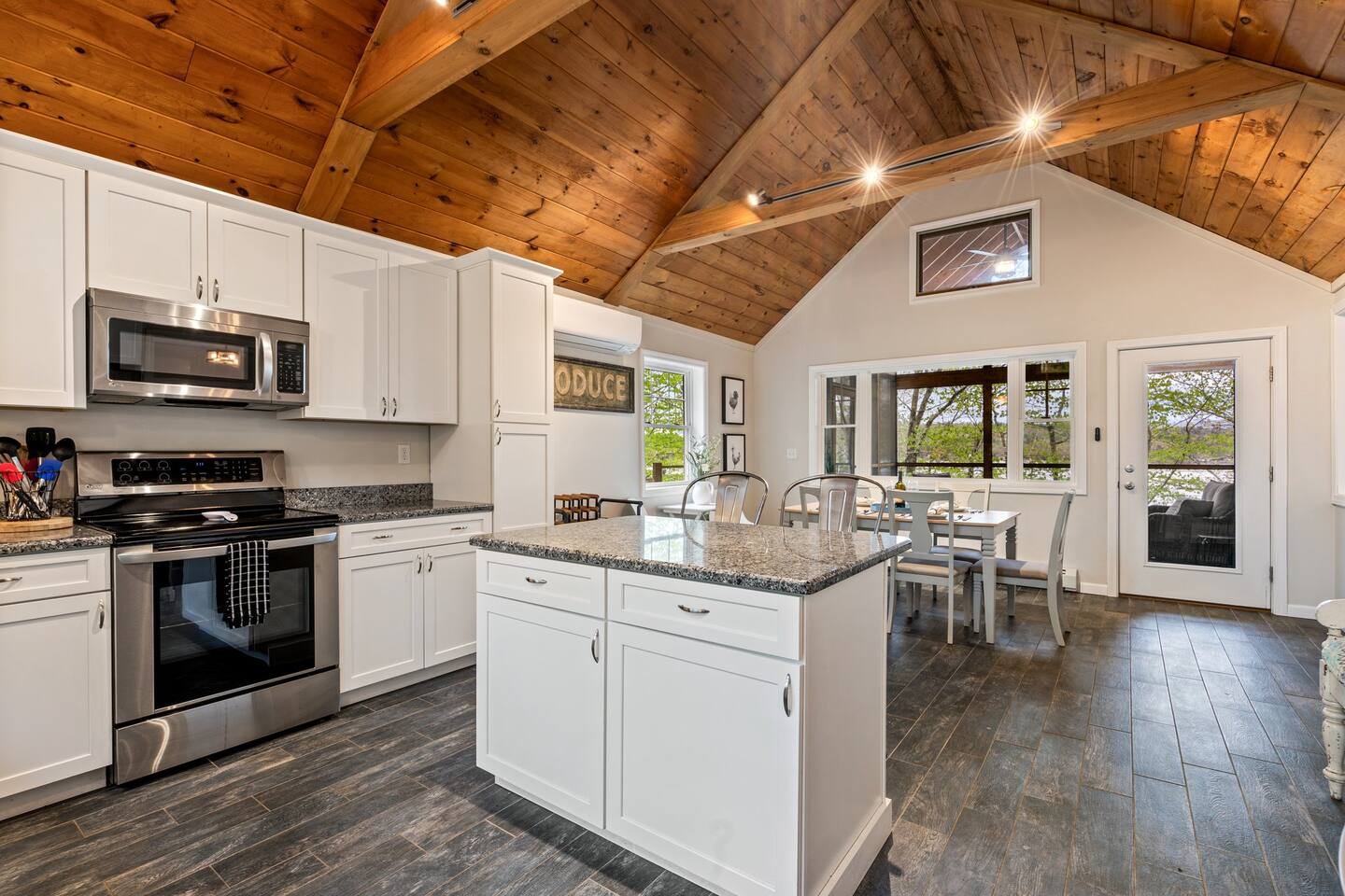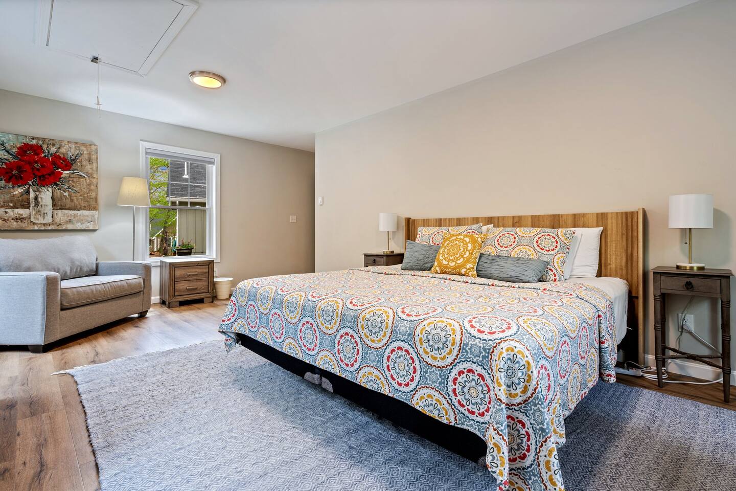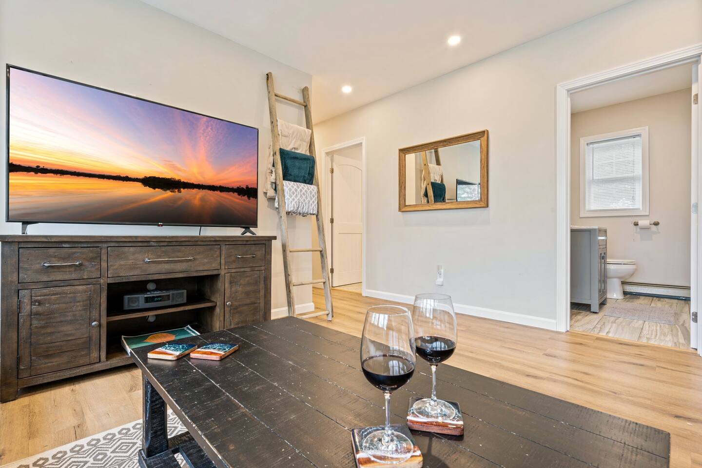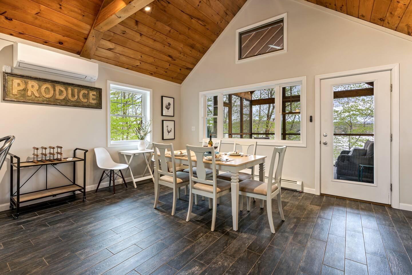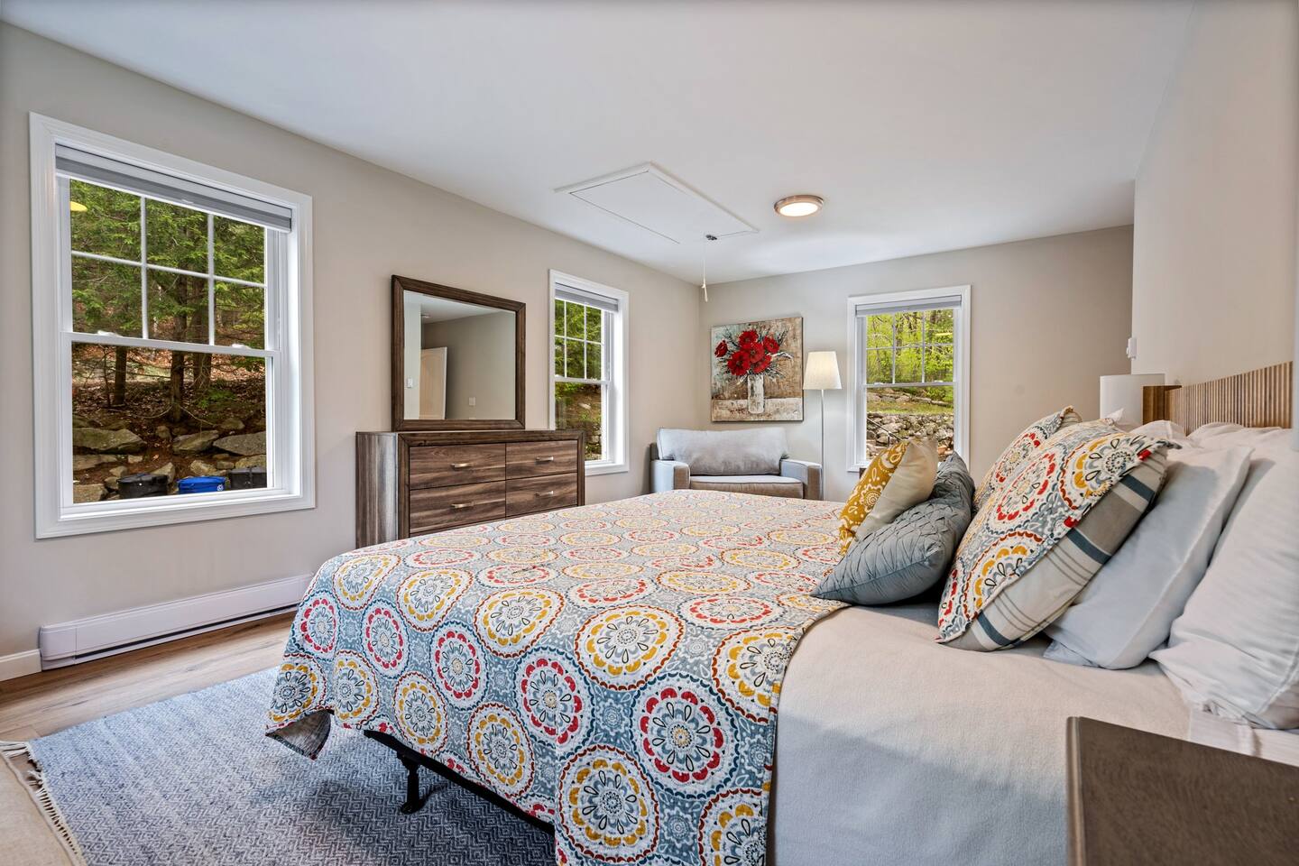 → Sleeps 12. 5 Bedrooms.2 Kings. 2 Queens. 1 Twin. 1 Bunk bed and pull-out couch. → 4 Bathrooms. 1 with shower/tub combo and 1 with stand-up shower. → Modern and well-equipped kitchen → HIgh-Speed Wifi with 3 Smart TV’s → Private Dock (June-mid October) → Firepit and BBQ Grill → Kayaks with Adult and Child Life Vests → 2 furnished and screened-in decks → Board Games and Books → Pop-A-Shot → Beautiful lake views ☆☆ BEDROOMS ☆☆ This gorgeous retreat accommodates 12 guests in 5 bedrooms. The 1st primary bedroom is fitted with a king-size bed, a stunning work space, and jaw dropping lake views. The 2nd primary bedroom is well appointed and boasts a king bed along with a comfy sofa bed for increased comfort and convenience. The 3rd bedroom on the main level hosts a luxurious queen bed and magical lake views. The lower level of the home offers the perfect oasis for children and friends alike with 2 well-appointed bedrooms. The 1st bedroom on the lower level invites guests to wake up to the gentle sounds of nature and a beautiful view of Long Lake in this serene and spacious bedroom. Featuring a comfortable queen bed and a twin bed, it’s the perfect setup for couples, small families, or friends traveling together. Thoughtful touches like cozy quilts, vintage-style decor, and warm lighting create a space that’s as charming as it is restful. Just off the bedroom, step through the sliding glass door to your very own screened-in deck—a peaceful perch nestled in the trees. Enjoy your morning coffee or unwind in the evening with a glass of wine as you gaze out at your private dock and the glistening lake below. The seating area on the deck makes it easy to relax and soak in the fresh Maine air—bug-free. Whether you're turning in after a fun day on the water or lounging with a book in the afternoon light, this room offers the perfect blend of comfort, views, and tranquility. The 2nd bedroom is designed with both play and practicality in mind. The space features a sturdy set of bunk beds, perfect for siblings, cousins, and friends. With a modern yet playful design, the bunk beds maximize floor space, leaving plenty of room for games, reading, or creative activities. ☆☆ BATHROOMS ☆☆ There are two full bathrooms, along with a half bathroom, on the main level of the house. Additionally, guests have access to a well equipped half bathroom on the lower level offering top-notch convenience for your stay. Each of the bathrooms are stocked with all the essentials you need for the duration of your stay. The primary bedroom hosts a beautifully designed full bathroom with a stand-up shower.The second full bathroom is fully equipped and includes a shower/tub combination. It shares a hallway with the 2 additional bedrooms and half bathroom on the main level and is just steps from the laundry area. Worry about nothing with these thoughtfully stocked bathrooms that provide everything you need and more. ☆☆ KITCHEN & LIVING AREA ☆☆ The bright and airy kitchen is fully equipped with all the appliances, utensils and cookware you need to feel at home. This thoughtfully-designed home provides an Eat-In kitchen option and the dining area seats up to 8 guests at the gorgeous wooden table with additional seating provided at the kitchen island. Just off the kitchen, step into the beautiful screened-in deck, where comfort meets nature in perfect harmony. Surrounded by the gentle rustle of leaves and stunning views of Long Lake, this cozy lounge space is made for unwinding. Whether you’re enjoying a morning coffee, reading a good book, or sharing a glass of wine at sunset, this peaceful retreat invites you to slow down and savor the moment. The first living area is situated just off of the kitchen in the main house and is kitted with a Smart TV, allowing full access to your favorite streaming services. Not interested in watching TV? Cozy up on the plush seating or deck hammock overlooking Long Lake with your favorite book and take in the natural beauty of Maine’s Lake Region. The secondary living area offers the ultimate hangout zone at Long Lake Happiness! This bright, spacious lower-level living area is perfect for relaxing, entertaining, and spending quality time together. With large windows letting in natural light and peekaboo lake views, you’ll feel connected to nature while enjoying all the comforts of home. Challenge your crew to a Pop-A-Shot showdown, then gather around the rustic dining table for board games, meals, or late-night snacks. The comfy seating and large smart TV make this the perfect spot for movie nights or cheering on your favorite team. Just around the corner is a fully stocked kitchenette, ideal for grabbing drinks, making popcorn, or preparing casual meals without heading upstairs. Whether you're relaxing after a day on the lake or keeping the kids entertained while dinner’s cooking, this room has something for everyone. ☆☆ OUTSIDE SPACE ☆☆ The exterior area of this home boasts gorgeous views, a private dock, 2 screened-in decks, and all the lure of a luxurious lake house. The 2 decks overlook Long Lake, allowing you to appreciate the breathtaking views from this exclusive retreat while you prepare a meal on the BBQ. Both decks lead guests directly to the dock where the fun and adventure of Long Lake can be explored by all ages. When the sun goes down, get comfortable and enjoy a night by the fire! Long Lake Happiness provides all the essentials for guests to make memories that will last forever. ★☆ Book Today & Let Us Take Care Of You at Long Lake! ☆★