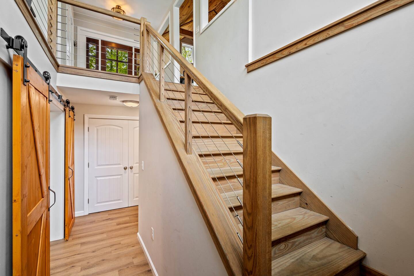 Guests staying at Long Lake Happiness have exclusive access to numerous amenities. Take time to enjoy the gorgeous views from the two private viewing decks and use the fire pit, kayaks, water floats, dock, and games at your leisure. There are 3 HD Smart TVs in the home and you are welcome to use the laundry area at your convenience. The home is fitted with a smart door lock, an exterior Ring camera, Minut noise monitoring device, and free parking for vehicles is available on the premises.