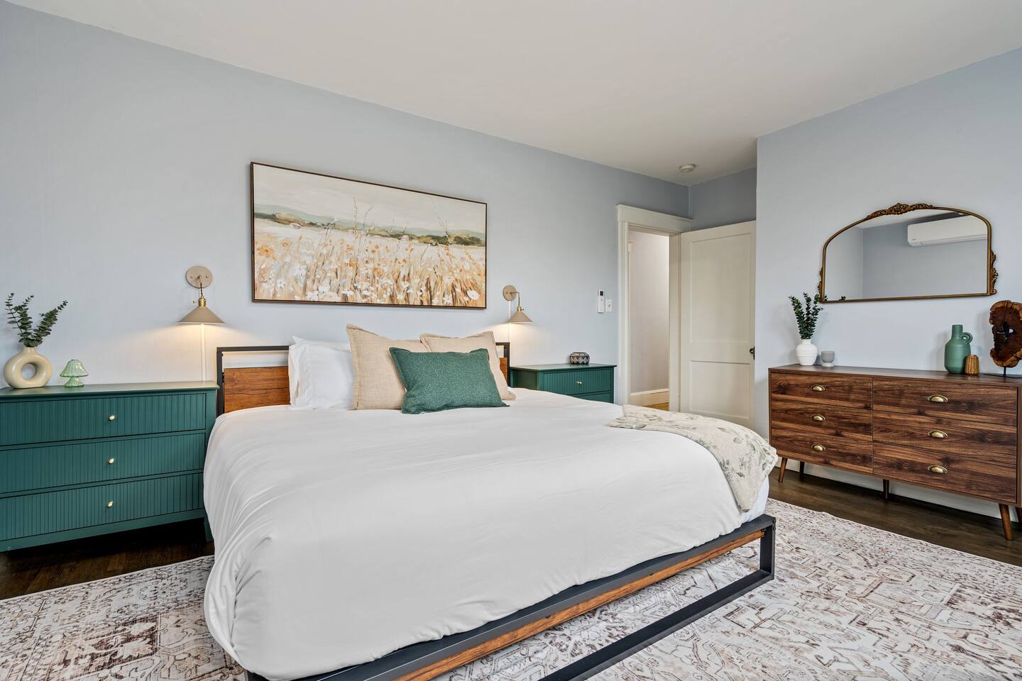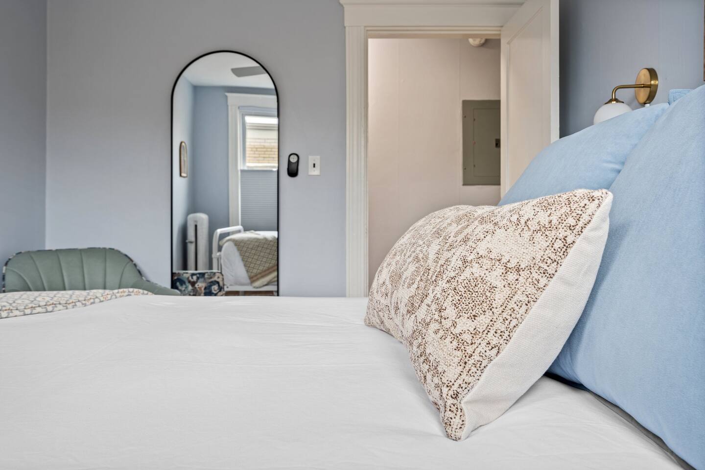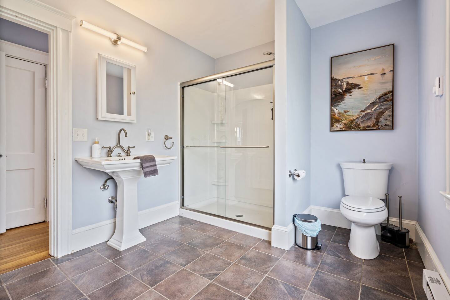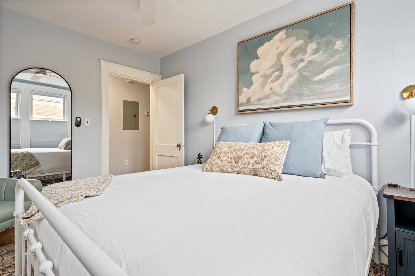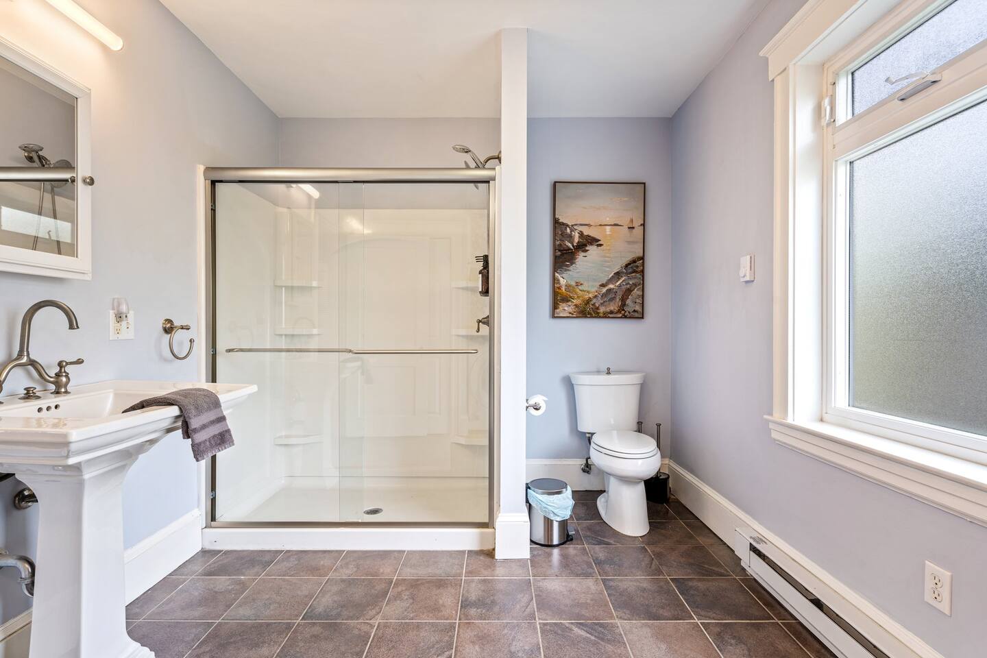 → Sleeps 16 | 6 Bedrooms | Queen Beds → Two sofa beds → Queen Air Mattress for additional guests → 4.5 Bathrooms → Two fully equipped kitchens → Two dining areas + breakfast bar seating → Two living rooms with Smart TVs → Board games & bay window seating → High-speed Wi-Fi → Washer & dryer in both units → Mini-split heating & AC in select bedrooms → High chair for families → Free on-site parking for select vehicles + free street parking nearby → Private balcony ☆☆ BEDROOMS ☆☆ The property features six spacious bedrooms designed as private, tranquil retreats for deep relaxation and privacy. Each room is a customized sanctuary equipped with its own split-system climate control, ensuring every guest can enjoy a personalized temperature for a perfect night's sleep. These quarters are styled with premium linens and a diverse range of high-end aesthetics, varying from serene nautical blue accents to sophisticated wood finishes and modern furniture that creates a boutique atmosphere. Beyond the comfort of the beds, the rooms are filled with thoughtful and stylish details. Guests will find functional touches such as arched gold-framed mirrors, designer rugs, and ambient bedside lighting that adds a warm glow to the space. For added convenience, each room offers ample storage in spacious dressers and nightstands, along with cozy accent chairs that provide the perfect corner for a quiet moment of reading or morning coffee. For additional flexibility, the home also provides a Queen air mattress available for additional guests if needed. ☆☆ BATHROOMS ☆☆ The property features four spa-inspired bathrooms and a convenient half-bath, each blending high-end functionality with sophisticated design. The primary bathrooms offer diverse bathing experiences, ranging from large glass-enclosed showers with custom mosaic tiling to full bathtubs with sliding glass doors. Each space is thoughtfully detailed with premium finishes, including marble vanities, modern integrated LED mirrors, and designer fixtures that range from contemporary chrome to elegant vintage-style brass. To ensure comfort for large groups, the bathrooms are equipped with ample storage and bright, airy layouts enhanced by natural light from strategically placed windows. Stylish touches such as decorative floral artwork, patterned tile flooring, and curated wall lighting create a boutique feel throughout. The addition of a clean, minimalist half-bath with a dedicated vanity provides extra convenience for guests during their stay. ☆☆ KITCHEN & LIVING AREA ☆☆ The home features two fully equipped kitchens and expansive social areas that are naturally bathed in sunshine. Each kitchen is designed with a modern aesthetic, boasting sleek charcoal cabinetry, high-end stainless steel appliances, and large islands that double as breakfast bars. These bright, open spaces flow seamlessly into the dual living rooms, where elegant coffered ceilings and plush sectional seating with two comfortable sofa beds for additional sleeping space are highlighted by the abundant natural light and direct access to a private balcony, extending the living space outdoors and creating an airy, inviting atmosphere. The property offers two distinct dining areas perfectly suited for hosting large groups. The main dining space features a grand wooden table that comfortably seats eight, set under a sophisticated ceiling design that creates a formal yet inviting atmosphere for shared meals. A second, more casual dining area provides additional flexibility, ensuring there is plenty of room for everyone to gather, eat, and socialize without ever feeling crowded. ☆☆ LOCATION ☆☆ Stay close to Portland’s best attractions while enjoying a quiet residential setting. 🎨 Arts District (10 min) – Museums, galleries, cafés, and creative energy. 🎭 State Theatre (10 min) – A historic venue hosting live performances and concerts. 🌊 Old Port & Eastern Promenade (10 min) – Waterfront views, cobblestone streets, shops, and restaurants. 🌳 Payson Park (8 min) – Expansive green space with recreation areas and trails. 🌅 Fort Allen Park (12 min) – Scenic views of Casco Bay and historic landmarks. ☆☆ COMFORT & CONVENIENCE ☆☆ ✔ High-speed Wi-Fi ✔ Smart TV ✔ Books & board games ✔ Hair dryer, fresh linens, and towels provided ✔ Coffee makers (Keurig + drip) ✔ In-unit washer & dryer ✔ Pack ’n Play for families