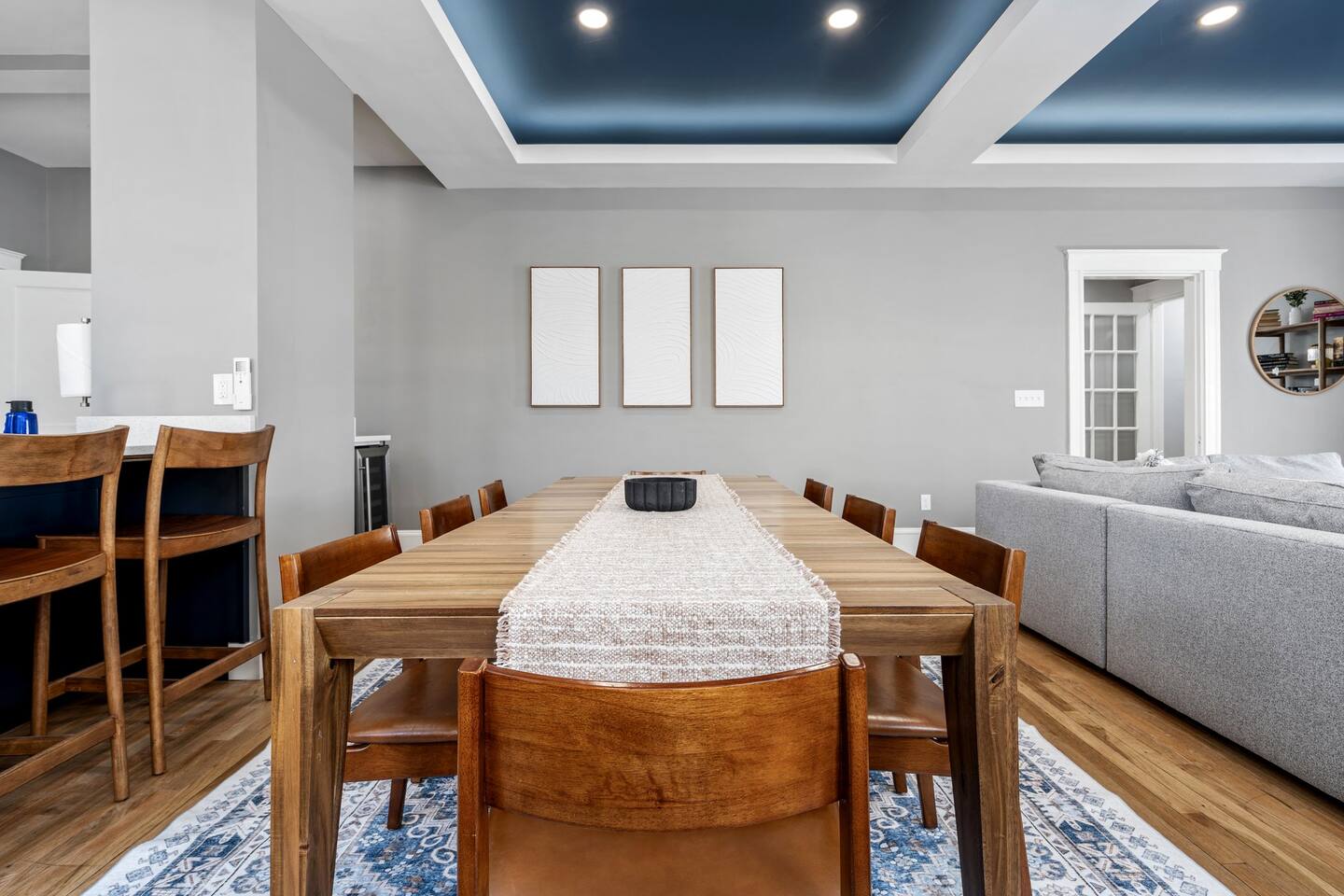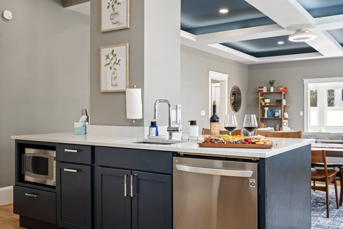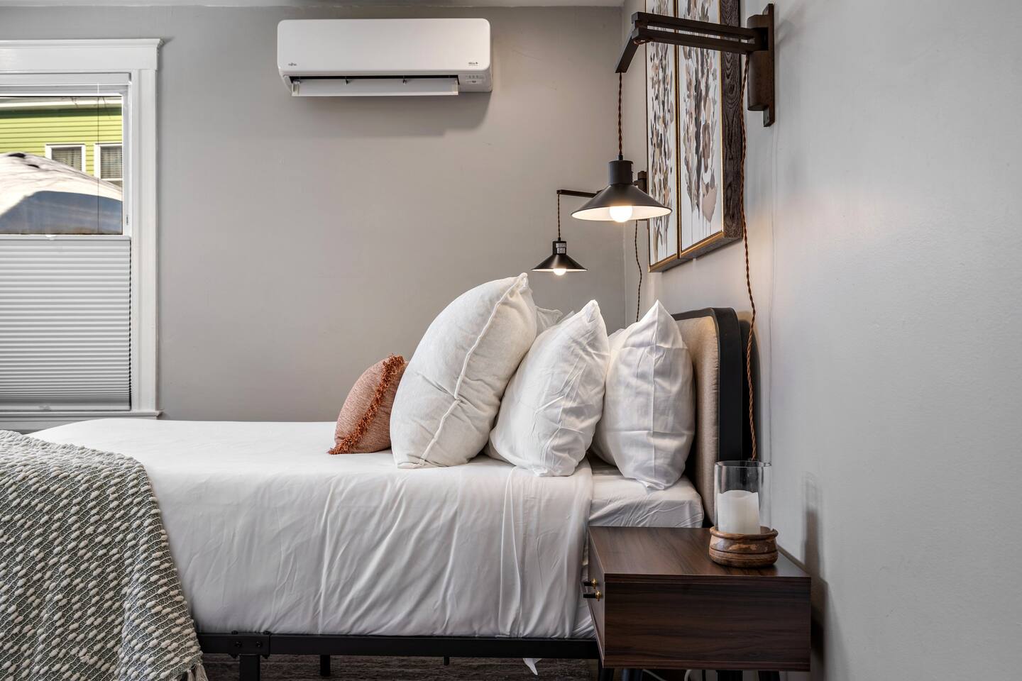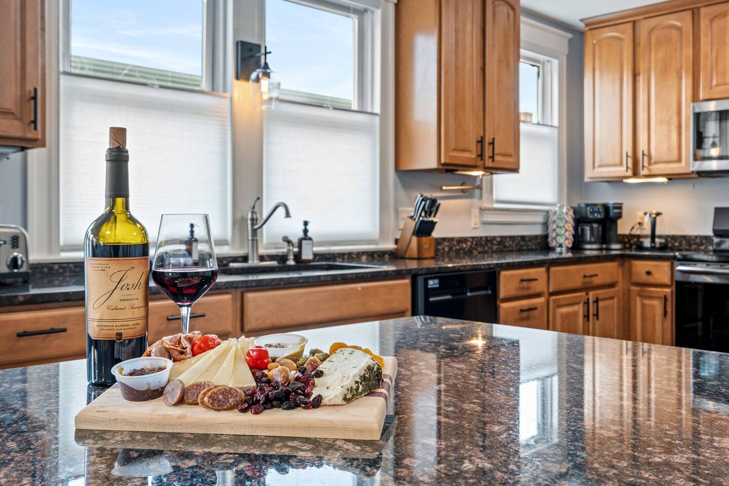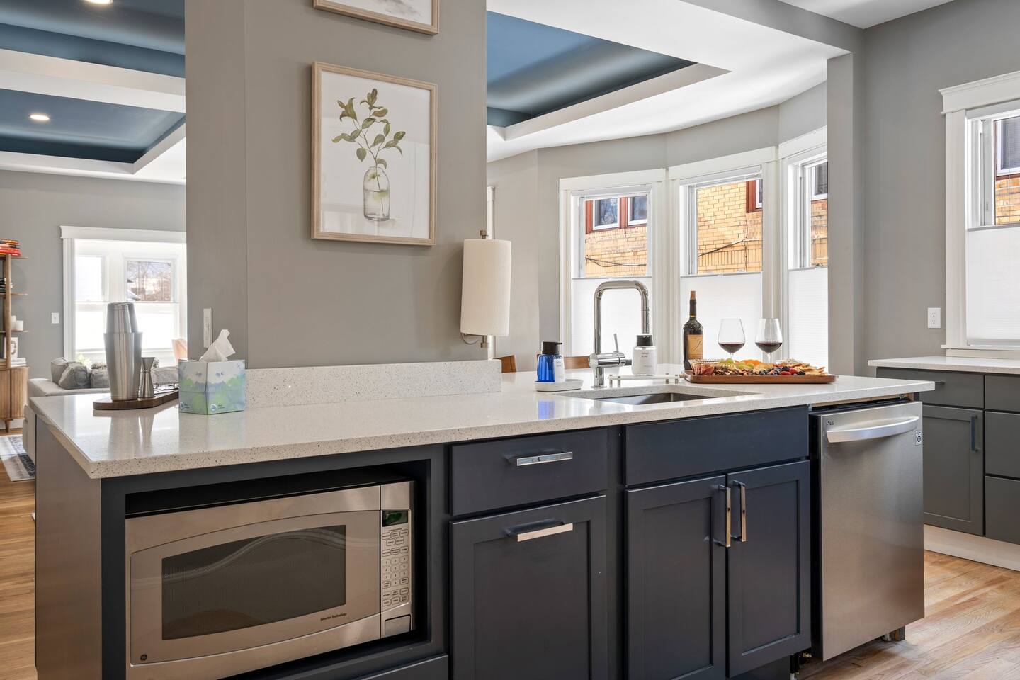 → Sleeps 16 | 6 Bedrooms | Queen Beds → Two sofa beds → Queen Air Mattress for additional guests → 4.5 Bathrooms → Two fully equipped kitchens → Two dining areas + breakfast bar seating → Two living rooms with Smart TVs → Board games & bay window seating → High-speed Wi-Fi → Washer & dryer in both units → Mini-split heating & AC in select bedrooms → High chair for families → Free on-site parking for select vehicles + free street parking nearby → Private balcony ☆☆ BEDROOMS ☆☆ The property features six spacious bedrooms designed as private, tranquil retreats for deep relaxation and privacy. Each room is a customized sanctuary equipped with its own split-system climate control, ensuring every guest can enjoy a personalized temperature for a perfect night's sleep. These quarters are styled with premium linens and a diverse range of high-end aesthetics, varying from serene nautical blue accents to sophisticated wood finishes and modern furniture that creates a boutique atmosphere. Beyond the comfort of the beds, the rooms are filled with thoughtful and stylish details. Guests will find functional touches such as arched gold-framed mirrors, designer rugs, and ambient bedside lighting that adds a warm glow to the space. For added convenience, each room offers ample storage in spacious dressers and nightstands, along with cozy accent chairs that provide the perfect corner for a quiet moment of reading or morning coffee. For additional flexibility, the home also provides a Queen air mattress available for additional guests if needed. ☆☆ BATHROOMS ☆☆ The property features four spa-inspired bathrooms and a convenient half-bath, each blending high-end functionality with sophisticated design. The primary bathrooms offer diverse bathing experiences, ranging from large glass-enclosed showers with custom mosaic tiling to full bathtubs with sliding glass doors. Each space is thoughtfully detailed with premium finishes, including marble vanities, modern integrated LED mirrors, and designer fixtures that range from contemporary chrome to elegant vintage-style brass. To ensure comfort for large groups, the bathrooms are equipped with ample storage and bright, airy layouts enhanced by natural light from strategically placed windows. Stylish touches such as decorative floral artwork, patterned tile flooring, and curated wall lighting create a boutique feel throughout. The addition of a clean, minimalist half-bath with a dedicated vanity provides extra convenience for guests during their stay. ☆☆ KITCHEN & LIVING AREA ☆☆ The home features two fully equipped kitchens and expansive social areas that are naturally bathed in sunshine. Each kitchen is designed with a modern aesthetic, boasting sleek charcoal cabinetry, high-end stainless steel appliances, and large islands that double as breakfast bars. These bright, open spaces flow seamlessly into the dual living rooms, where elegant coffered ceilings and plush sectional seating with two comfortable sofa beds for additional sleeping space are highlighted by the abundant natural light and direct access to a private balcony, extending the living space outdoors and creating an airy, inviting atmosphere. The property offers two distinct dining areas perfectly suited for hosting large groups. The main dining space features a grand wooden table that comfortably seats eight, set under a sophisticated ceiling design that creates a formal yet inviting atmosphere for shared meals. A second, more casual dining area provides additional flexibility, ensuring there is plenty of room for everyone to gather, eat, and socialize without ever feeling crowded. ☆☆ LOCATION ☆☆ Stay close to Portland’s best attractions while enjoying a quiet residential setting. 🎨 Arts District (10 min) – Museums, galleries, cafés, and creative energy. 🎭 State Theatre (10 min) – A historic venue hosting live performances and concerts. 🌊 Old Port & Eastern Promenade (10 min) – Waterfront views, cobblestone streets, shops, and restaurants. 🌳 Payson Park (8 min) – Expansive green space with recreation areas and trails. 🌅 Fort Allen Park (12 min) – Scenic views of Casco Bay and historic landmarks. ☆☆ COMFORT & CONVENIENCE ☆☆ ✔ High-speed Wi-Fi ✔ Smart TV ✔ Books & board games ✔ Hair dryer, fresh linens, and towels provided ✔ Coffee makers (Keurig + drip) ✔ In-unit washer & dryer ✔ Pack ’n Play for families