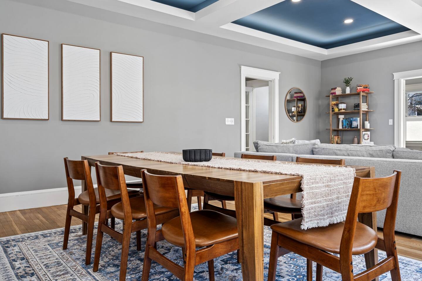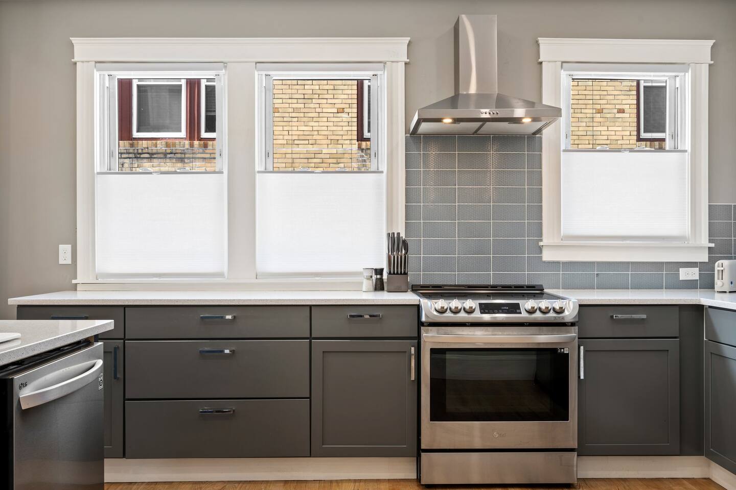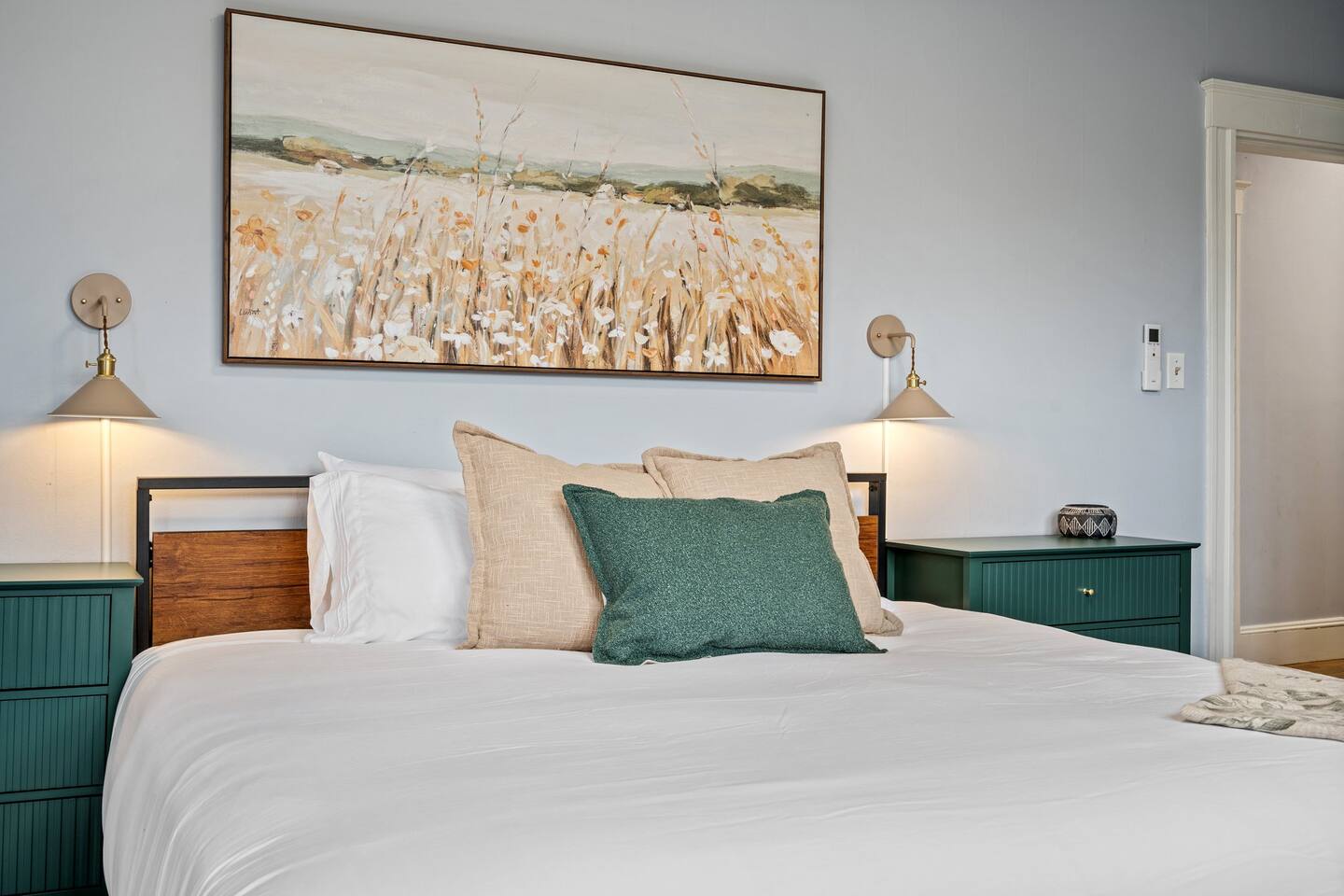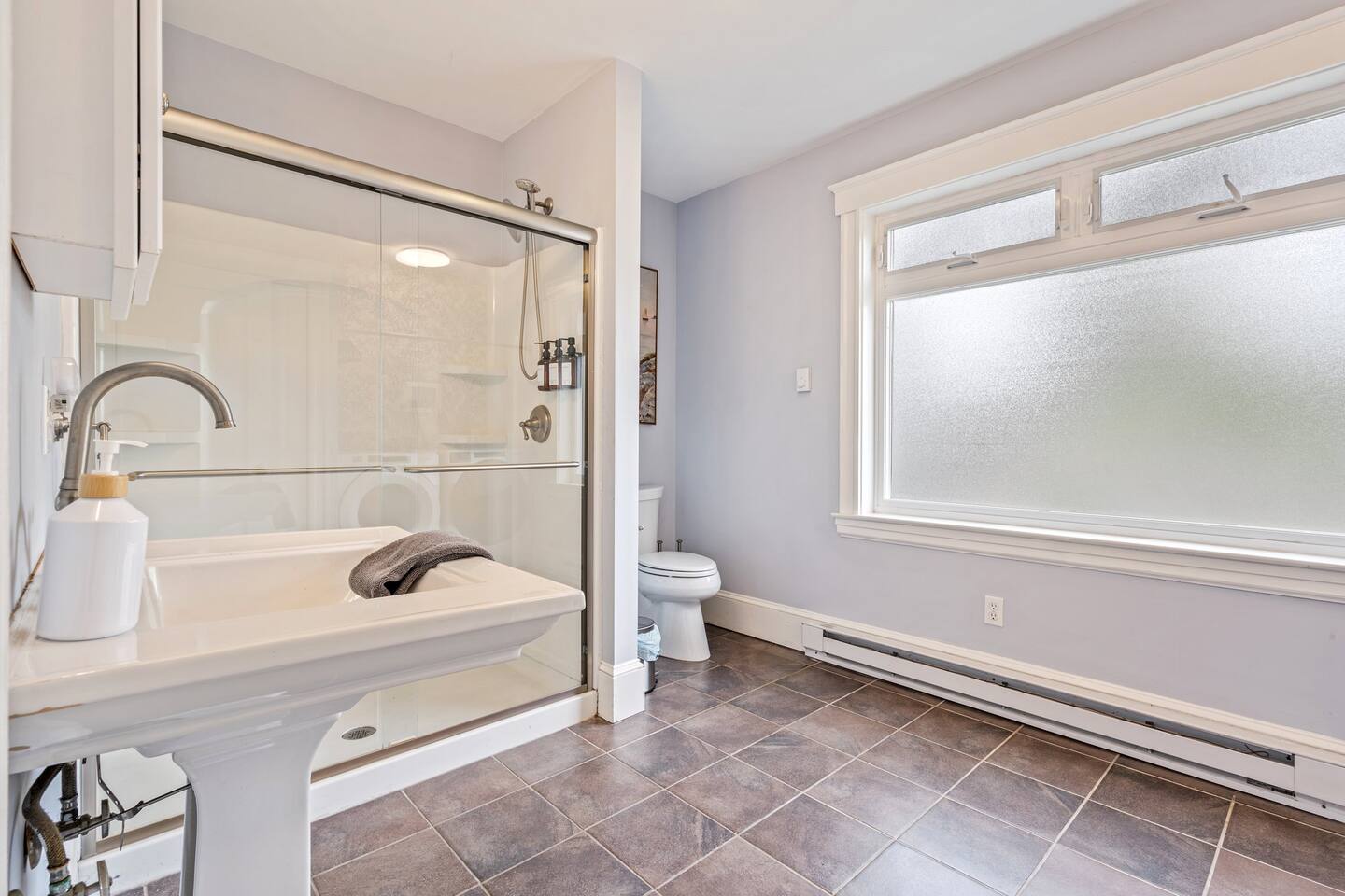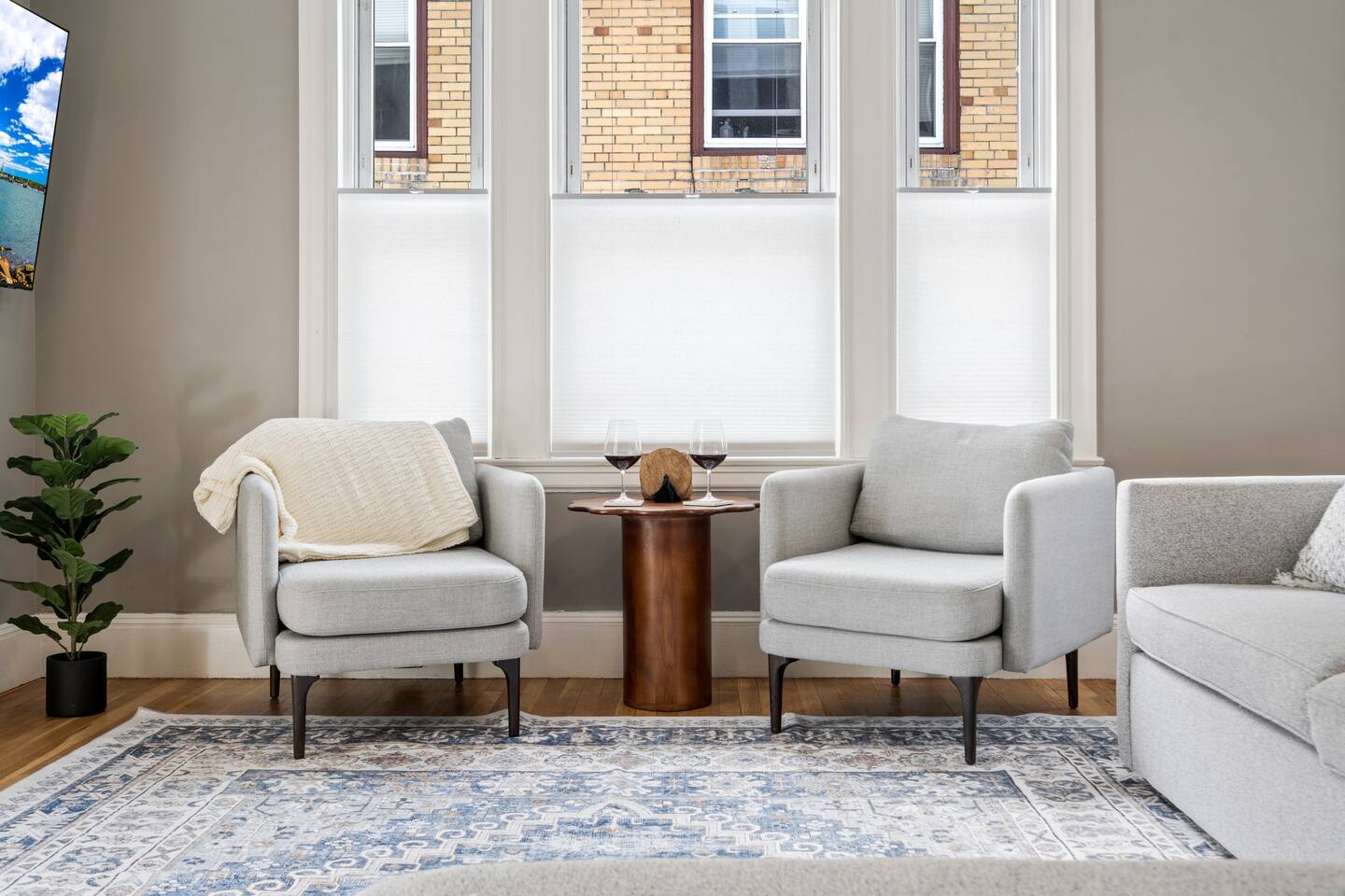 → Sleeps 16 | 6 Bedrooms | Queen Beds → Two sofa beds → Queen Air Mattress for additional guests → 4.5 Bathrooms → Two fully equipped kitchens → Two dining areas + breakfast bar seating → Two living rooms with Smart TVs → Board games & bay window seating → High-speed Wi-Fi → Washer & dryer in both units → Mini-split heating & AC in select bedrooms → High chair for families → Free on-site parking for select vehicles + free street parking nearby → Private balcony ☆☆ BEDROOMS ☆☆ The property features six spacious bedrooms designed as private, tranquil retreats for deep relaxation and privacy. Each room is a customized sanctuary equipped with its own split-system climate control, ensuring every guest can enjoy a personalized temperature for a perfect night's sleep. These quarters are styled with premium linens and a diverse range of high-end aesthetics, varying from serene nautical blue accents to sophisticated wood finishes and modern furniture that creates a boutique atmosphere. Beyond the comfort of the beds, the rooms are filled with thoughtful and stylish details. Guests will find functional touches such as arched gold-framed mirrors, designer rugs, and ambient bedside lighting that adds a warm glow to the space. For added convenience, each room offers ample storage in spacious dressers and nightstands, along with cozy accent chairs that provide the perfect corner for a quiet moment of reading or morning coffee. For additional flexibility, the home also provides a Queen air mattress available for additional guests if needed. ☆☆ BATHROOMS ☆☆ The property features four spa-inspired bathrooms and a convenient half-bath, each blending high-end functionality with sophisticated design. The primary bathrooms offer diverse bathing experiences, ranging from large glass-enclosed showers with custom mosaic tiling to full bathtubs with sliding glass doors. Each space is thoughtfully detailed with premium finishes, including marble vanities, modern integrated LED mirrors, and designer fixtures that range from contemporary chrome to elegant vintage-style brass. To ensure comfort for large groups, the bathrooms are equipped with ample storage and bright, airy layouts enhanced by natural light from strategically placed windows. Stylish touches such as decorative floral artwork, patterned tile flooring, and curated wall lighting create a boutique feel throughout. The addition of a clean, minimalist half-bath with a dedicated vanity provides extra convenience for guests during their stay. ☆☆ KITCHEN & LIVING AREA ☆☆ The home features two fully equipped kitchens and expansive social areas that are naturally bathed in sunshine. Each kitchen is designed with a modern aesthetic, boasting sleek charcoal cabinetry, high-end stainless steel appliances, and large islands that double as breakfast bars. These bright, open spaces flow seamlessly into the dual living rooms, where elegant coffered ceilings and plush sectional seating with two comfortable sofa beds for additional sleeping space are highlighted by the abundant natural light and direct access to a private balcony, extending the living space outdoors and creating an airy, inviting atmosphere. The property offers two distinct dining areas perfectly suited for hosting large groups. The main dining space features a grand wooden table that comfortably seats eight, set under a sophisticated ceiling design that creates a formal yet inviting atmosphere for shared meals. A second, more casual dining area provides additional flexibility, ensuring there is plenty of room for everyone to gather, eat, and socialize without ever feeling crowded. ☆☆ LOCATION ☆☆ Stay close to Portland’s best attractions while enjoying a quiet residential setting. 🎨 Arts District (10 min) – Museums, galleries, cafés, and creative energy. 🎭 State Theatre (10 min) – A historic venue hosting live performances and concerts. 🌊 Old Port & Eastern Promenade (10 min) – Waterfront views, cobblestone streets, shops, and restaurants. 🌳 Payson Park (8 min) – Expansive green space with recreation areas and trails. 🌅 Fort Allen Park (12 min) – Scenic views of Casco Bay and historic landmarks. ☆☆ COMFORT & CONVENIENCE ☆☆ ✔ High-speed Wi-Fi ✔ Smart TV ✔ Books & board games ✔ Hair dryer, fresh linens, and towels provided ✔ Coffee makers (Keurig + drip) ✔ In-unit washer & dryer ✔ Pack ’n Play for families