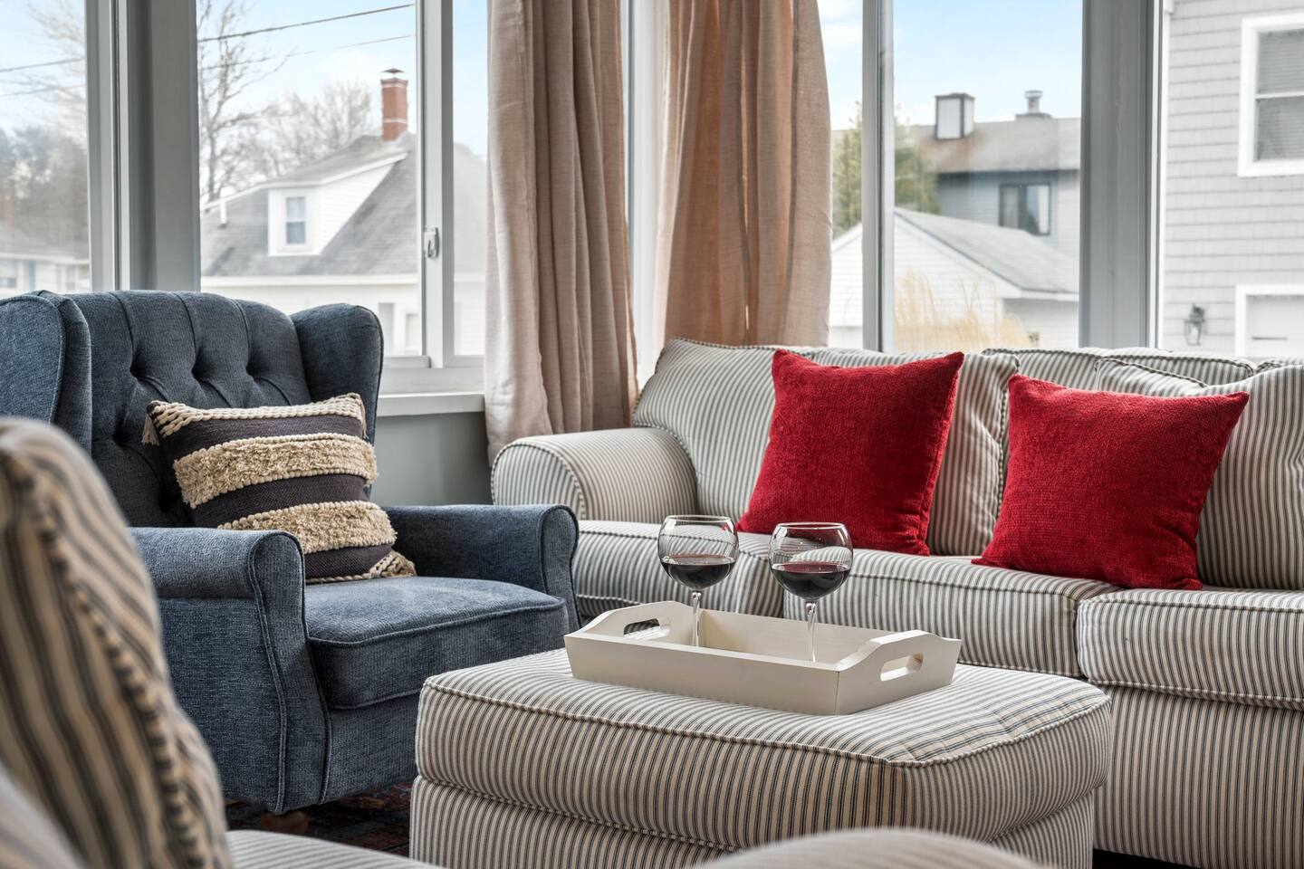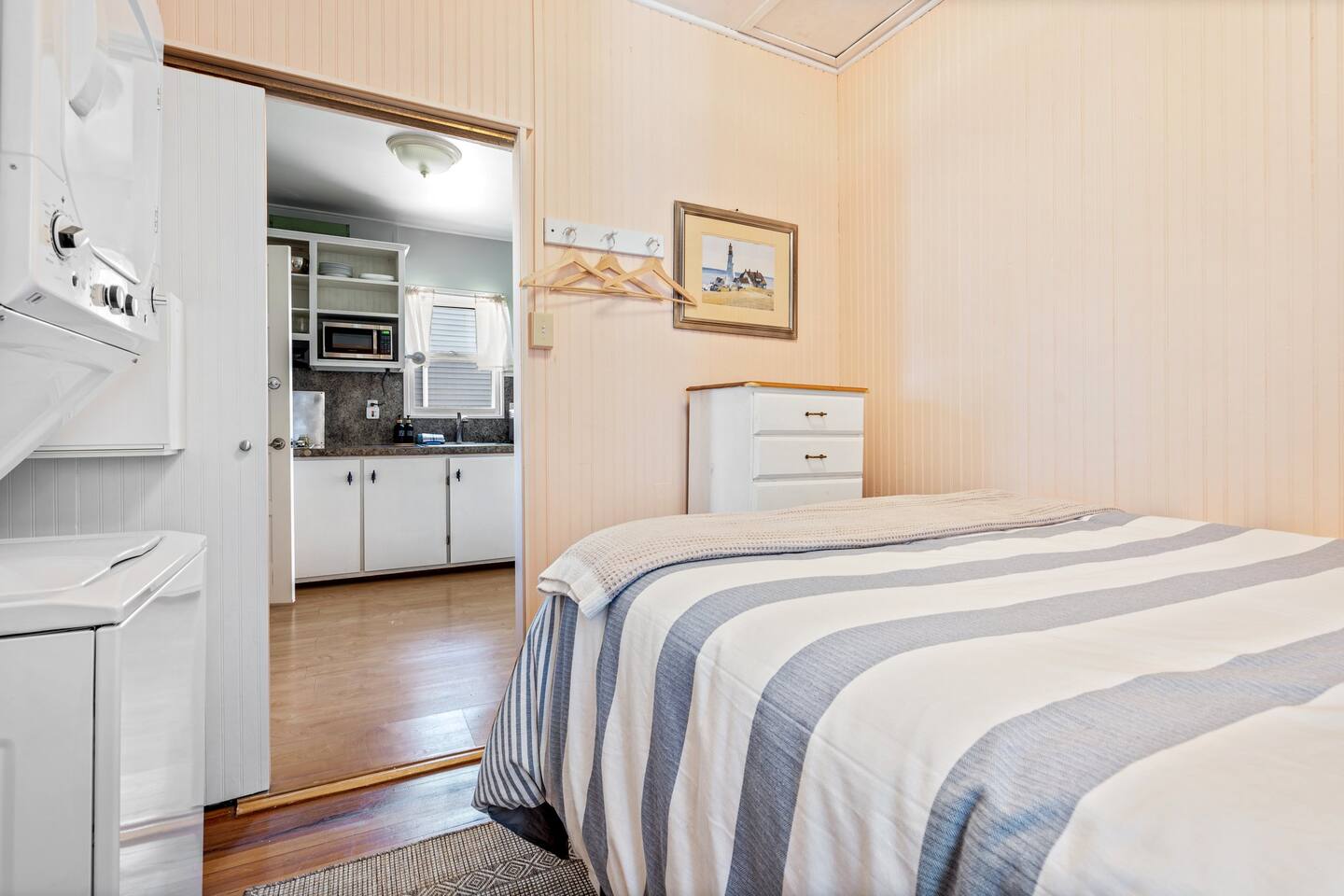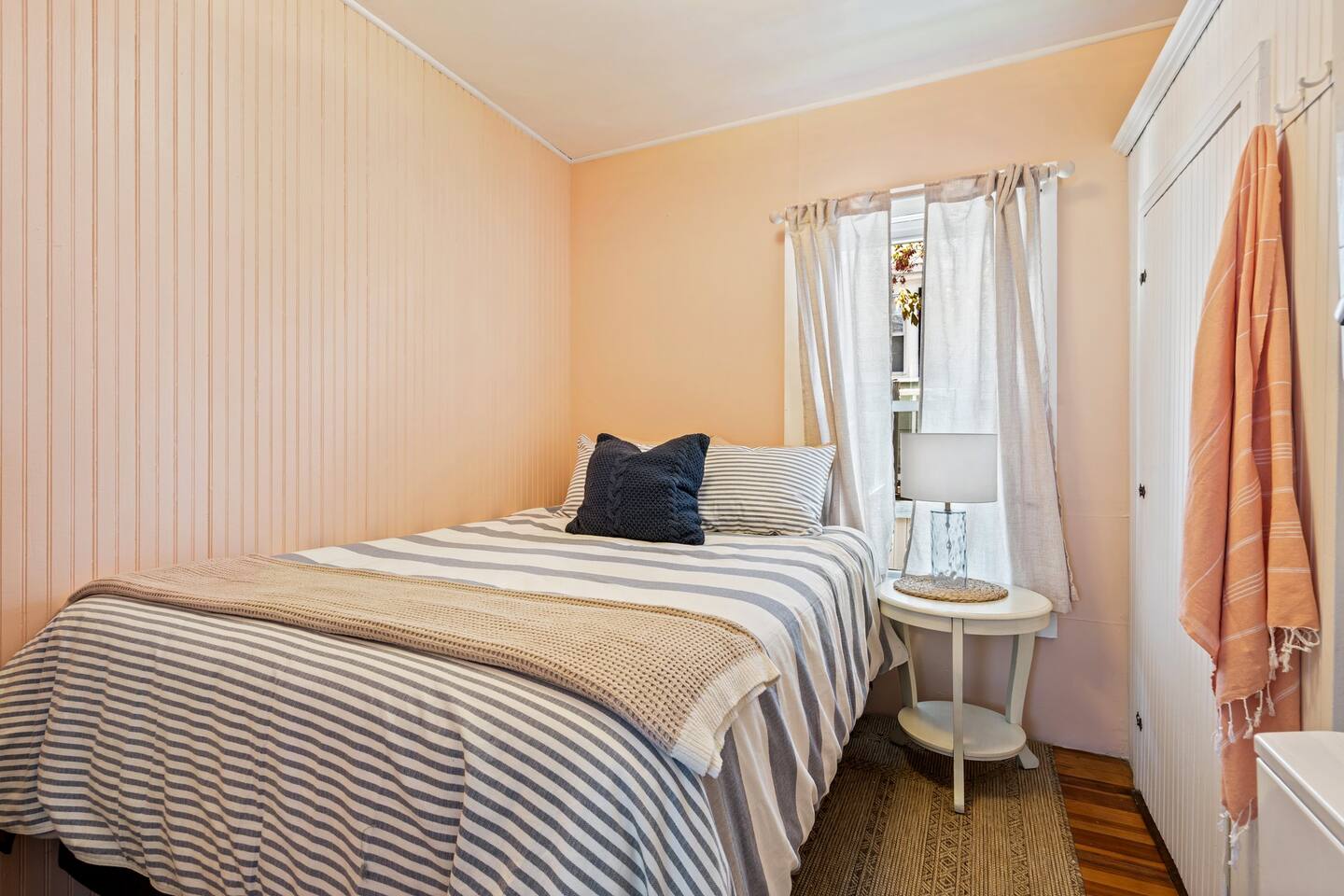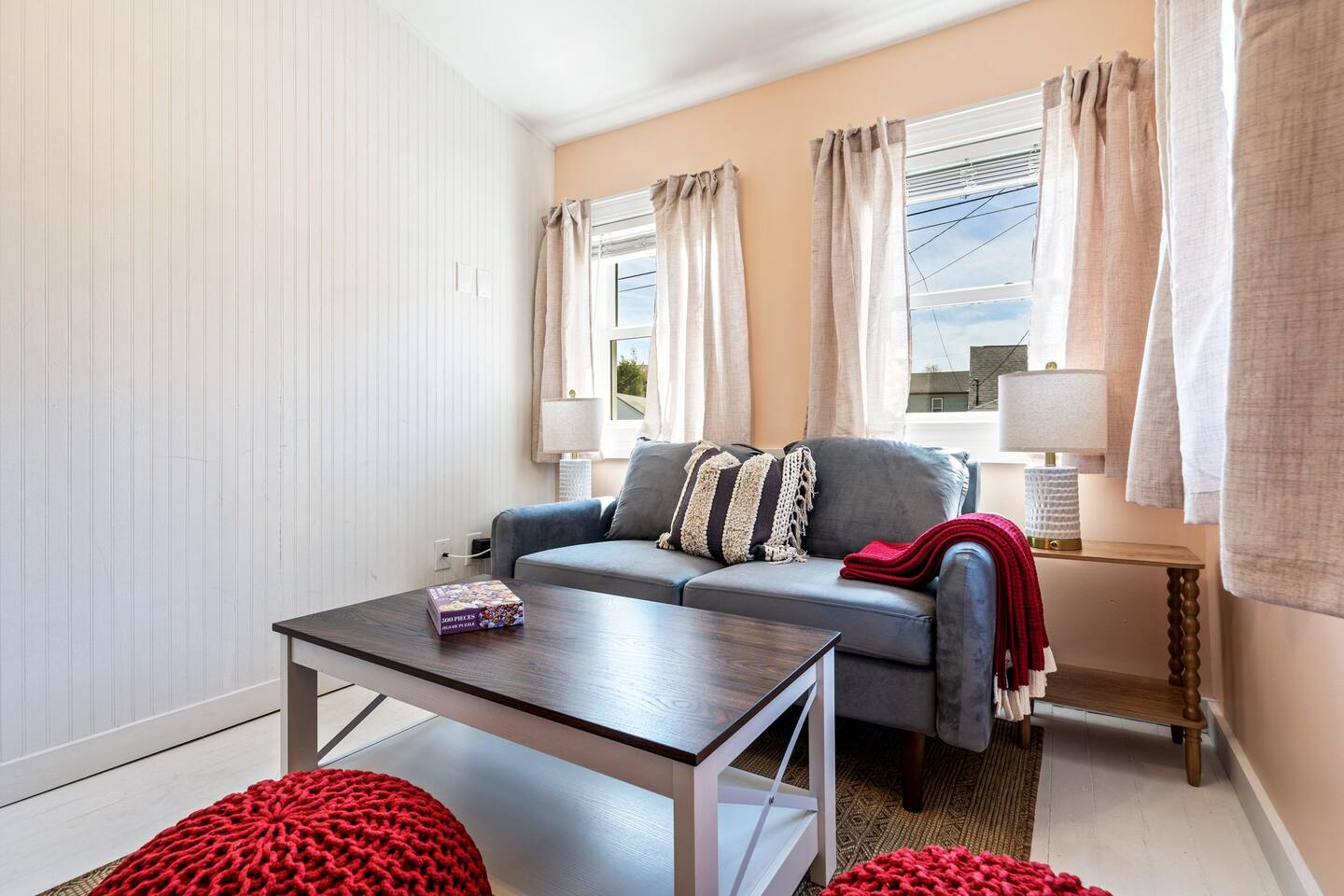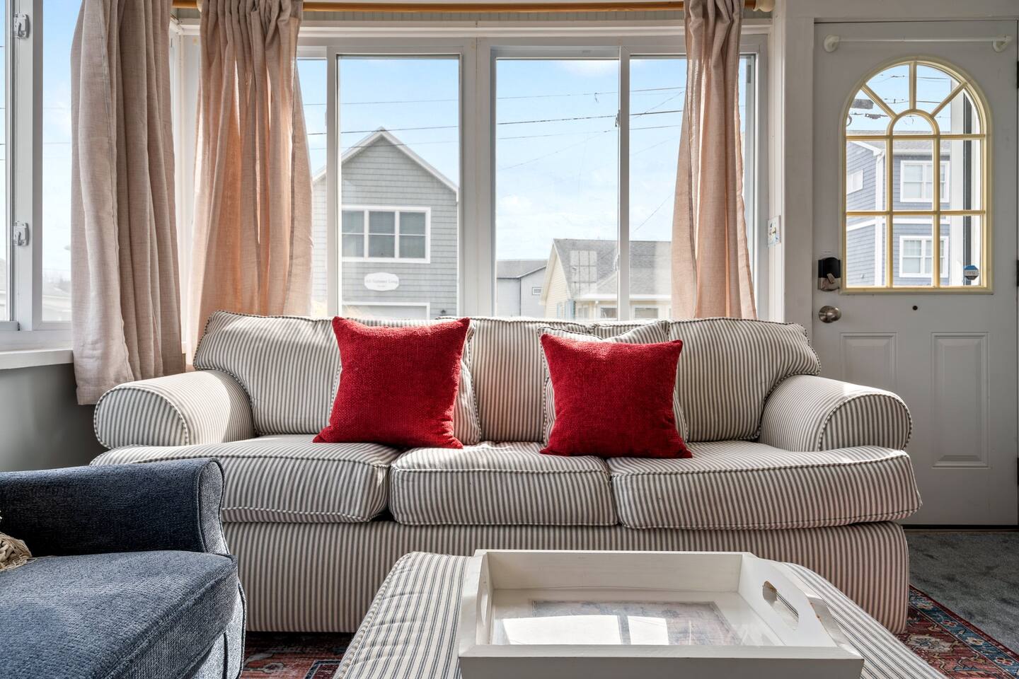 → Sleeps 6. 2 Bedrooms. 2 Queen beds. 1 Queen pull-out → 1 Bathroom with stand-up shower. → Modern and well-equipped kitchen → Wifi with 2 Smart TV’s → Outdoor Shower → Outdoor Dining → Beach Cruiser Bike → Board Games and Books → Dog-Friendly → Ideal location to access many attractions ☆☆ BEDROOMS ☆☆ These newly designed bedrooms are perfect for restful nights and peaceful mornings. The 1st bedroom features a plush queen-sized bed with fresh, modern striped linens, a soft knitted throw, and a bold navy accent pillow; this space blends coastal charm with cozy elegance. Natural light pours through the window dressed in light, airy curtains, giving the room a warm, inviting glow. Tasteful touches like twin bedside lamps, a serene ocean-inspired painting, and soft peach-toned walls create a calming ambiance ideal for relaxation. Settle into the charming and functional 2nd bedroom, designed with comfort and practicality in mind. The room features a plush bed with soft, striped linens and cozy throws—perfect for a restful night's sleep. Sunlight filters through airy curtains, adding a warm glow to the serene space.Enjoy the convenience of a private in-room washer and dryer. Whether you're here to relax or recharge between adventures, this bedroom offers a peaceful retreat in a clean, well-equipped setting. ☆☆ BATHROOM ☆☆ There is one full bathroom, along with an outdoor shower, fully stocked with all the essentials you need for the duration of your stay. The full bathroom offers a stand-up shower and is conveniently located right off of the kitchen. Worry about nothing with this thoughtfully stocked bathroom that provides everything you need and more for your stay at Orchard Peach. ☆☆ KITCHEN & LIVING AREA ☆☆ The bright and airy kitchen is fully equipped with all the appliances, utensils, and cookware you need to feel at home. This thoughtfully-designed home provides a unique eat-in option at a beautiful dining table with bench seating that accommodates all 6 guests. The living area is situated just off of the kitchen and is kitted with an HDTV with a Roku entertainment system, allowing full access to your favorite streaming services. Sink into the plush sofa in the living area, where you can curl up with a good book or simply gaze out the window at the tranquil views. Large windows bathe the space in natural light, allowing you to feel connected to the beauty of the outdoors. Kick back and relax in the vibrant, sun-filled 2nd living area designed for comfort and entertainment. Featuring a plush gray sofa, playful red knit poufs, and a sleek coffee table—this cozy space invites you to unwind in style. Natural light pours through multiple windows, brightening the soft peach walls and adding warmth to every corner. Enjoy movie nights or stream your favorite shows on the Roku Smart TV, and take advantage of the ample seating and calming atmosphere. Whether you're sipping morning coffee, diving into a puzzle, or winding down after a day out, this charming living room is the perfect place to make yourself at home. ☆☆ OUTSIDE SPACE ☆☆ The exterior area of this home has a gorgeous yard and ample privacy. Friends and family can wash off the sand and sea in the private outdoor shower. The back deck is the perfect summer gathering area with an outdoor dining option. Sit back and relax while a meal is prepared on the BBQ. After dinner, cozy up on the beautiful outdoor furniture and gaze at the stars. This is the perfect spot to make memories that will last forever. ★☆ Book Now & Let Us Take Care Of You in Old Orchard Beach!☆★