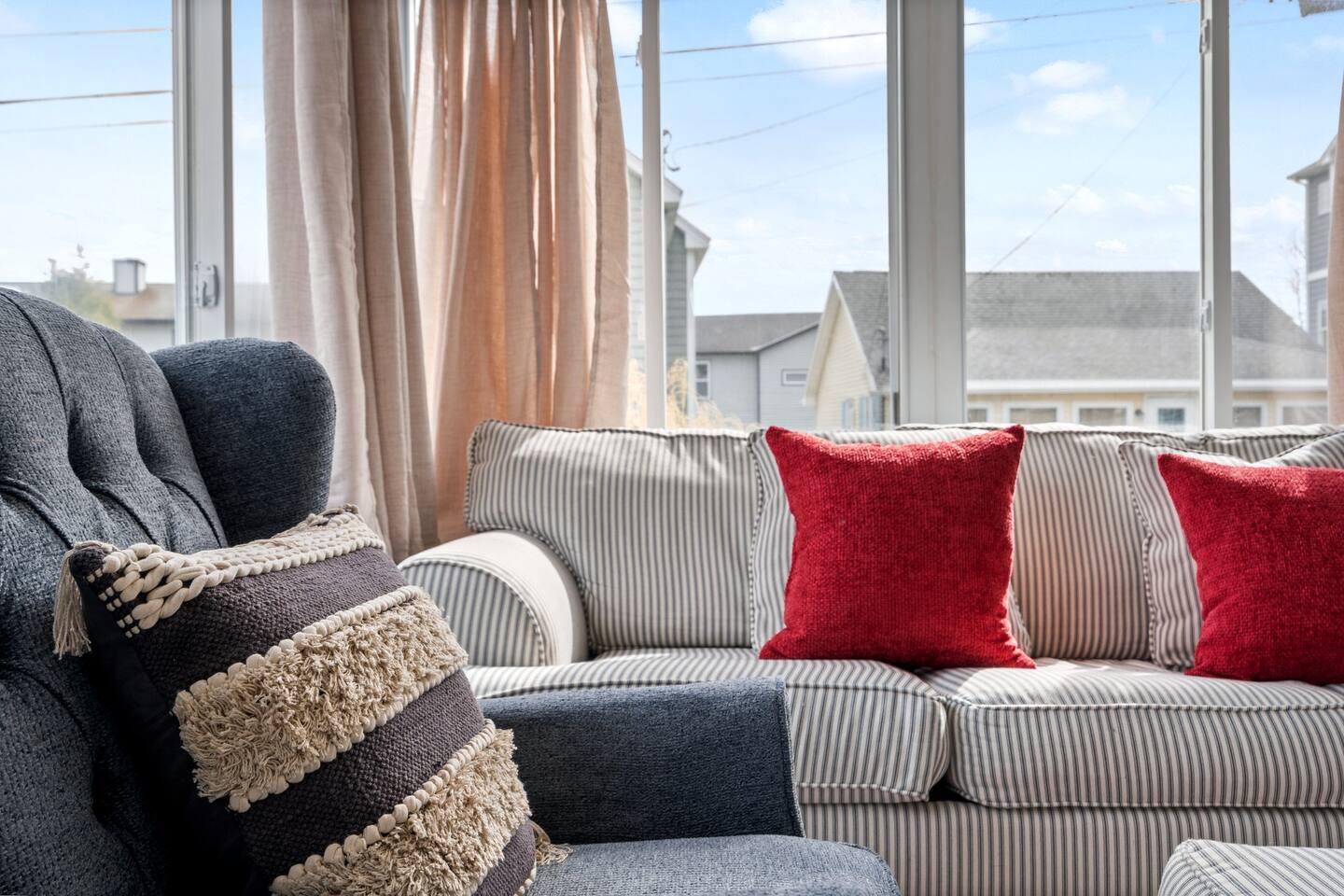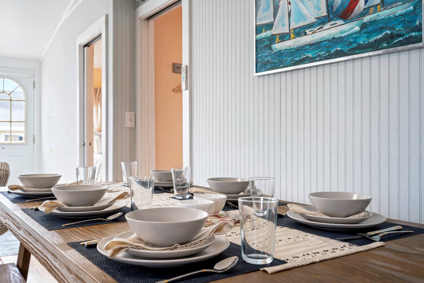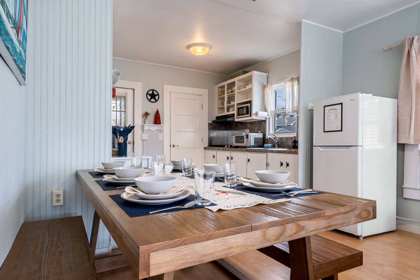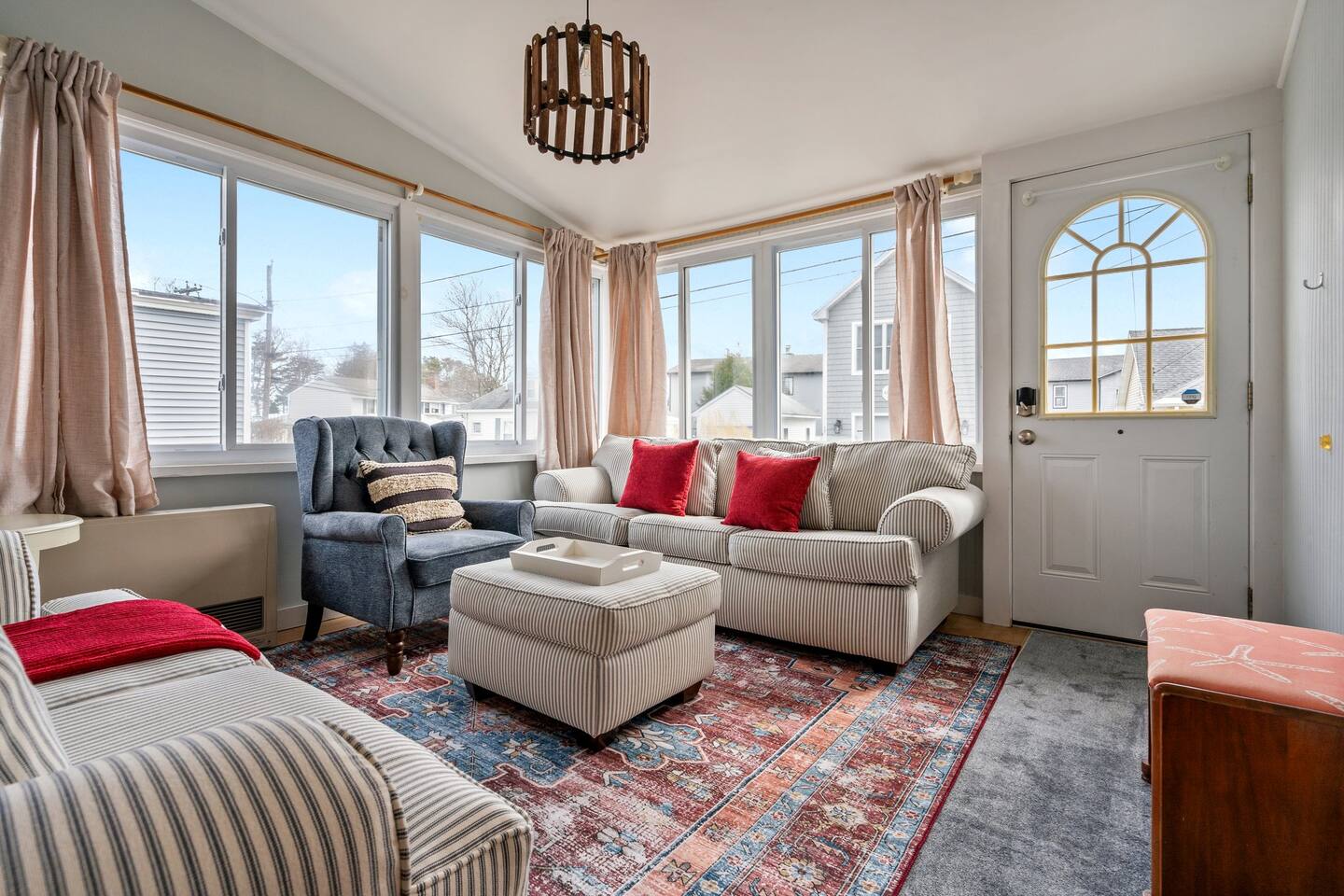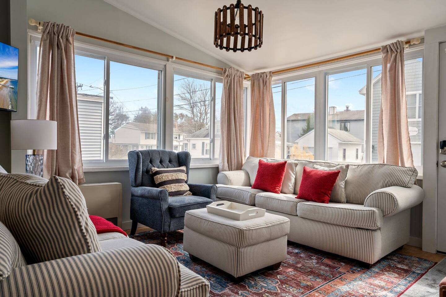 → Sleeps 6. 2 Bedrooms. 2 Queen beds. 1 Queen pull-out → 1 Bathroom with stand-up shower. → Modern and well-equipped kitchen → Wifi with 2 Smart TV’s → Outdoor Shower → Outdoor Dining → Beach Cruiser Bike → Board Games and Books → Dog-Friendly → Ideal location to access many attractions ☆☆ BEDROOMS ☆☆ These newly designed bedrooms are perfect for restful nights and peaceful mornings. The 1st bedroom features a plush queen-sized bed with fresh, modern striped linens, a soft knitted throw, and a bold navy accent pillow; this space blends coastal charm with cozy elegance. Natural light pours through the window dressed in light, airy curtains, giving the room a warm, inviting glow. Tasteful touches like twin bedside lamps, a serene ocean-inspired painting, and soft peach-toned walls create a calming ambiance ideal for relaxation. Settle into the charming and functional 2nd bedroom, designed with comfort and practicality in mind. The room features a plush bed with soft, striped linens and cozy throws—perfect for a restful night's sleep. Sunlight filters through airy curtains, adding a warm glow to the serene space.Enjoy the convenience of a private in-room washer and dryer. Whether you're here to relax or recharge between adventures, this bedroom offers a peaceful retreat in a clean, well-equipped setting. ☆☆ BATHROOM ☆☆ There is one full bathroom, along with an outdoor shower, fully stocked with all the essentials you need for the duration of your stay. The full bathroom offers a stand-up shower and is conveniently located right off of the kitchen. Worry about nothing with this thoughtfully stocked bathroom that provides everything you need and more for your stay at Orchard Peach. ☆☆ KITCHEN & LIVING AREA ☆☆ The bright and airy kitchen is fully equipped with all the appliances, utensils, and cookware you need to feel at home. This thoughtfully-designed home provides a unique eat-in option at a beautiful dining table with bench seating that accommodates all 6 guests. The living area is situated just off of the kitchen and is kitted with an HDTV with a Roku entertainment system, allowing full access to your favorite streaming services. Sink into the plush sofa in the living area, where you can curl up with a good book or simply gaze out the window at the tranquil views. Large windows bathe the space in natural light, allowing you to feel connected to the beauty of the outdoors. Kick back and relax in the vibrant, sun-filled 2nd living area designed for comfort and entertainment. Featuring a plush gray sofa, playful red knit poufs, and a sleek coffee table—this cozy space invites you to unwind in style. Natural light pours through multiple windows, brightening the soft peach walls and adding warmth to every corner. Enjoy movie nights or stream your favorite shows on the Roku Smart TV, and take advantage of the ample seating and calming atmosphere. Whether you're sipping morning coffee, diving into a puzzle, or winding down after a day out, this charming living room is the perfect place to make yourself at home. ☆☆ OUTSIDE SPACE ☆☆ The exterior area of this home has a gorgeous yard and ample privacy. Friends and family can wash off the sand and sea in the private outdoor shower. The back deck is the perfect summer gathering area with an outdoor dining option. Sit back and relax while a meal is prepared on the BBQ. After dinner, cozy up on the beautiful outdoor furniture and gaze at the stars. This is the perfect spot to make memories that will last forever. ★☆ Book Now & Let Us Take Care Of You in Old Orchard Beach!☆★