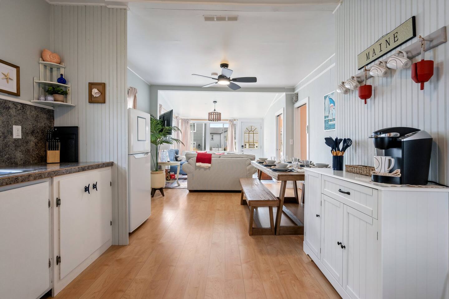 Guests staying at Orchard Peach have exclusive access to numerous amenities. Take time to soak in the sun from the private patio and use the outdoor shower, bike, and games at your leisure. There are 2 HDTVs in the home, along with an entertainment system powered by Roku. Orchard Peach offers a prime location in Old Orchard Beach and is just minutes from many of Maine's most sought after coastal attractions The home is fitted with a smart door lock, an exterior ring camera, and free parking for vehicles is available on the premises.