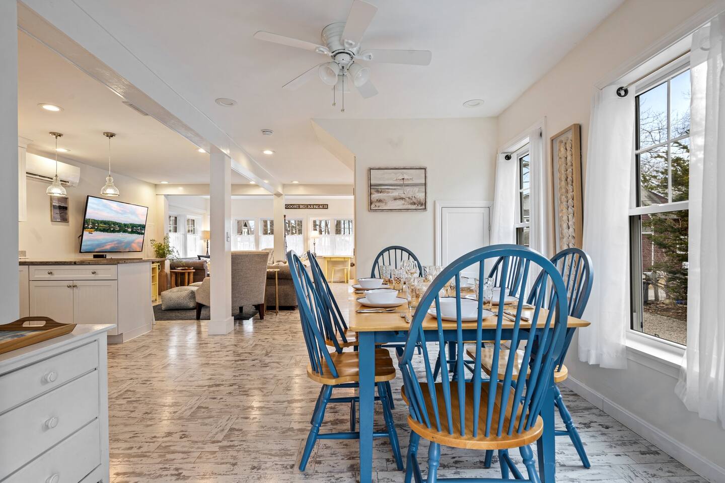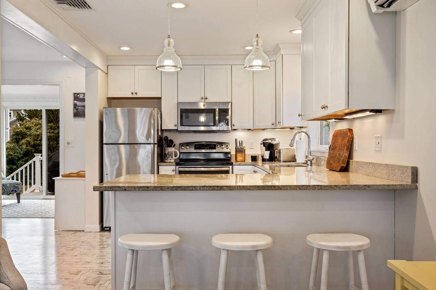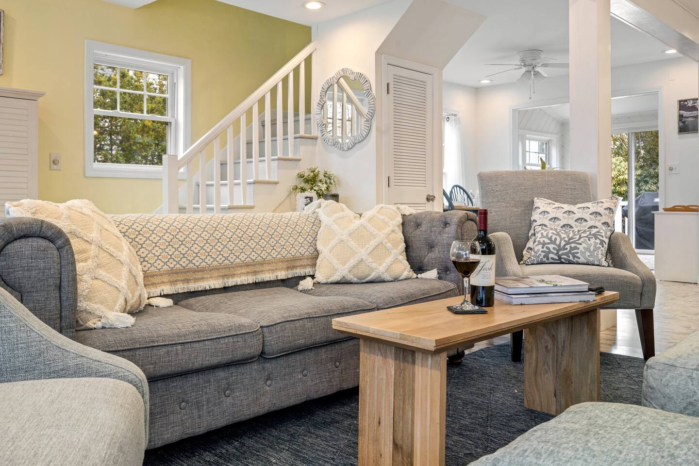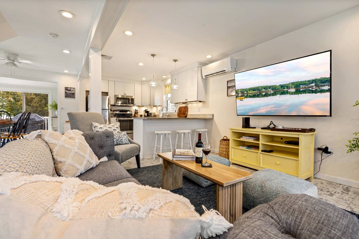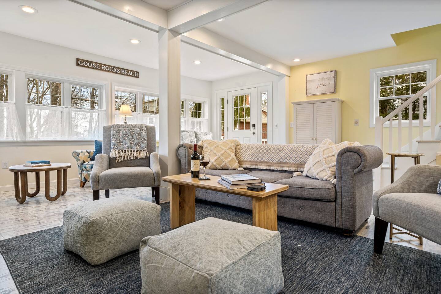 → Sleeps 8. 4 Bedrooms. 2 Queens. 4 twins on 2nd level. → 1.5 Bathrooms. Shower/tub combo on the main level. → Well-equipped and modern kitchen → Wifi and Smart TV → Steps to Goose Rocks Beach → Outdoor Shower → Board Games and Books → Private Backyard → Ideal location to access many attractions ☆☆ BEDROOMS ☆☆ This gorgeous retreat accommodates 8 guests in 4 bedrooms. All 4 bedrooms are located on the 2nd level. Two of the four beautifully designed bedrooms are fitted with plush queen beds and desirable beach decor. The two additional bedrooms offer a cozy retreat for 4 additional guests in 4 twin beds. Open the windows to smell the fresh salt air as the waves break on Goose Rocks Beach. ☆☆ BATHROOMS ☆☆ Saltaire offers 1.5 bathrooms, each of them stocked with all the essentials you need for the duration of your stay. The 1st level hosts a full bathroom with a combination shower and tub. It is conveniently located just steps from the kitchen and is easily accessible for the guests on the 1st level. The half bathroom on the 2nd level is well equipped and is conveniently located just steps from all 4 bedrooms. Worry about nothing with these thoughtfully stocked bathrooms that provide everything you need and more. ☆☆ KITCHEN & LIVING AREA ☆☆ The bright and airy kitchen is fully equipped with all the appliances, utensils and cookware you need to feel at home. This thoughtfully-designed home provides eat-in dining for 8 guests at a gorgeous wooden table. Relax and unwind in our bright and sunny living room, designed for comfort and connection. The space features cozy seating arranged around a large Smart TV—perfect for movie nights or streaming your favorite shows. A sun-drenched seating nook offers the ideal spot for your morning coffee, reading one of the provided books, or enjoying a quiet moment. For added fun, you’ll also find a selection of games and books to keep everyone entertained. The open-concept layout flows seamlessly into the kitchen, making it easy to stay connected whether you're cooking, lounging, or sharing a meal. With plenty of natural light and welcoming touches throughout, this living room is the heart of the home. ☆☆ OUTSIDE SPACE ☆☆ The exterior area of this home has a gorgeous yard and ample privacy. Friends and family can wash off the sand and sea in the private outdoor shower. The back deck is the perfect summer gathering area with an outdoor dining option. Sit back and relax while a meal is prepared on the BBQ. After dinner, cozy up in the beautiful outdoor furniture and watch the enchanting sunset. This is the perfect spot to make memories that will last forever. ★☆ Book Today & Let Us Take Care Of You in Kennebunkport! ☆★
