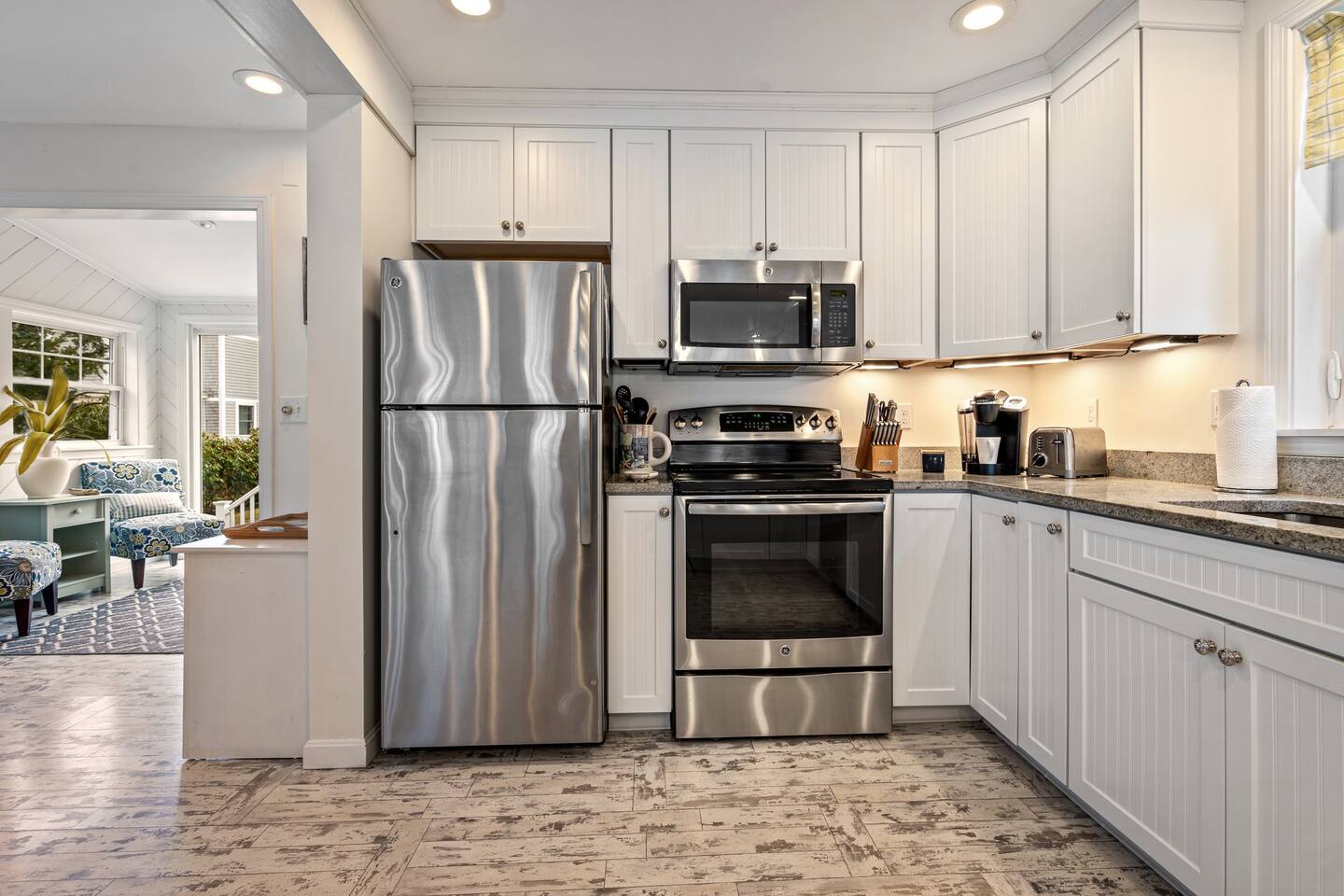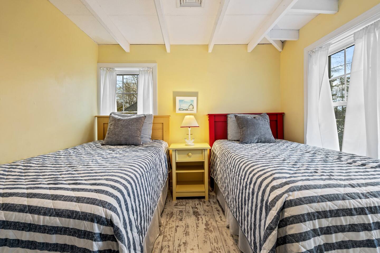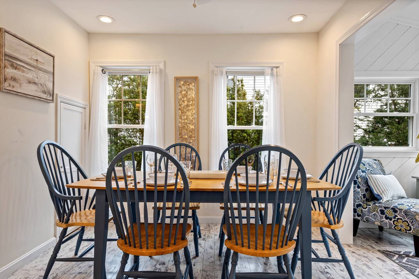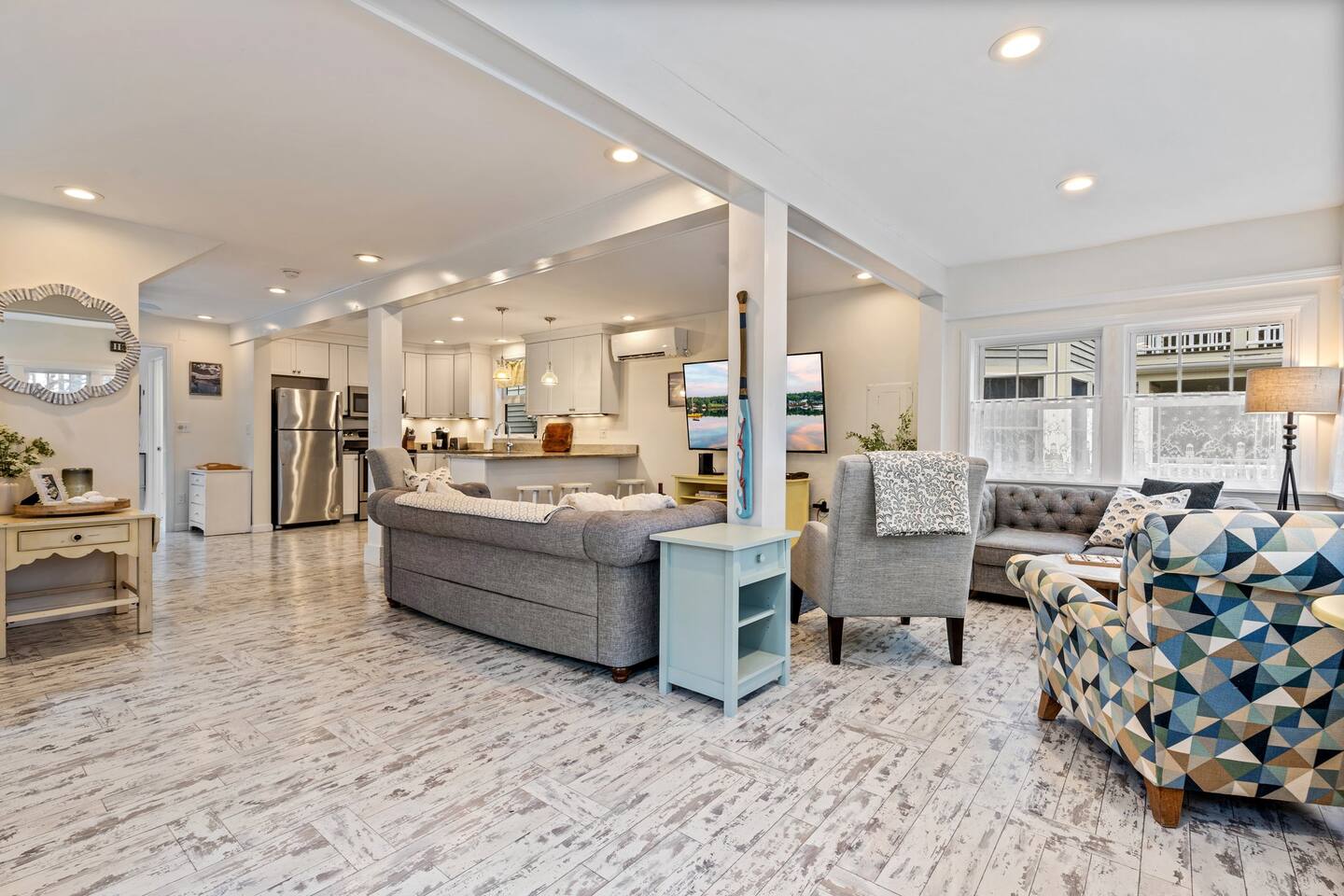 → Sleeps 8. 4 Bedrooms. 2 Queens. 4 twins on 2nd level. → 1.5 Bathrooms. Shower/tub combo on the main level. → Well-equipped and modern kitchen → Wifi and Smart TV → Steps to Goose Rocks Beach → Outdoor Shower → Board Games and Books → Private Backyard → Ideal location to access many attractions ☆☆ BEDROOMS ☆☆ This gorgeous retreat accommodates 8 guests in 4 bedrooms. All 4 bedrooms are located on the 2nd level. Two of the four beautifully designed bedrooms are fitted with plush queen beds and desirable beach decor. The two additional bedrooms offer a cozy retreat for 4 additional guests in 4 twin beds. Open the windows to smell the fresh salt air as the waves break on Goose Rocks Beach. ☆☆ BATHROOMS ☆☆ Saltaire offers 1.5 bathrooms, each of them stocked with all the essentials you need for the duration of your stay. The 1st level hosts a full bathroom with a combination shower and tub. It is conveniently located just steps from the kitchen and is easily accessible for the guests on the 1st level. The half bathroom on the 2nd level is well equipped and is conveniently located just steps from all 4 bedrooms. Worry about nothing with these thoughtfully stocked bathrooms that provide everything you need and more. ☆☆ KITCHEN & LIVING AREA ☆☆ The bright and airy kitchen is fully equipped with all the appliances, utensils and cookware you need to feel at home. This thoughtfully-designed home provides eat-in dining for 8 guests at a gorgeous wooden table. Relax and unwind in our bright and sunny living room, designed for comfort and connection. The space features cozy seating arranged around a large Smart TV—perfect for movie nights or streaming your favorite shows. A sun-drenched seating nook offers the ideal spot for your morning coffee, reading one of the provided books, or enjoying a quiet moment. For added fun, you’ll also find a selection of games and books to keep everyone entertained. The open-concept layout flows seamlessly into the kitchen, making it easy to stay connected whether you're cooking, lounging, or sharing a meal. With plenty of natural light and welcoming touches throughout, this living room is the heart of the home. ☆☆ OUTSIDE SPACE ☆☆ The exterior area of this home has a gorgeous yard and ample privacy. Friends and family can wash off the sand and sea in the private outdoor shower. The back deck is the perfect summer gathering area with an outdoor dining option. Sit back and relax while a meal is prepared on the BBQ. After dinner, cozy up in the beautiful outdoor furniture and watch the enchanting sunset. This is the perfect spot to make memories that will last forever. ★☆ Book Today & Let Us Take Care Of You in Kennebunkport! ☆★