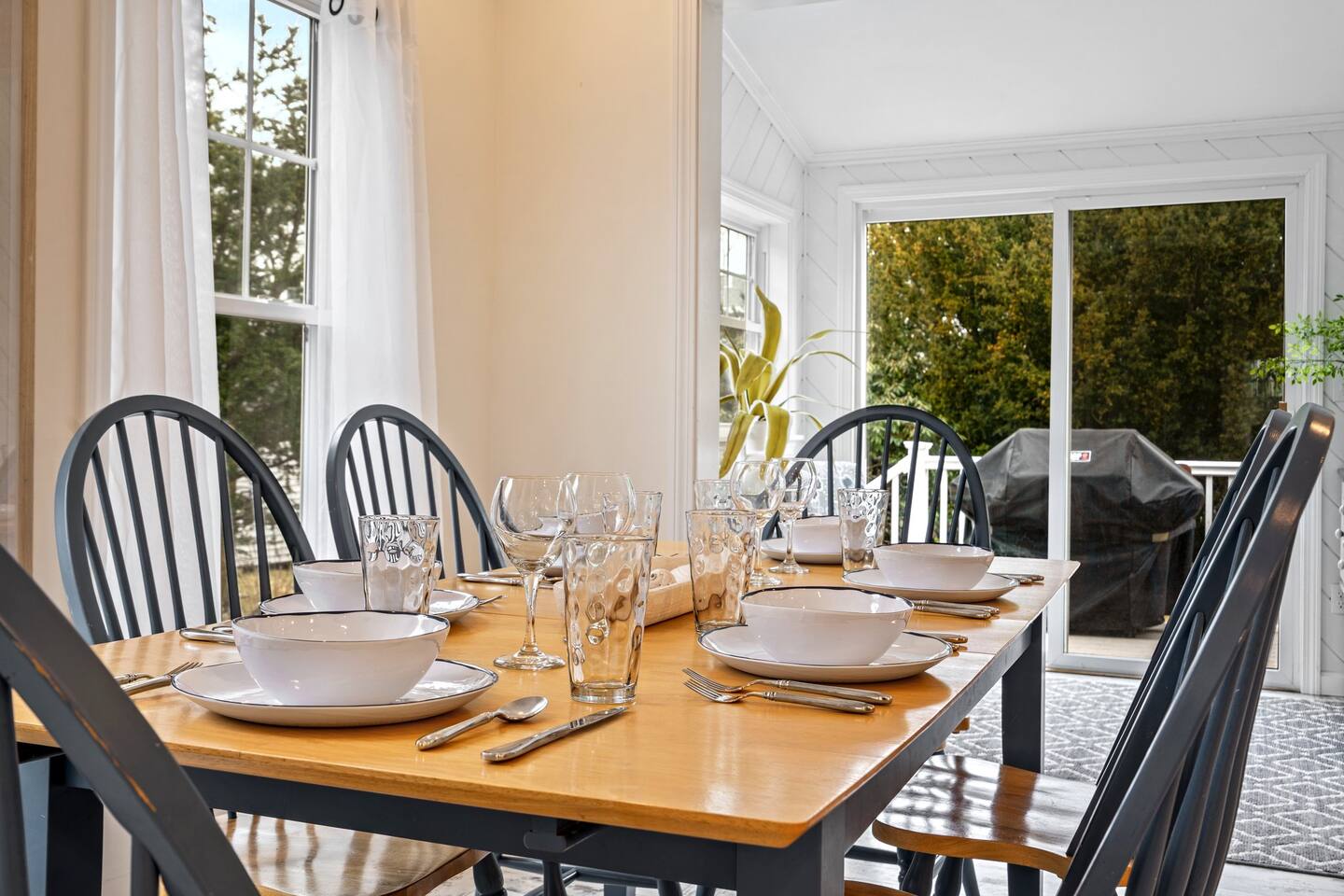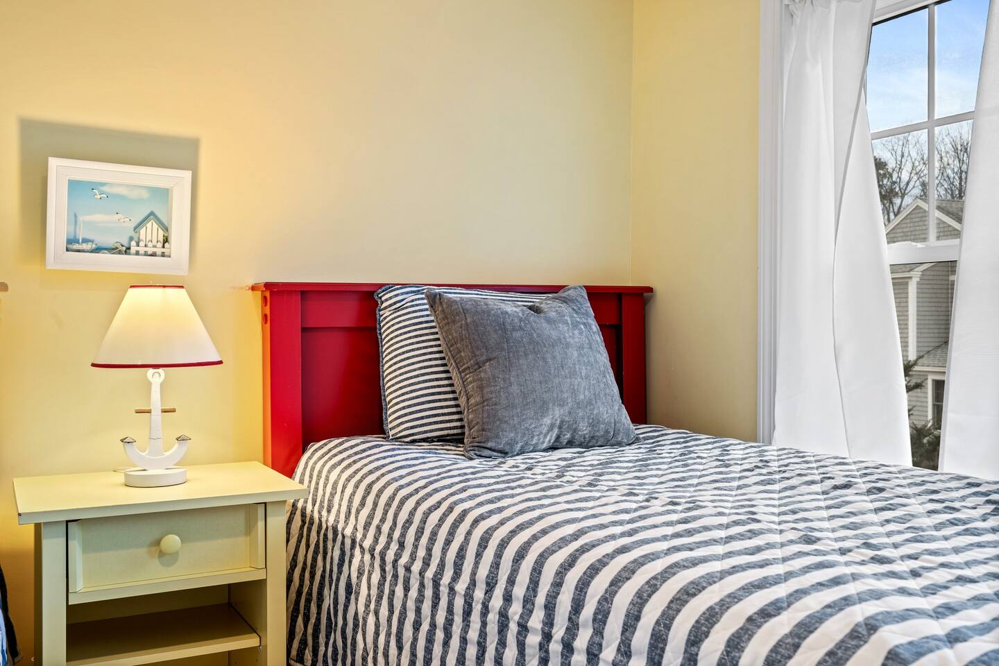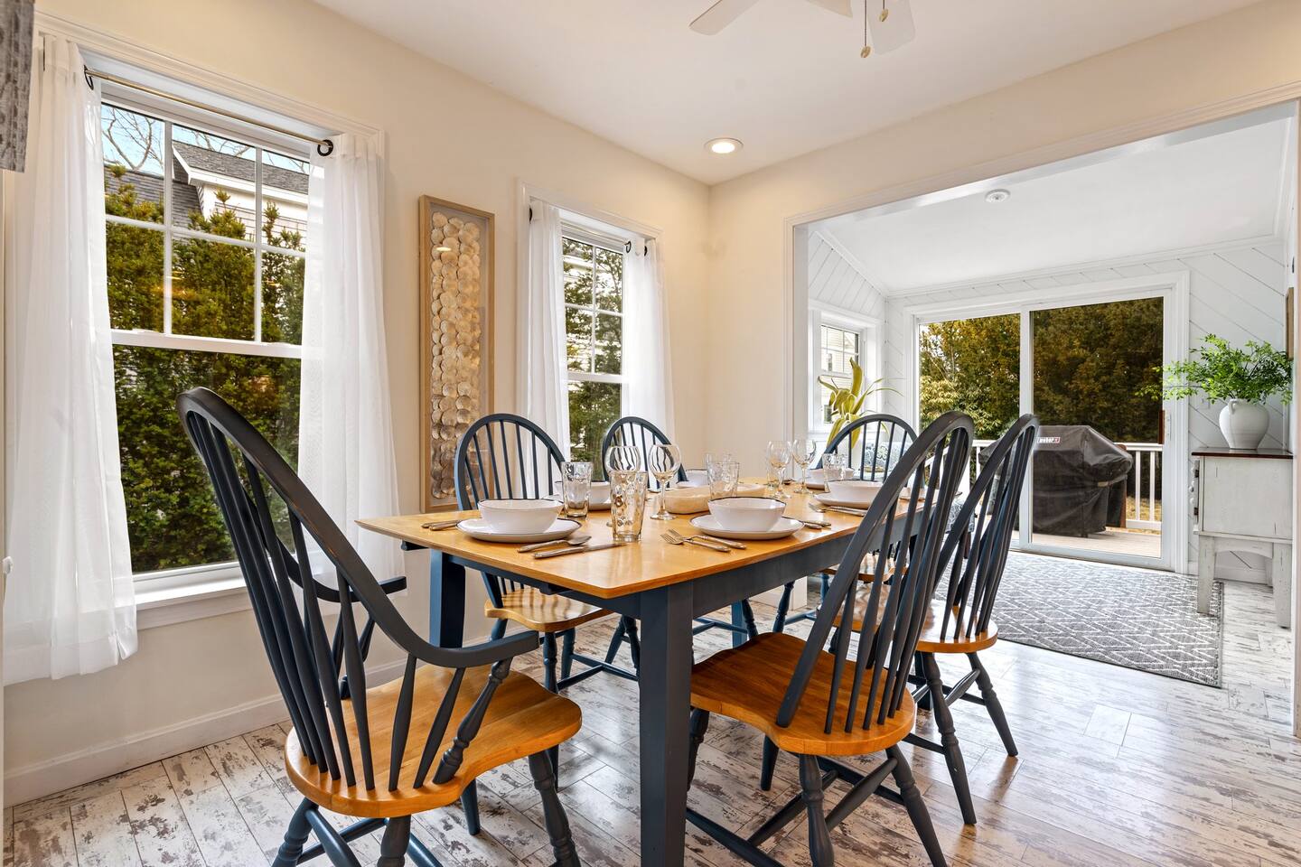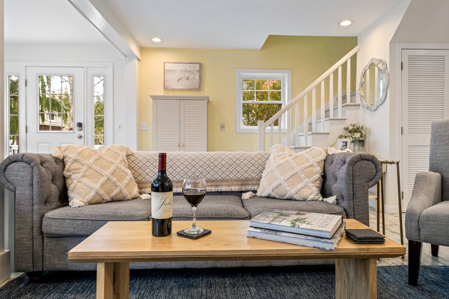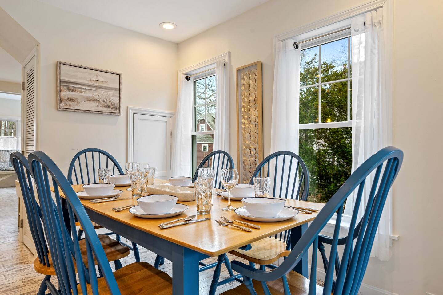 → Sleeps 8. 4 Bedrooms. 2 Queens. 4 twins on 2nd level. → 1.5 Bathrooms. Shower/tub combo on the main level. → Well-equipped and modern kitchen → Wifi and Smart TV → Steps to Goose Rocks Beach → Outdoor Shower → Board Games and Books → Private Backyard → Ideal location to access many attractions ☆☆ BEDROOMS ☆☆ This gorgeous retreat accommodates 8 guests in 4 bedrooms. All 4 bedrooms are located on the 2nd level. Two of the four beautifully designed bedrooms are fitted with plush queen beds and desirable beach decor. The two additional bedrooms offer a cozy retreat for 4 additional guests in 4 twin beds. Open the windows to smell the fresh salt air as the waves break on Goose Rocks Beach. ☆☆ BATHROOMS ☆☆ Saltaire offers 1.5 bathrooms, each of them stocked with all the essentials you need for the duration of your stay. The 1st level hosts a full bathroom with a combination shower and tub. It is conveniently located just steps from the kitchen and is easily accessible for the guests on the 1st level. The half bathroom on the 2nd level is well equipped and is conveniently located just steps from all 4 bedrooms. Worry about nothing with these thoughtfully stocked bathrooms that provide everything you need and more. ☆☆ KITCHEN & LIVING AREA ☆☆ The bright and airy kitchen is fully equipped with all the appliances, utensils and cookware you need to feel at home. This thoughtfully-designed home provides eat-in dining for 8 guests at a gorgeous wooden table. Relax and unwind in our bright and sunny living room, designed for comfort and connection. The space features cozy seating arranged around a large Smart TV—perfect for movie nights or streaming your favorite shows. A sun-drenched seating nook offers the ideal spot for your morning coffee, reading one of the provided books, or enjoying a quiet moment. For added fun, you’ll also find a selection of games and books to keep everyone entertained. The open-concept layout flows seamlessly into the kitchen, making it easy to stay connected whether you're cooking, lounging, or sharing a meal. With plenty of natural light and welcoming touches throughout, this living room is the heart of the home. ☆☆ OUTSIDE SPACE ☆☆ The exterior area of this home has a gorgeous yard and ample privacy. Friends and family can wash off the sand and sea in the private outdoor shower. The back deck is the perfect summer gathering area with an outdoor dining option. Sit back and relax while a meal is prepared on the BBQ. After dinner, cozy up in the beautiful outdoor furniture and watch the enchanting sunset. This is the perfect spot to make memories that will last forever. ★☆ Book Today & Let Us Take Care Of You in Kennebunkport! ☆★