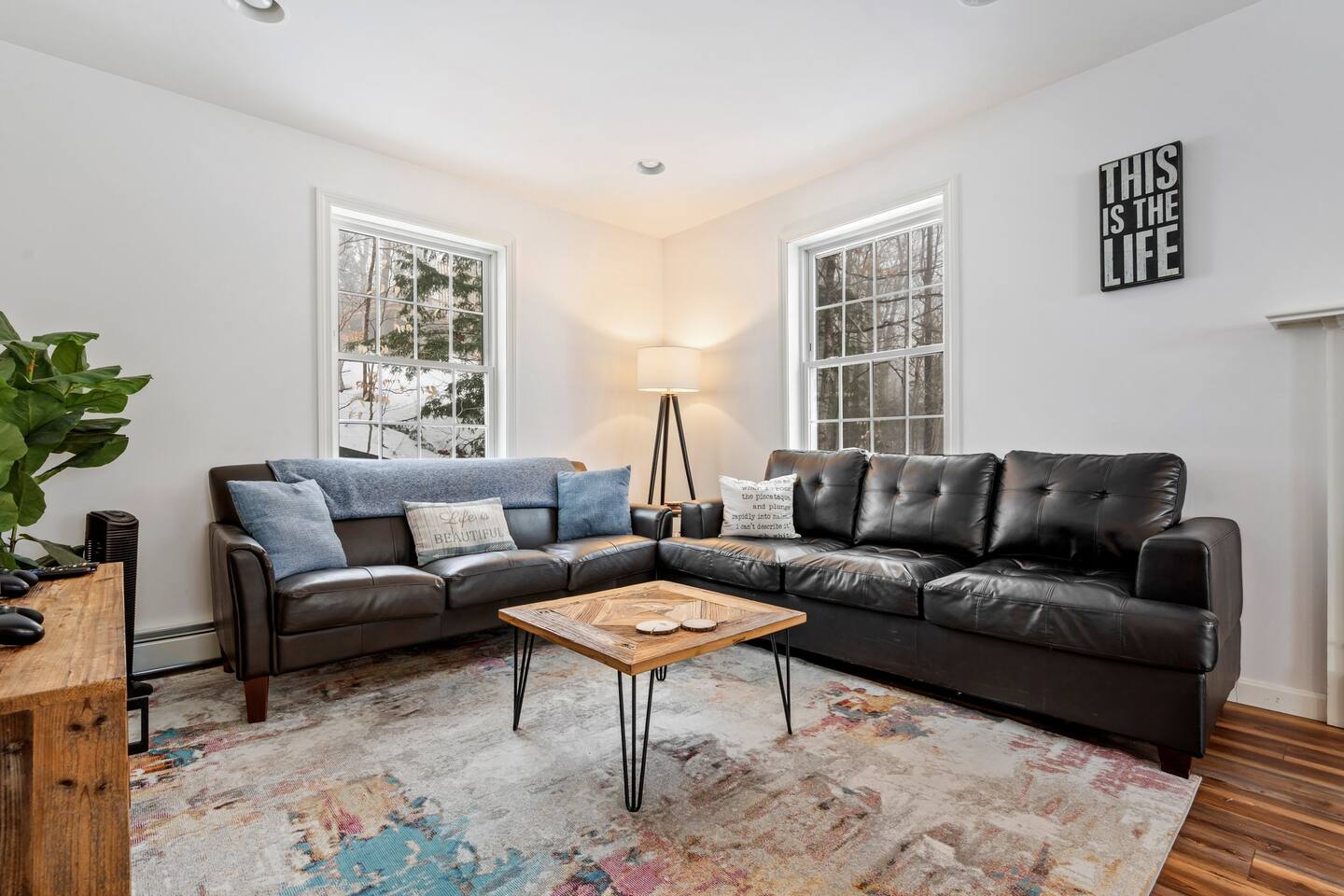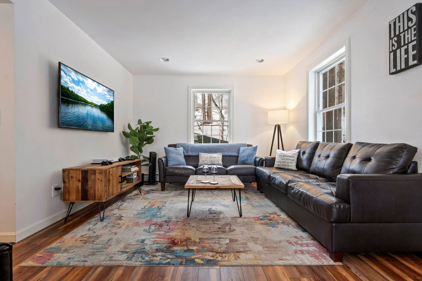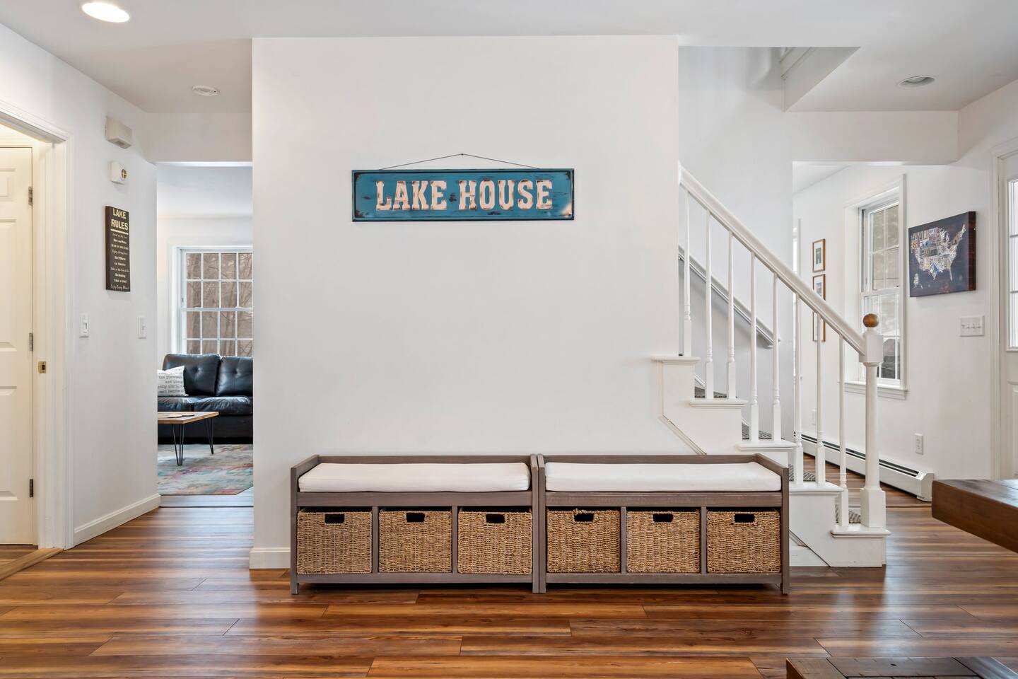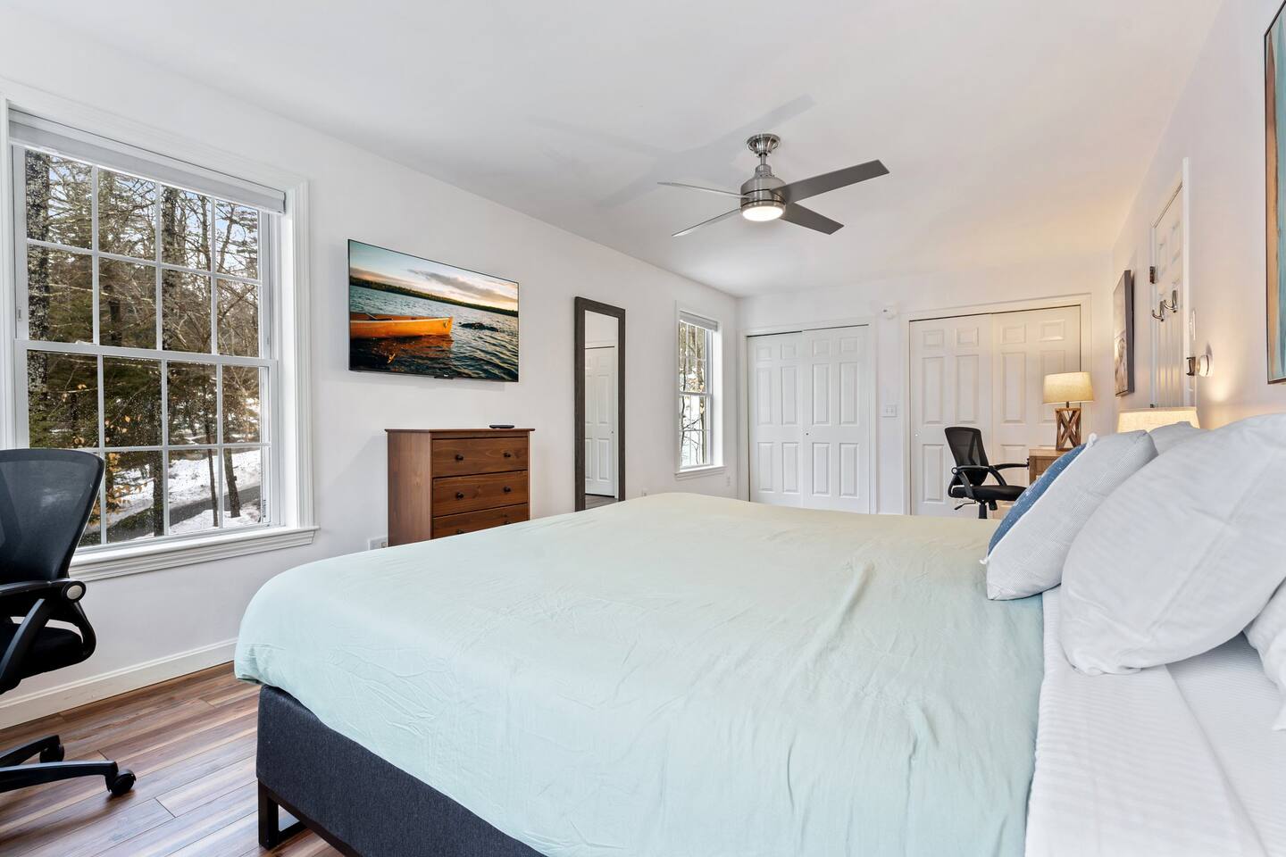 Guests staying at Windham Wind Down have exclusive access to numerous amenities. Take time to enjoy the gorgeous views from the private viewing deck and use the fire pit, dock, kayaks, and paddleboards at your leisure. There are 2 HDTVs in the home, along with an entertainment system powered by Roku. You are welcome to use the laundry area at your convenience. Windham Wind Down is fitted with a smart door lock and free parking for vehicles is available on the premises.