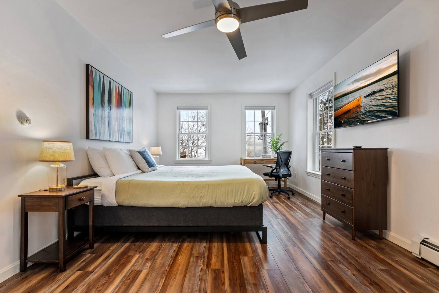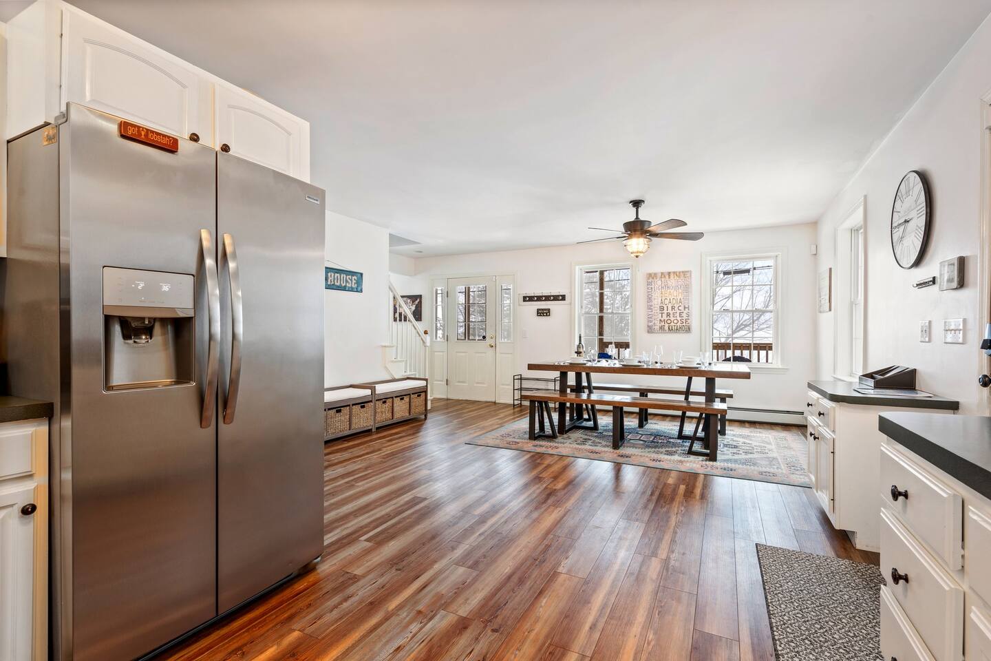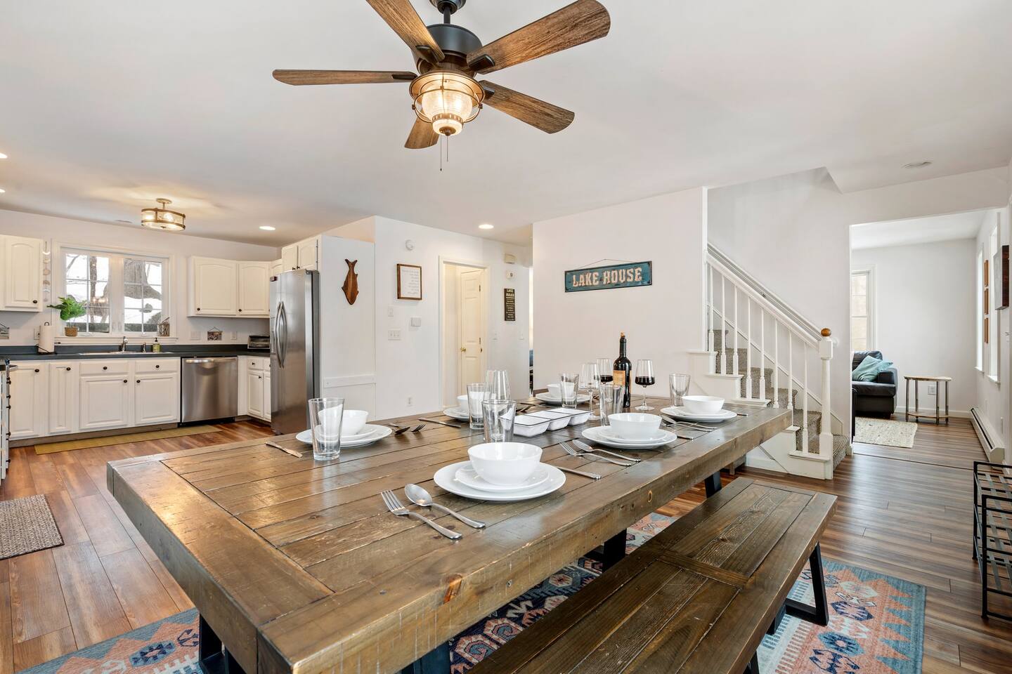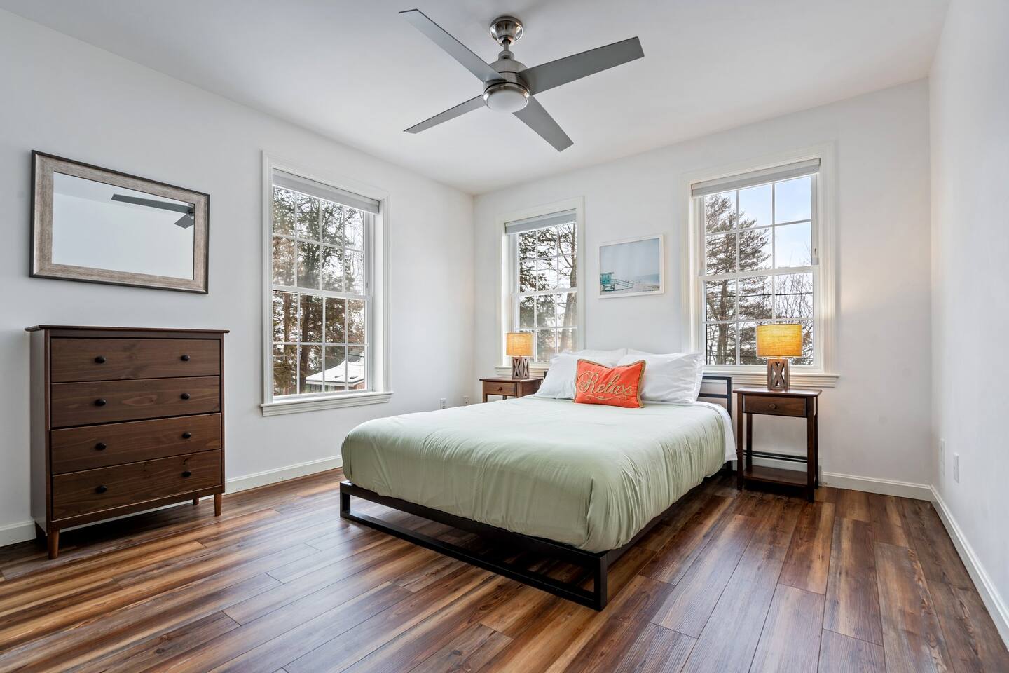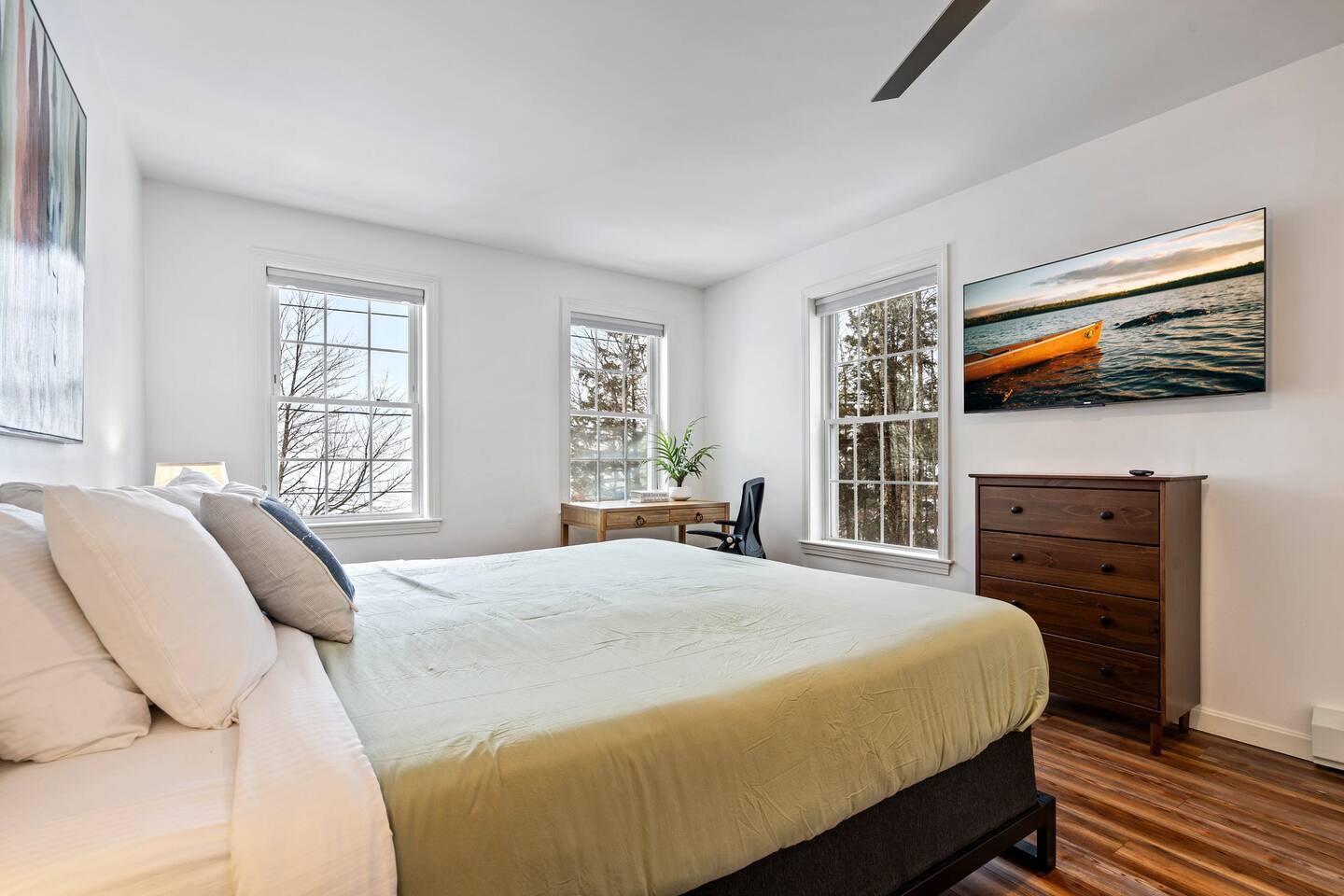 ☀ 15 Min Seacoast Adventure Park ☀ 20 Min to Portland, ME ☀ 20 Min to Maine Wildlife Park ☀ 25 Min to Portland’s Old Port ☀ 25 Min to Portland International Jetport ☀ 40 Min to Portland Head Light → Sleeps 6. 3 Bedrooms. 1 King. 1 Queen. 4 twin bunk beds → 2 Full Bathrooms with Shower/Tub Combo → Private Dock (mid-May to mid-October) → Modern, Well-Equipped Kitchen → WiFi with 2 Smart TV’s & Streaming Services → Fire Pit with Adirondack Chairs → Kayaks, Paddle boards & Fishing Rods Provided → Life Vests Available for Adults & Children → Private Deck with Outdoor Seating & Grill → Board Games and Books → Beautiful Lake Views ☆☆ BEDROOMS ☆☆ This gorgeous retreat accommodates 6 guests in 3 bedrooms all located on the 2nd level. The primary bedroom is fitted with a king-size bed and beautiful lake views. The 2nd bedroom, also boasting amazing lake views, is outfitted with a queen bed and all the comforts of home. The 3rd bedroom is perfect for kids or friends as it sleeps 4 in 4 bunk beds. All rooms offer air conditioning in the summer months, plush bedding and ample storage to make your stay as comfortable as possible. ☆☆ BATHROOMS ☆☆ There are two full bathrooms, each of them stocked with all the essentials you need for the duration of your stay. The 1st floor hosts a full bathroom with a shower-tub combination. It is located just off of the main living area near the kitchen and is easily accessible for all guests on the 1st floor.. The full bathroom on the 2nd level boasts a combination shower and tub. Worry about nothing with these thoughtfully stocked bathrooms that provide everything you need and more. ☆☆ KITCHEN & LIVING AREA ☆☆ The bright and airy kitchen is fully equipped with all the appliances, utensils and cookware you need to feel at home. This thoughtfully-designed home provides an eat-In kitchen option with the dining seating 6 guests at the gorgeous wooden table. The first living area is situated on the main level of the home and is kitted with an HDTV with a Roku entertainment system and XBox, allowing full access to your favorite streaming services. Not interested in TV? The living area hosts a comfy seating area where you can enjoy your favorite book or watch out the window as guests enjoy the lake. ☆☆ OUTSIDE SPACE ☆☆ The exterior area of this home boasts gorgeous views and ample privacy. The front deck overlooks HIghland Lake, allowing you to appreciate the breathtaking views from this exclusive retreat while you prepare a meal on the BBQ. The back deck leads guests directly to the cozy fire pit for all to enjoy. Enjoy your days on the lake with complimentary access to kayaks and paddle boards. Bringing your boat? Access to Windham Wind Down’s private dock is an amenity that is hard to beat! ★☆ Book Today & Let Us Take Care Of You In Windham! ☆★